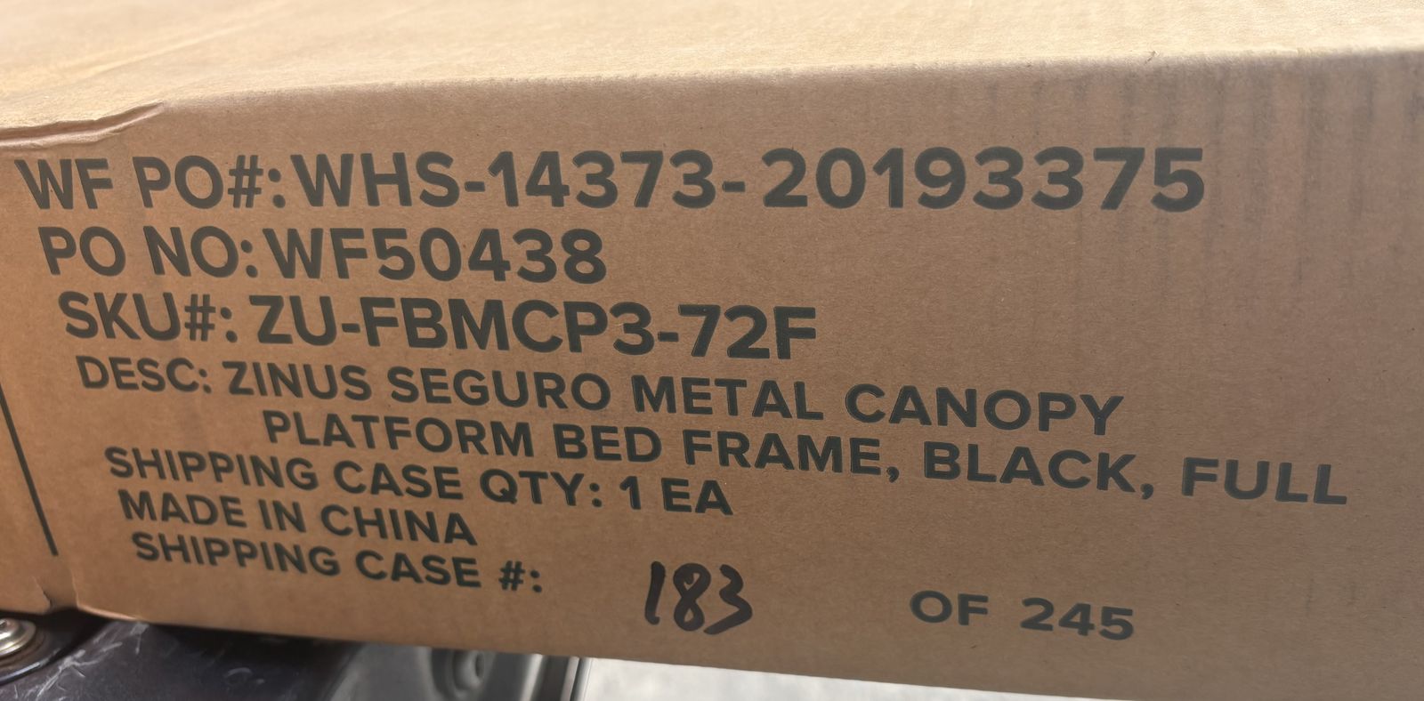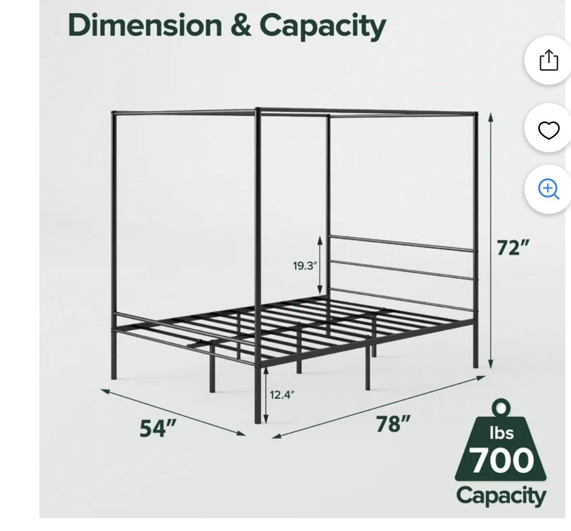 Brand new full size Zinus metal bed frame with canopy still in the box never assembled