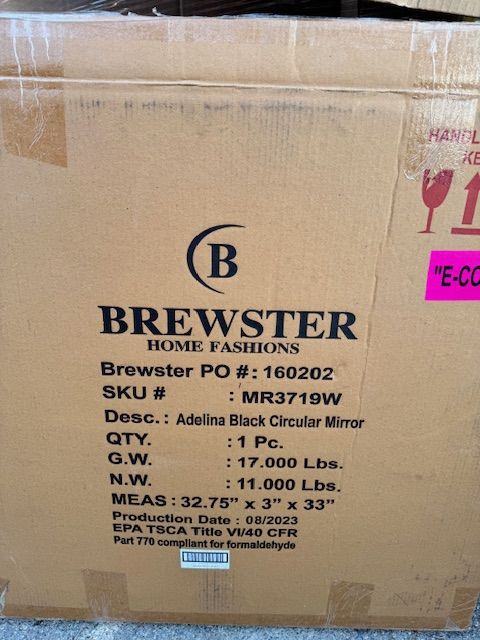 VenmoNew in the box. Brewster Adelina Black Circular Mirror. Measurements: 32.75"x 3" x 33". Asking $45.00