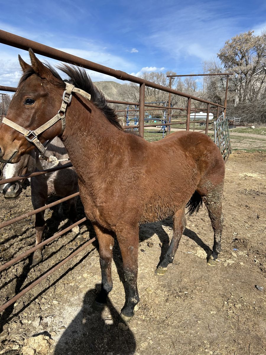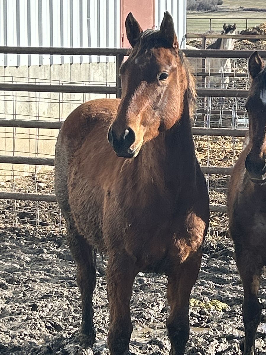 2 year old Very smart and willing Fresh slate to do what ever you want Front feet turn in , doest effect her and I’m sure if stayed up on trims / shoes she would do just fine Or breed her and she would raise many foals for you I own 2 stallions if you wanted to work out a deal to breed her