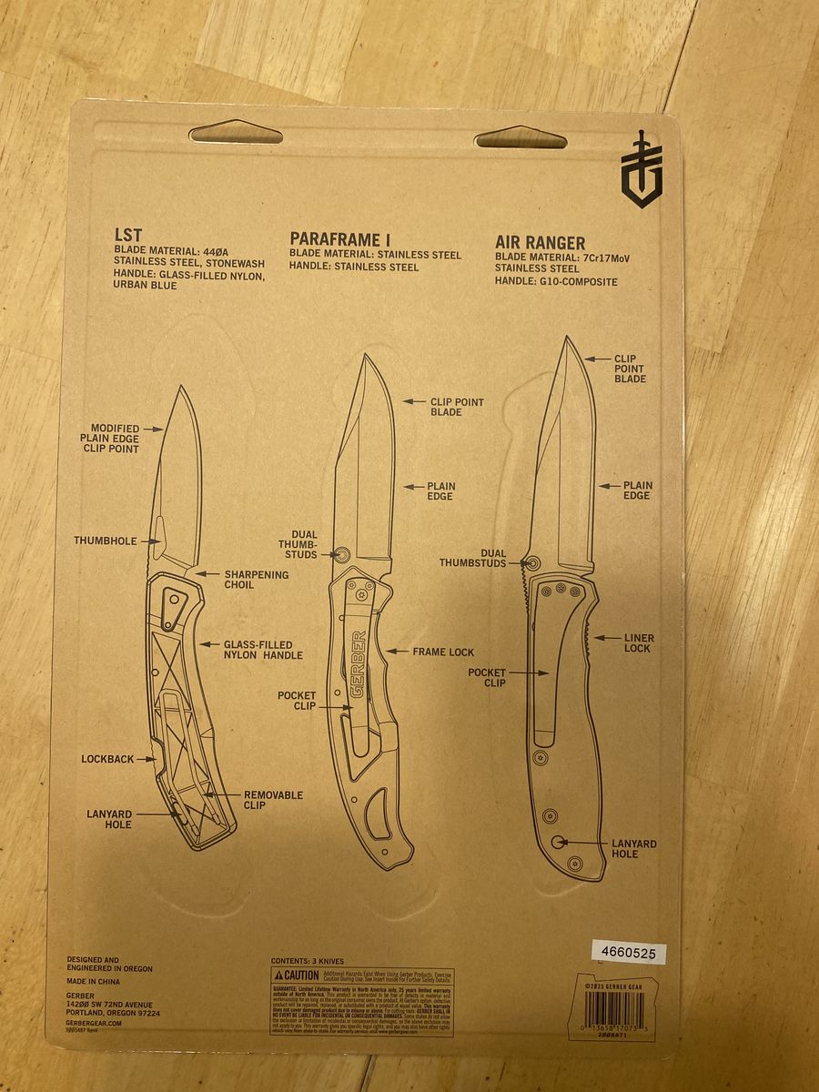 Venmo3 knife set from Gerber. LST retails for 26.99, Paraframe 1 retails for 35.00, and the Air Ranger retails for 49.99. Selling for a deal at $40