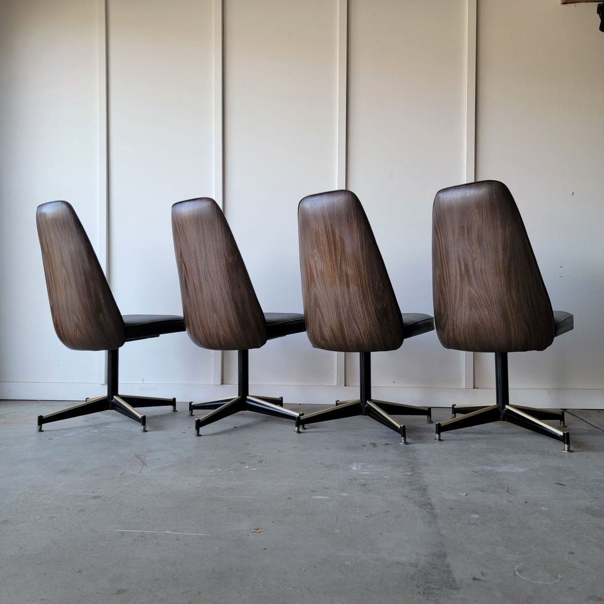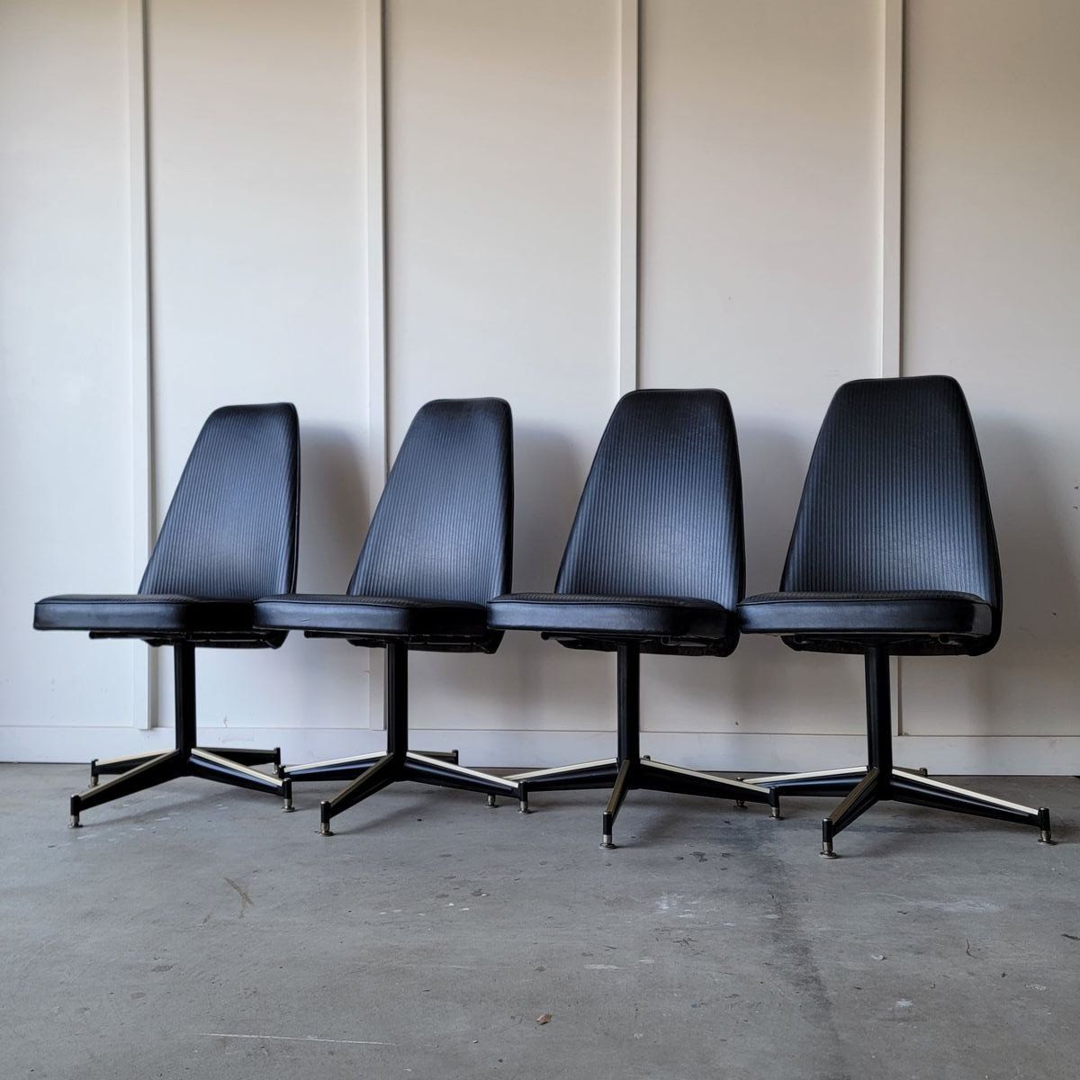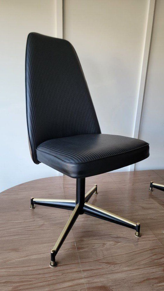 PayPalThis is seriously such a cool and unique dining set! I'm not sure about the table, but the chairs are from Cal-Style and made in the 1960's. The black chairs with gold accents are absolutely beautiful. This would add a wonderful mid century modern touch to any space! It can be a small circular table for small spaces, and extends to nice larger size. Don't miss out on an awesome vintage set!