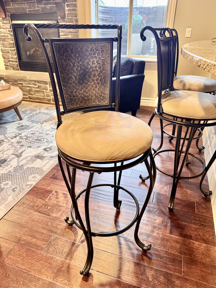 ApplePayBeautiful, high-quality bar stools originally purchased from RC Willey. These are sturdy, well-made stools with a timeless design and upscale details. They currently sell for $149 each new at Walmart (over $450 for three before tax).