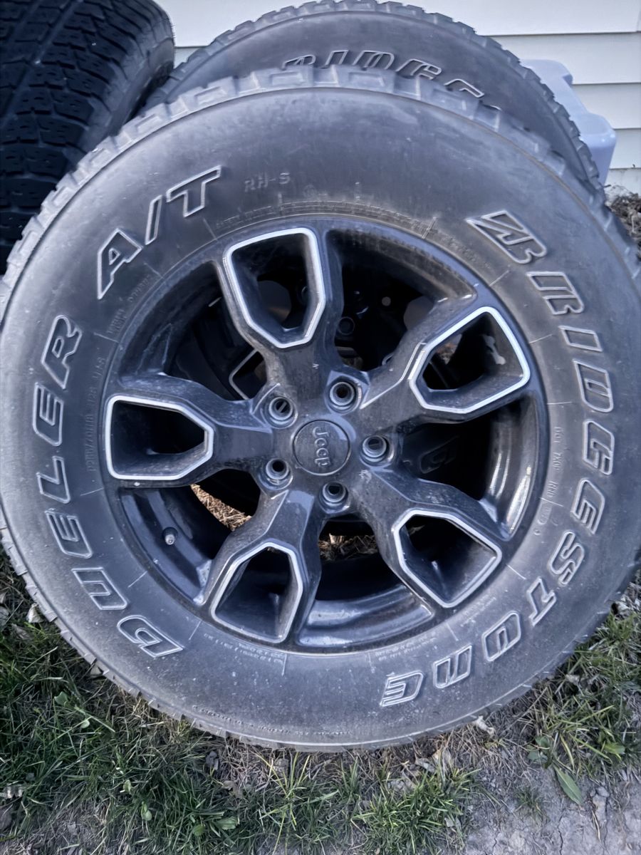Wheels came off a 2017 jeep jk they'll fit multiple years of wranglers and XJ's I have all 4 tires Wheels are clean very limited on scratches Tires still have some life in them. Need them gone ASAP have a baby on the way. P255/70R18