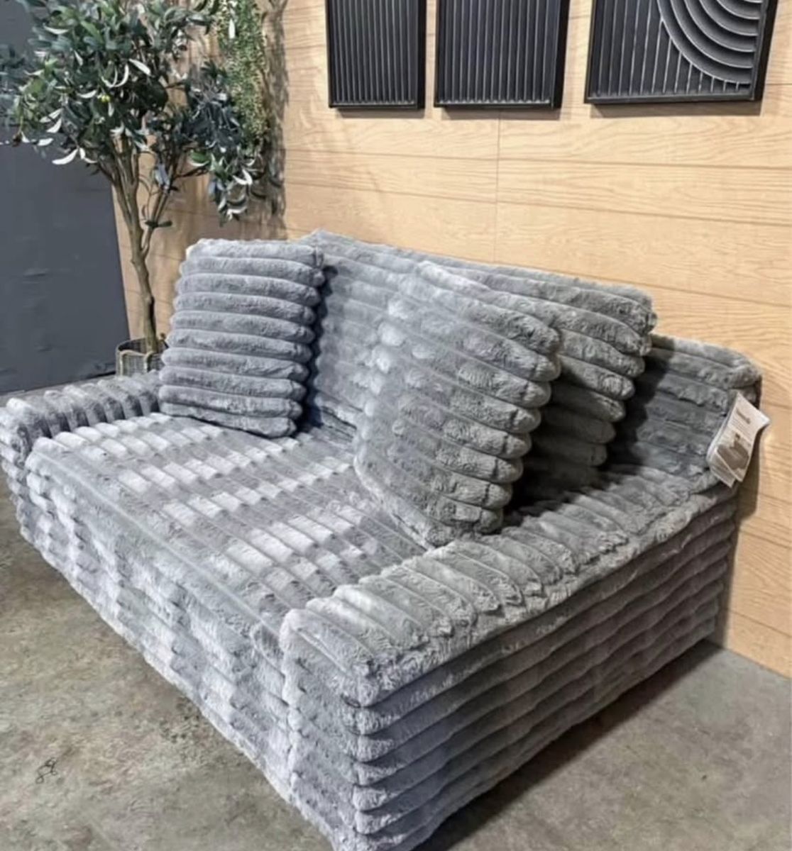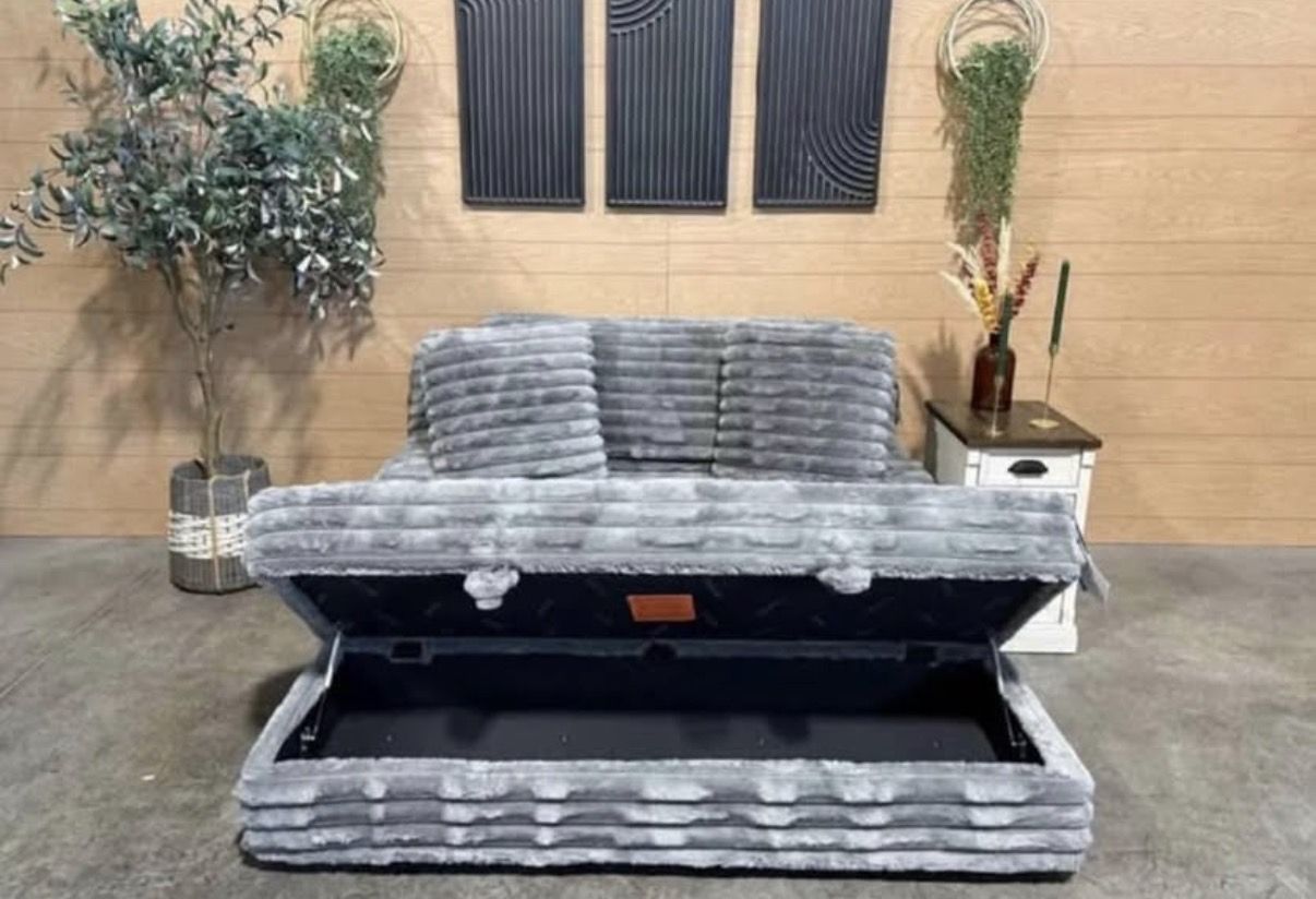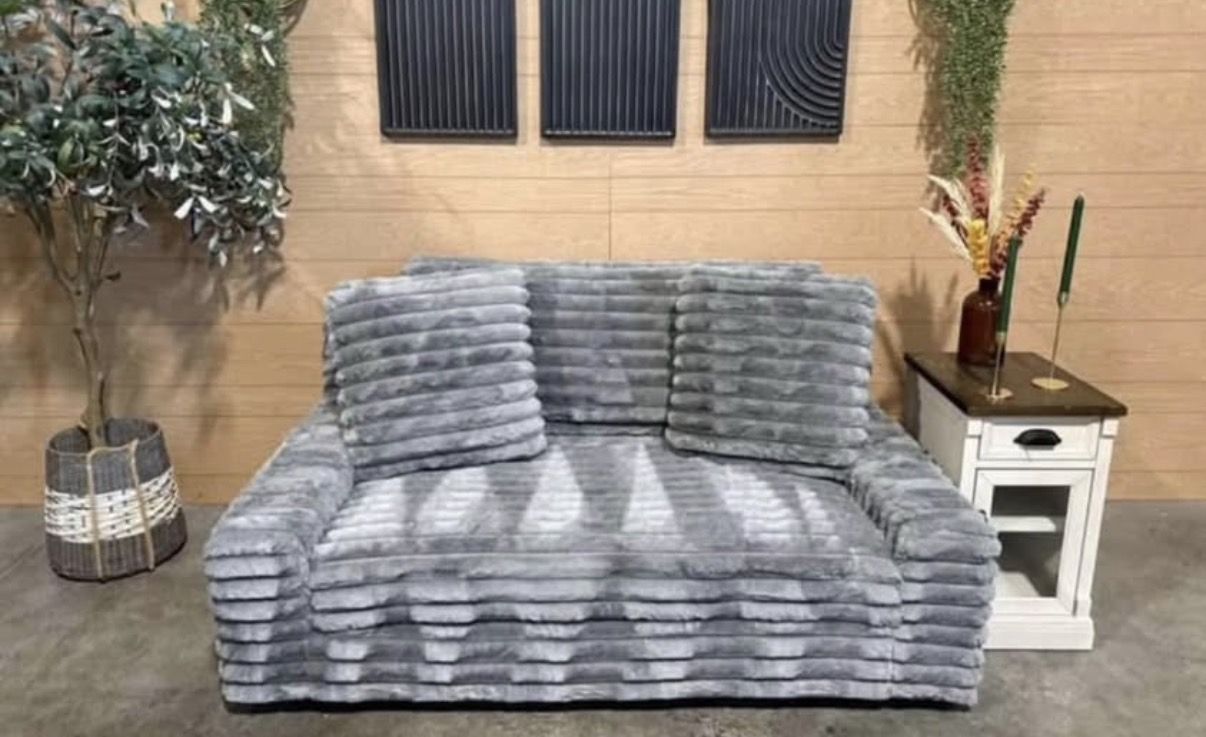 Features: Ultra-Soft Furry Wide Corduroy Fabric Extra-Wide Seat for Lounging 100% Polyester Fabric Two Large Pillows Included
