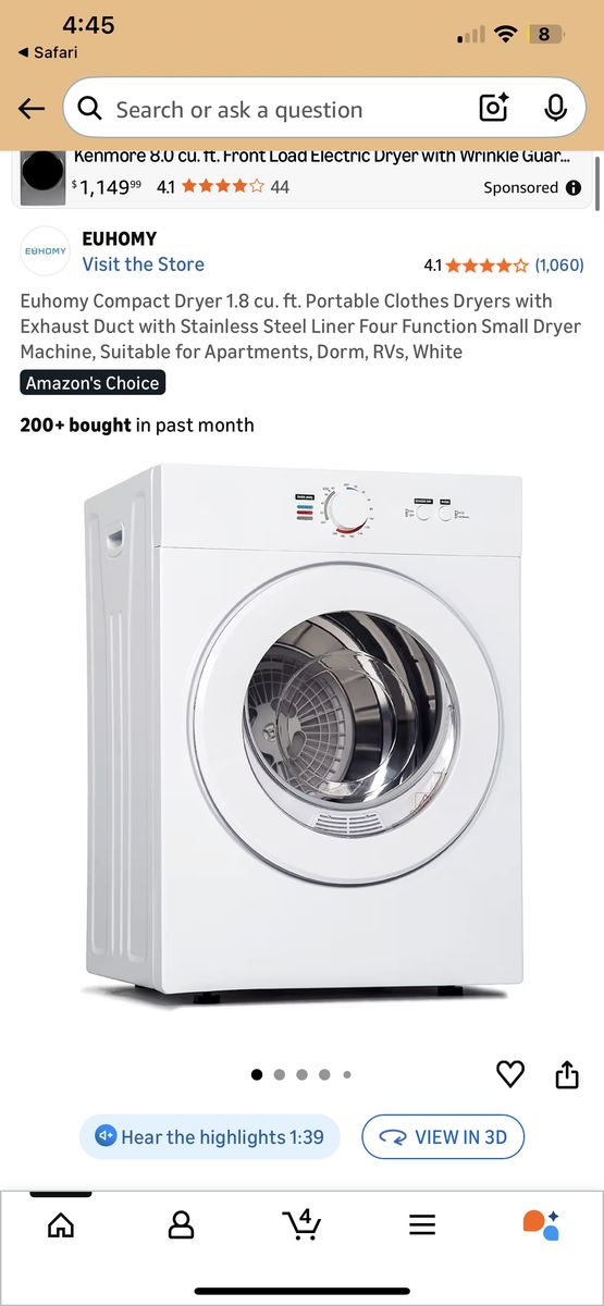 NEW Small Compact Dryer perfect for a room or apartment model # CD005-180WH-USZX brand new in the box asking $139