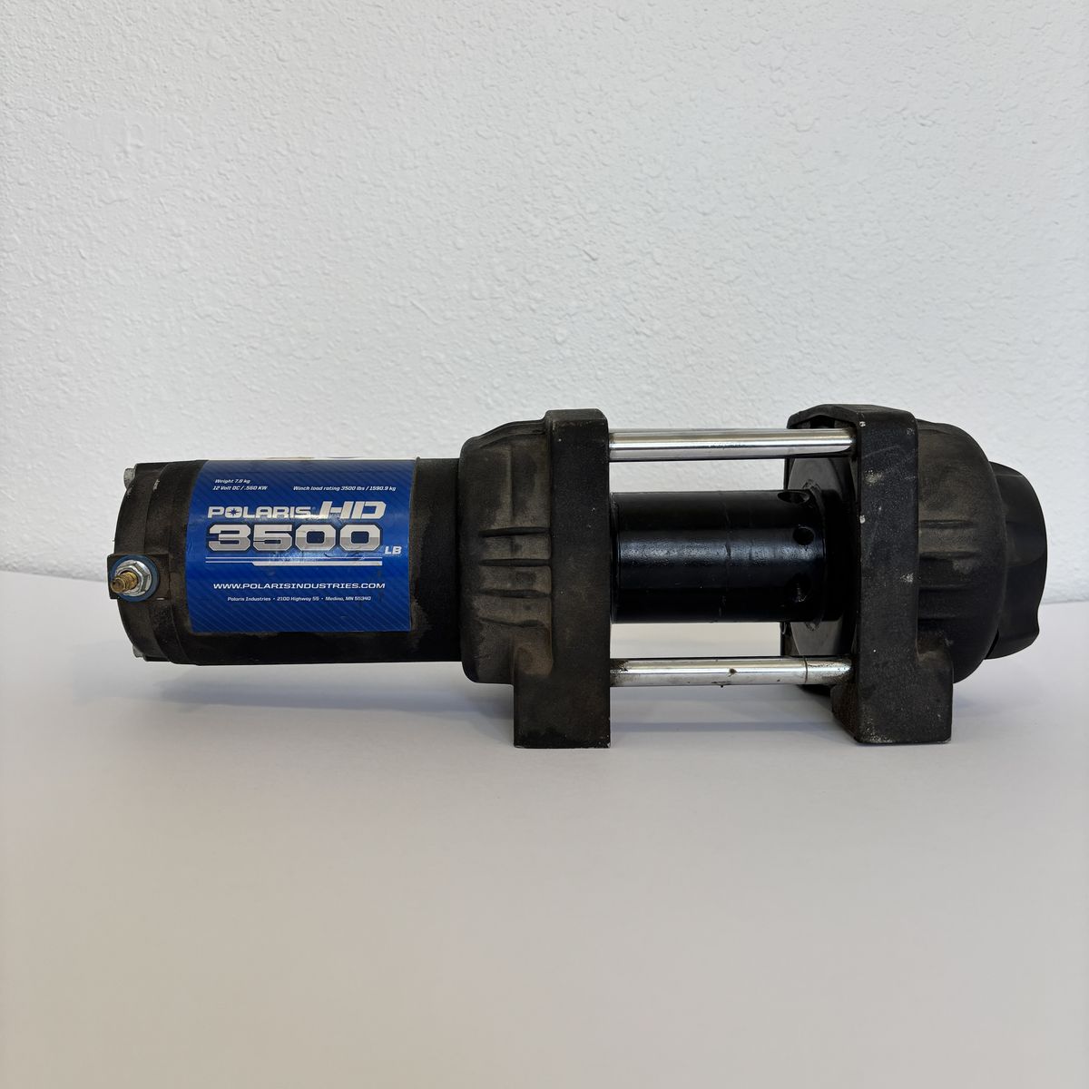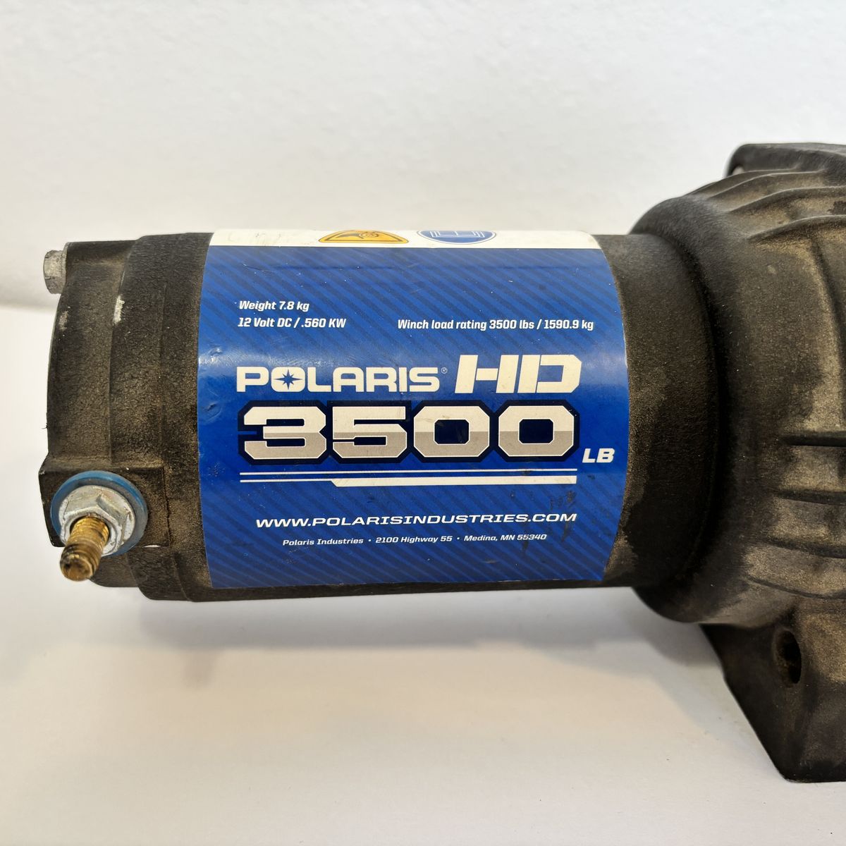 ApplePayPolaris HD 3500 lb electric ATV/UTV winch. This unit was pulled from a scrap bin at a local powersports shop. The exterior appears clean and the mechanical parts move freely, but it has not been tested under power, so it is being sold as-is for parts or repair.