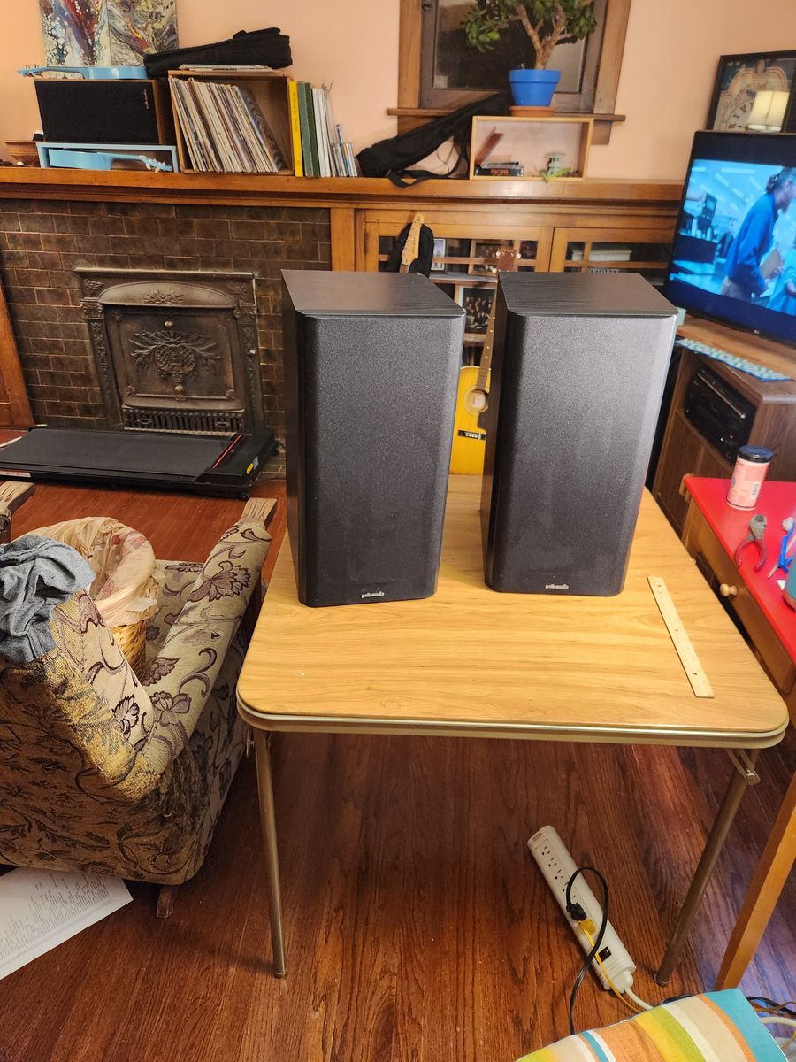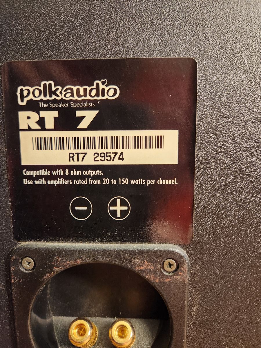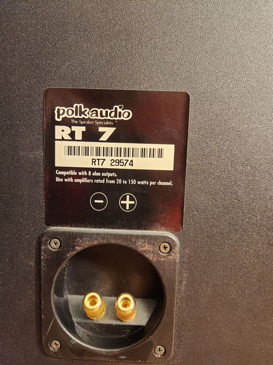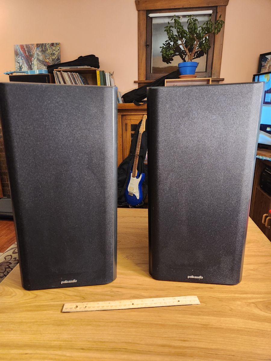 Polk Audio speakers RT7, 150 watts, powerful and clean sounding, Nice cases and covers. 20" tall 12" deep. Excellent speakers.