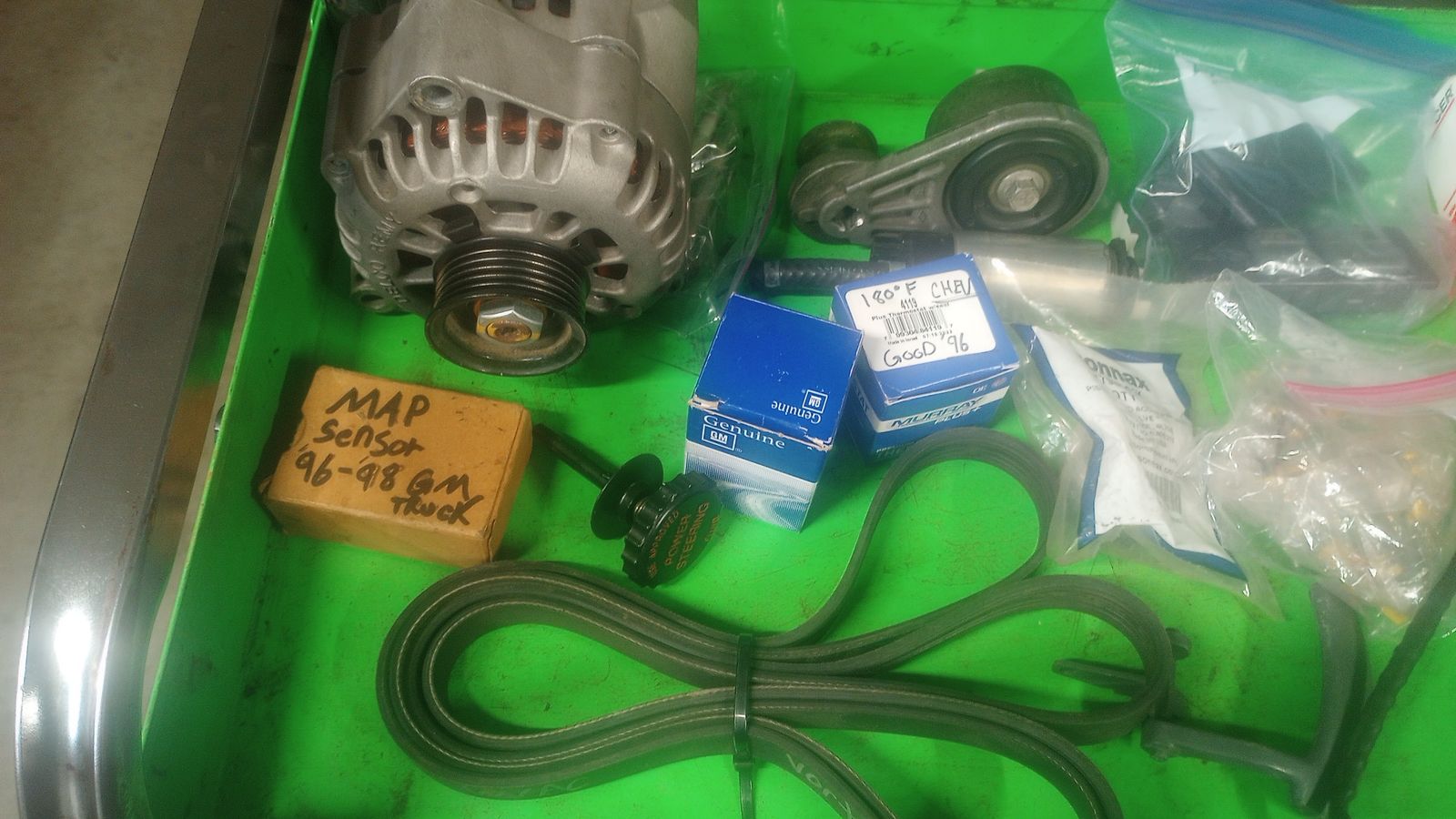 Parts include an alternator for a 5.7, throttle body, Mas Air Flow, fan clutch, starter, serpitine belt (5.7 Vortec), fuel pump, and a few more!