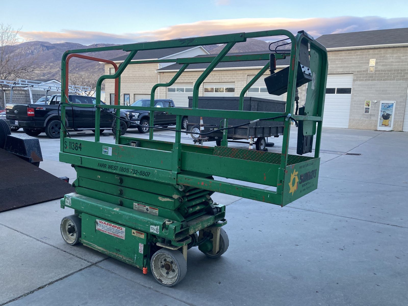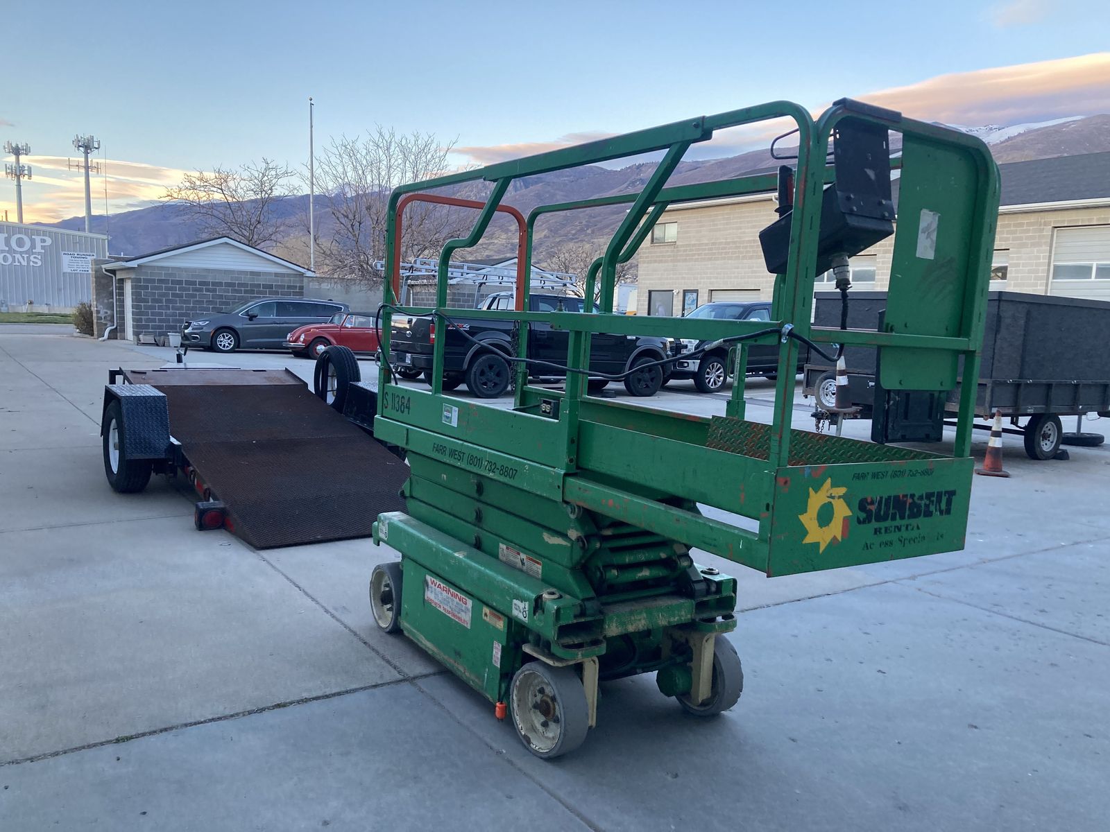 VenmoJLG (model # 1930) scissor lift extends 19'. Its in great working condition and have used it daily in our shop. with 16' tilt trailer expanded metal built specifically for the lift.