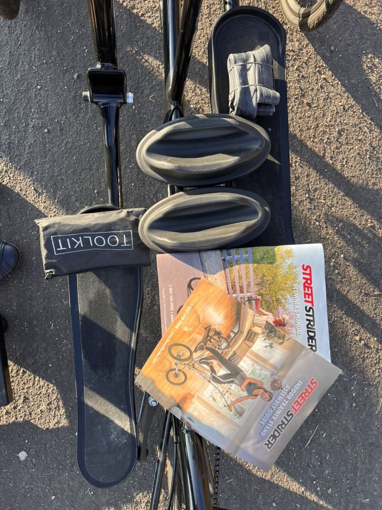 ZelleWe have two Street Striders that are new enough to still have the vent spews (the “new tire whiskers”) intact. They both have everything they come with when purchased new; including the manuals and the setup to be able to use them indoor. They are great machines that give a low impact full body workout. Save yourself the hassle of having it shipped.