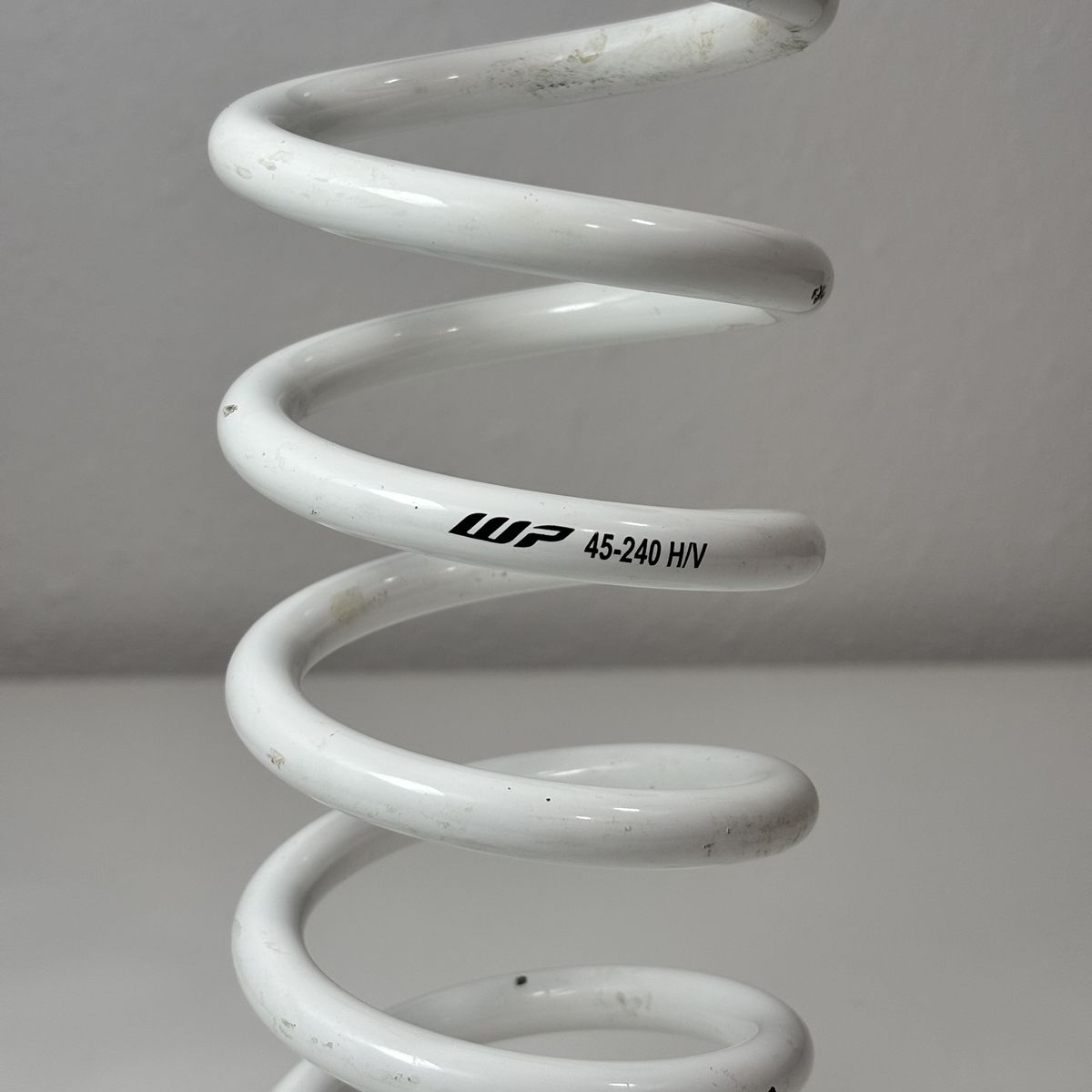 Details • Brand: WP Suspension • Model: 45-240 rear shock spring • Color: White • Approximate Spring Rate: ~45 N/mm (typical for this spring type) • Type: OEM rear shock spring