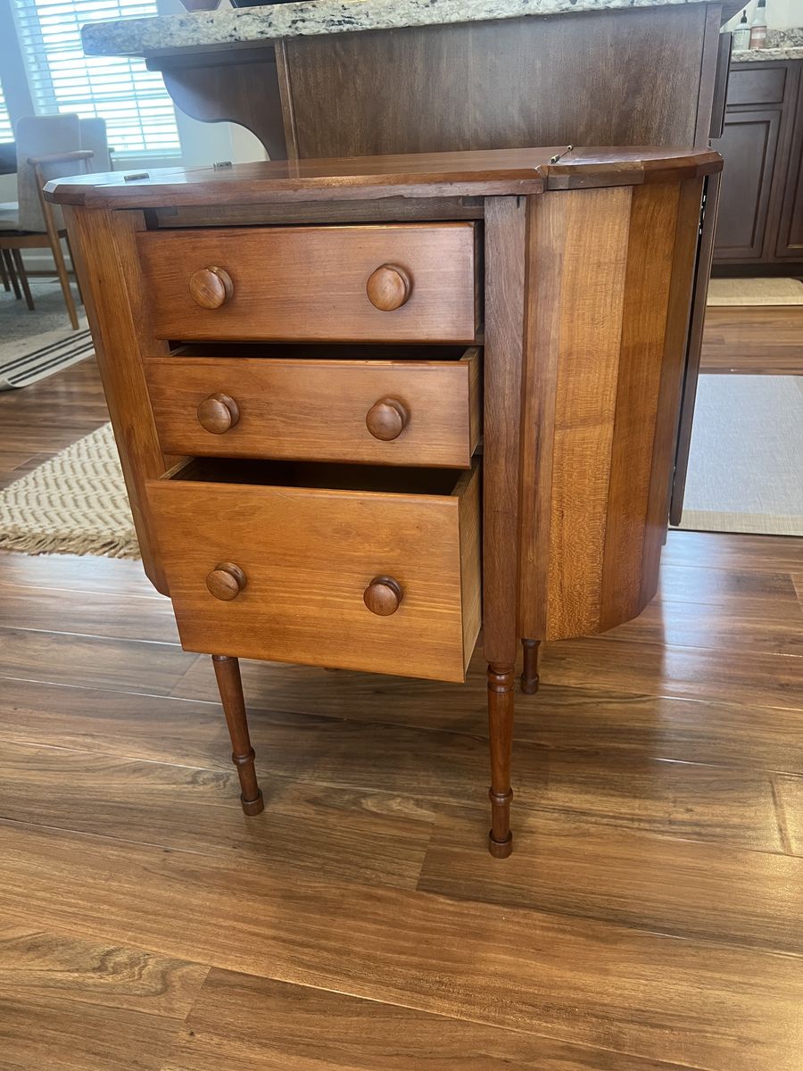 VenmoSolid Walnut Sewing Cabinet Table Martha Washington 28” height 25” width 14” depth . Smoke and pet free home. Cash or Venmo.