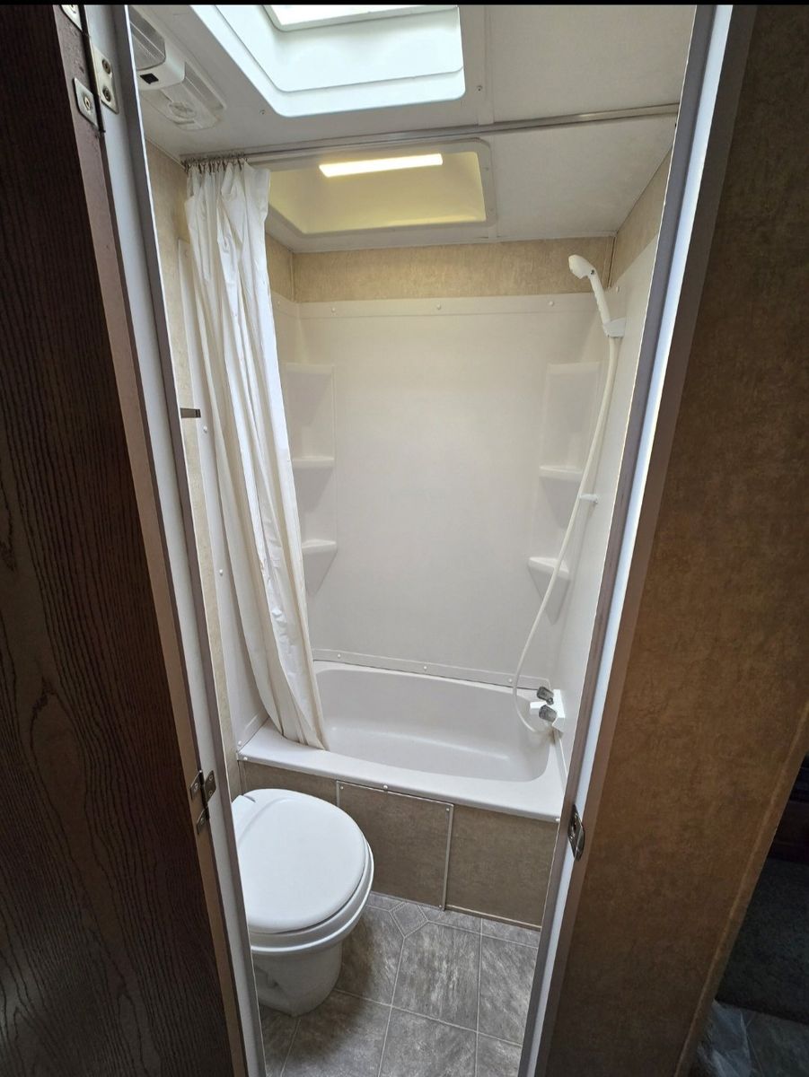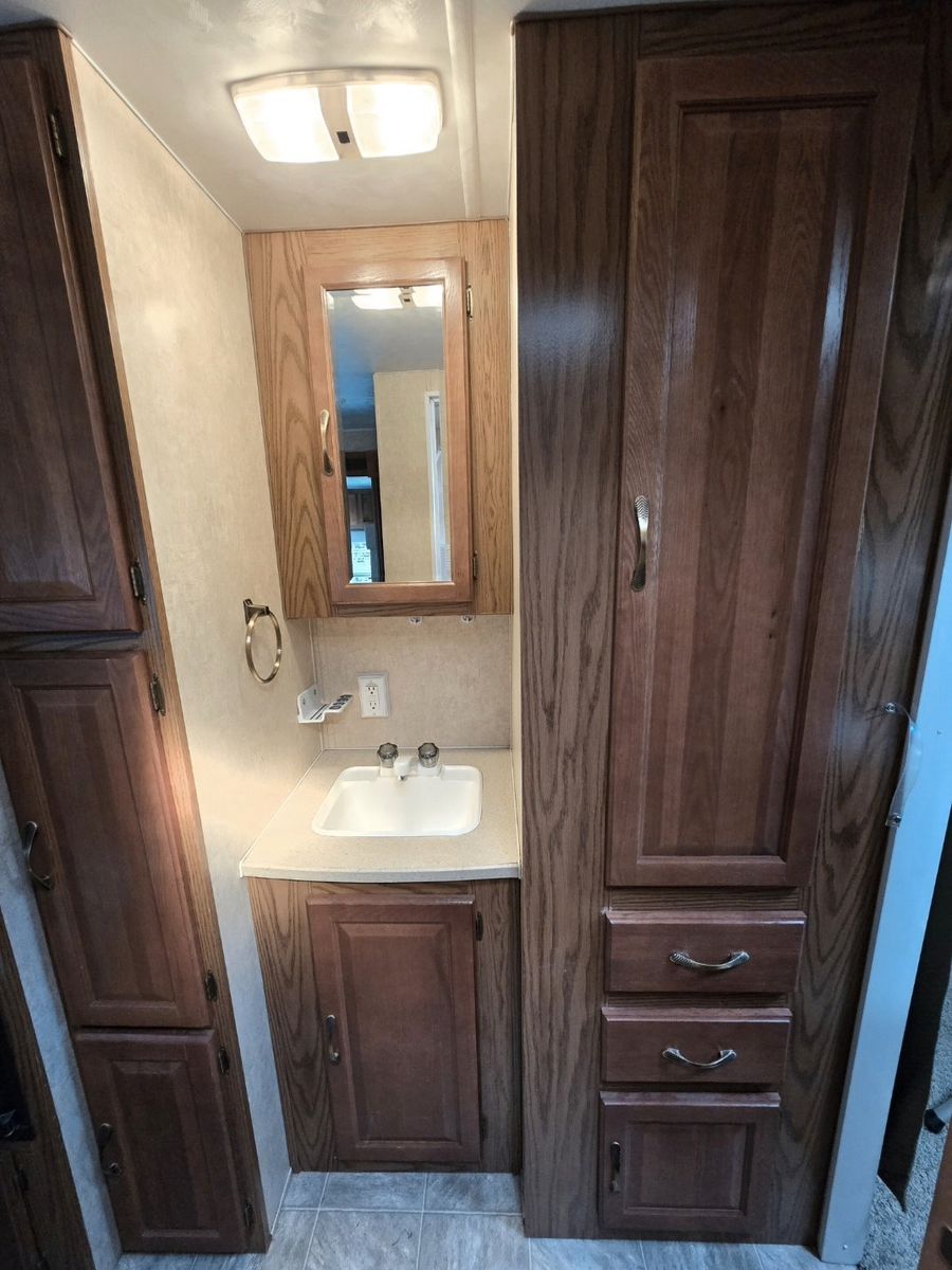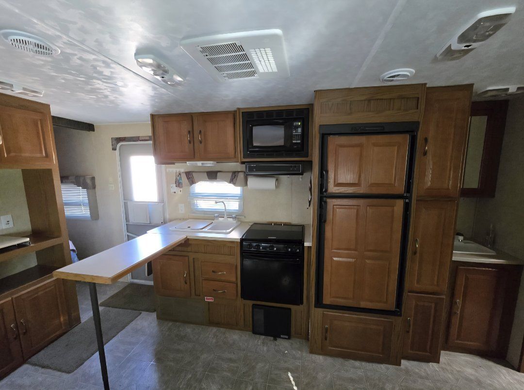 Bunkhouse trailer. 2nd owner. 2 slides. Unique, rear bunk room pop-out. Dinette pop out. Sleeps 7. Lots of cupboard storage inside. Large pass-through storage outside. Outside shower. Always been stored in a shed. Title in hand.