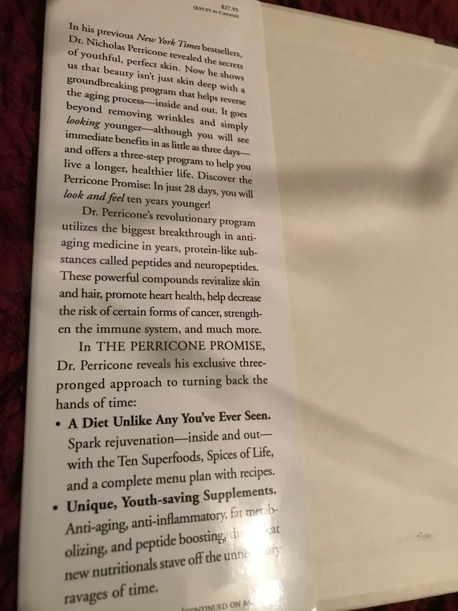 Looking to improve your skin, health, and overall wellness? I’m selling a copy of The Perricone Promise by Nicholas Perricone, MD. This bestselling book focuses on anti-inflammatory nutrition, skincare, and lifestyle habits designed to help you look younger and feel healthier from the inside out.