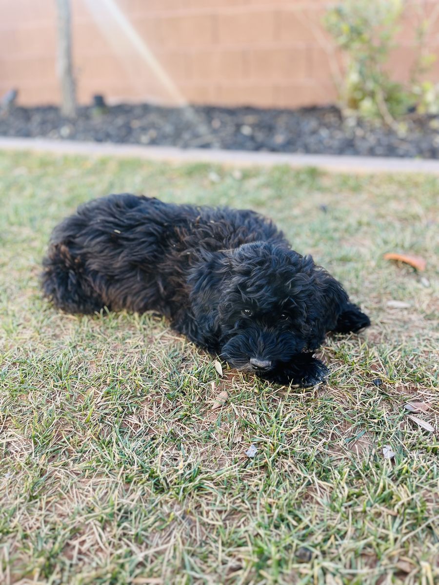 ApplePayI have 3 Male Mini Portidoodles available. They are 4 months old and our last puppies available. This breed is the absolute best of both worlds. Portuguese water dogs are such well rounded pups and mini poodles are so smart! These pups will be small. Mom is 30lbs and Dad is 9lbs. They have been dewormed and have had their first 2 sets of shoots. They also have a clear bill of health by the Veterinarian with a certificate. Our families that have adopted these pups are truly so satisfied with the early training, desensitization, potty training, and working with them daily on commands etc. Rehoming fee