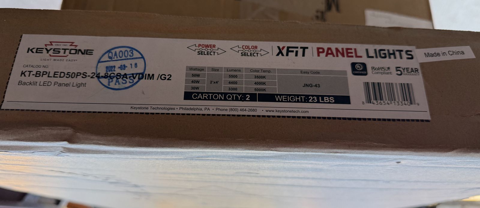 Keystone 2x4 LED Backlit Panel - 6,200 Max Lumens - Wattage & CCT Selectable - 120-277V