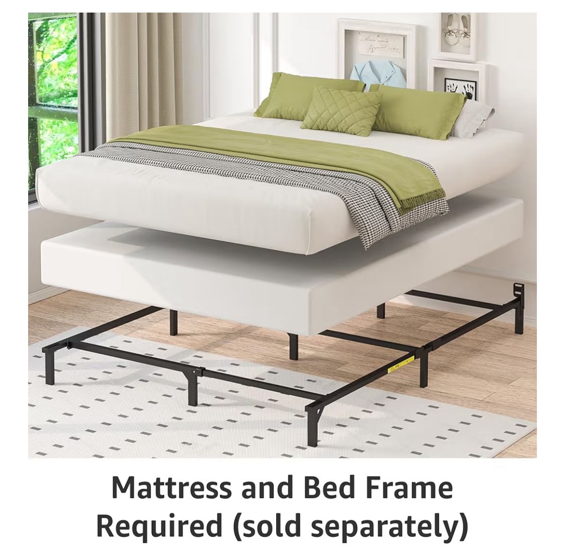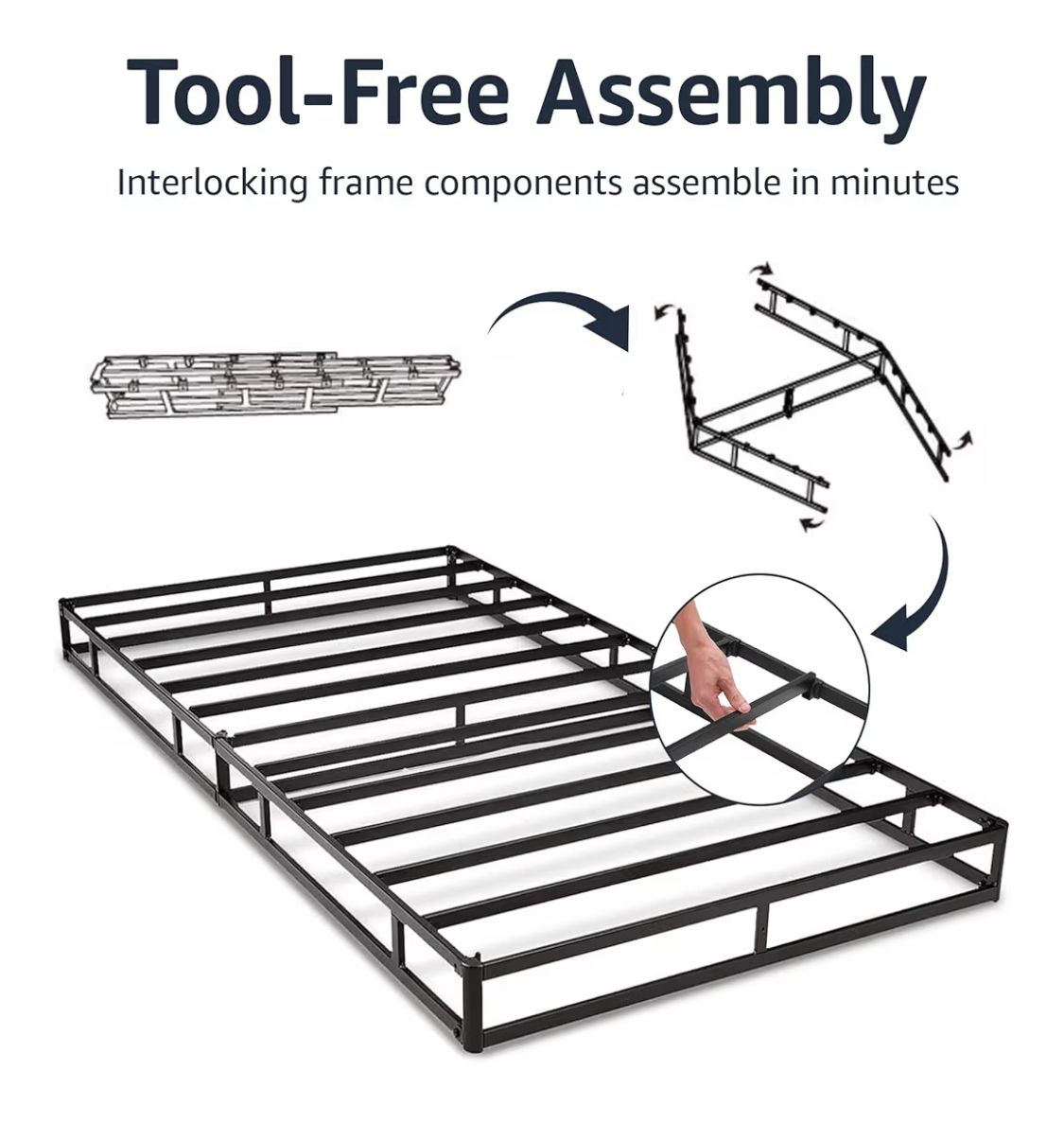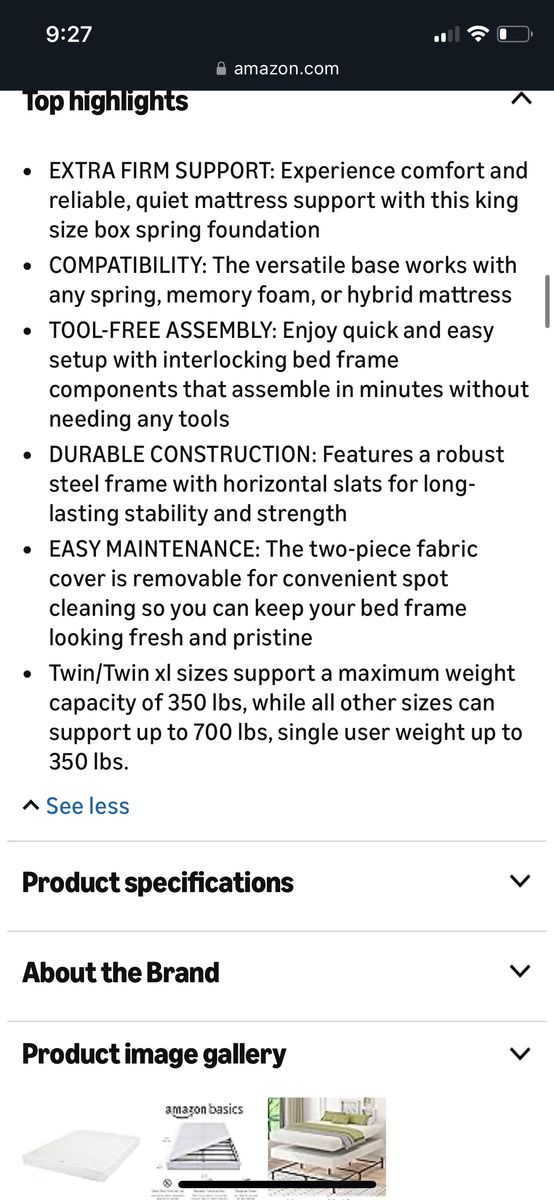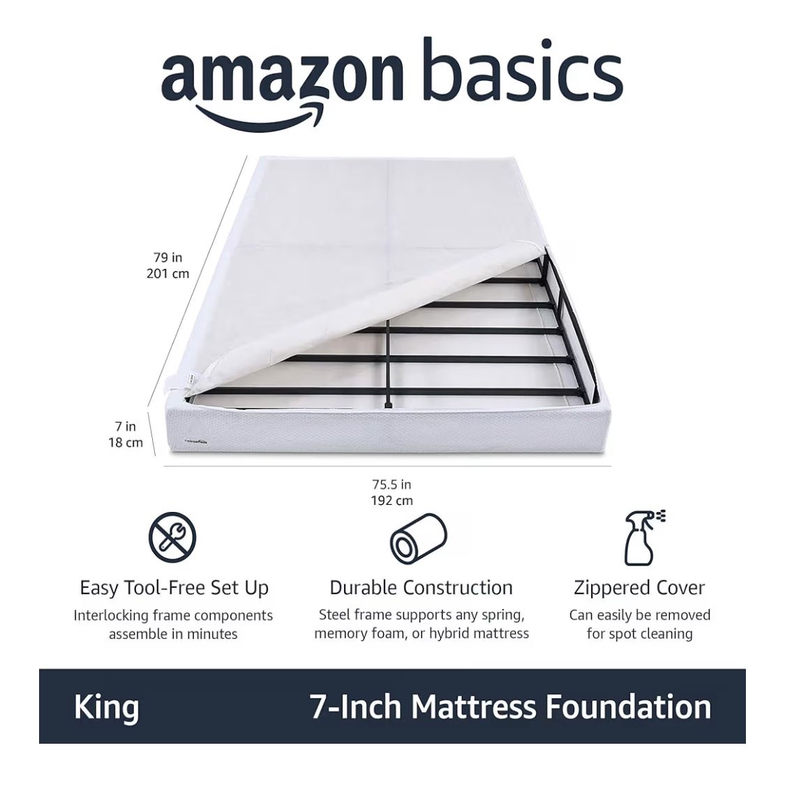 Amazon Basics Smart Box Spring Bed Base, 7-Inch Height Mattress Foundation, Tool-Free Easy Assembly, King, 79 L x 75.5 W x 7 H, White