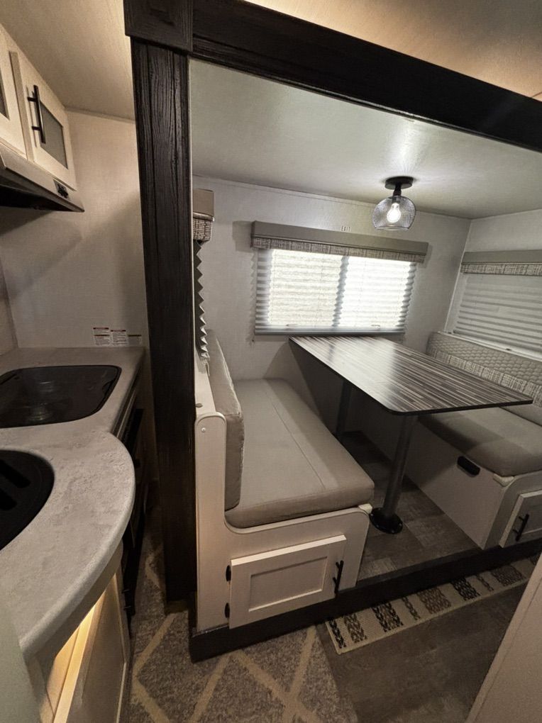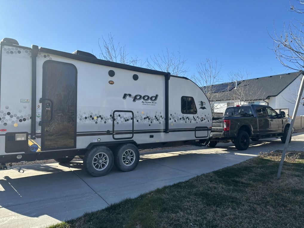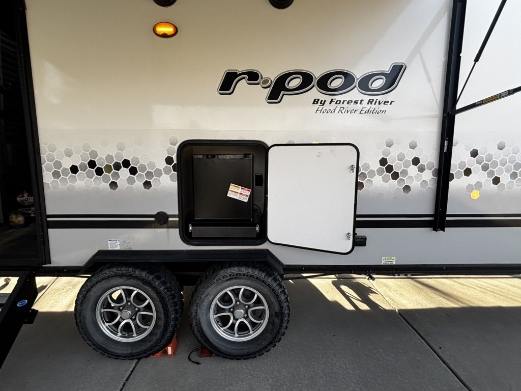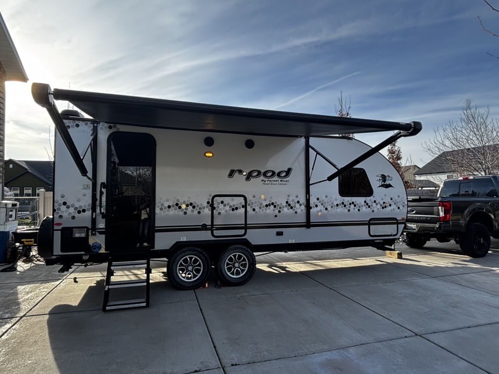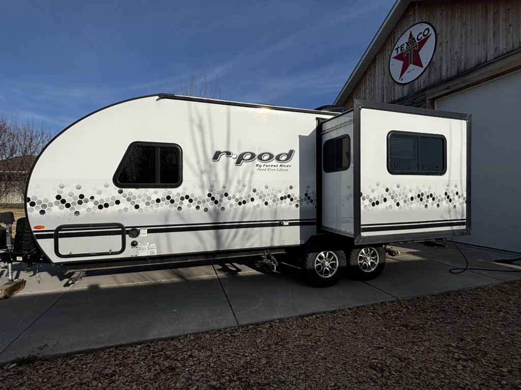 ZelleThe best trailer out there! Light weight easy to Pull double axle R-Pod. Took to the Oregon Coast and all the way to Oklahoma. No issues. In great condition. Only selling because of divorce. Lots of fabulous features in this trailer. My favorite is the central vac in the bathroom, making cleaning up a breeze. New black sink faucet in bathroom. So much storage for a camper bathroom! Love the layout so much. Private bedroom with Upgraded very comfortable mattress. Always had a zippered protector over it. Cabinet storage on both sides of wall around bed. Extra Shelves and outlets. Under bed storage. Main area w/ large clothes closet. Large Pantry, Fireplace with remote, extra shelves under tv, stereo, lots of lighting, new modern light above dining table. Storage under each bench. Table turns into a bed for two additional people to sleep. Modern kitchenette with microwave, stove, round sink, lots of storage above and below. Outside fridge, griddle and work station. Spray hose. And much more. You will Love this trailer!! R-Pods 202 layout is the best!