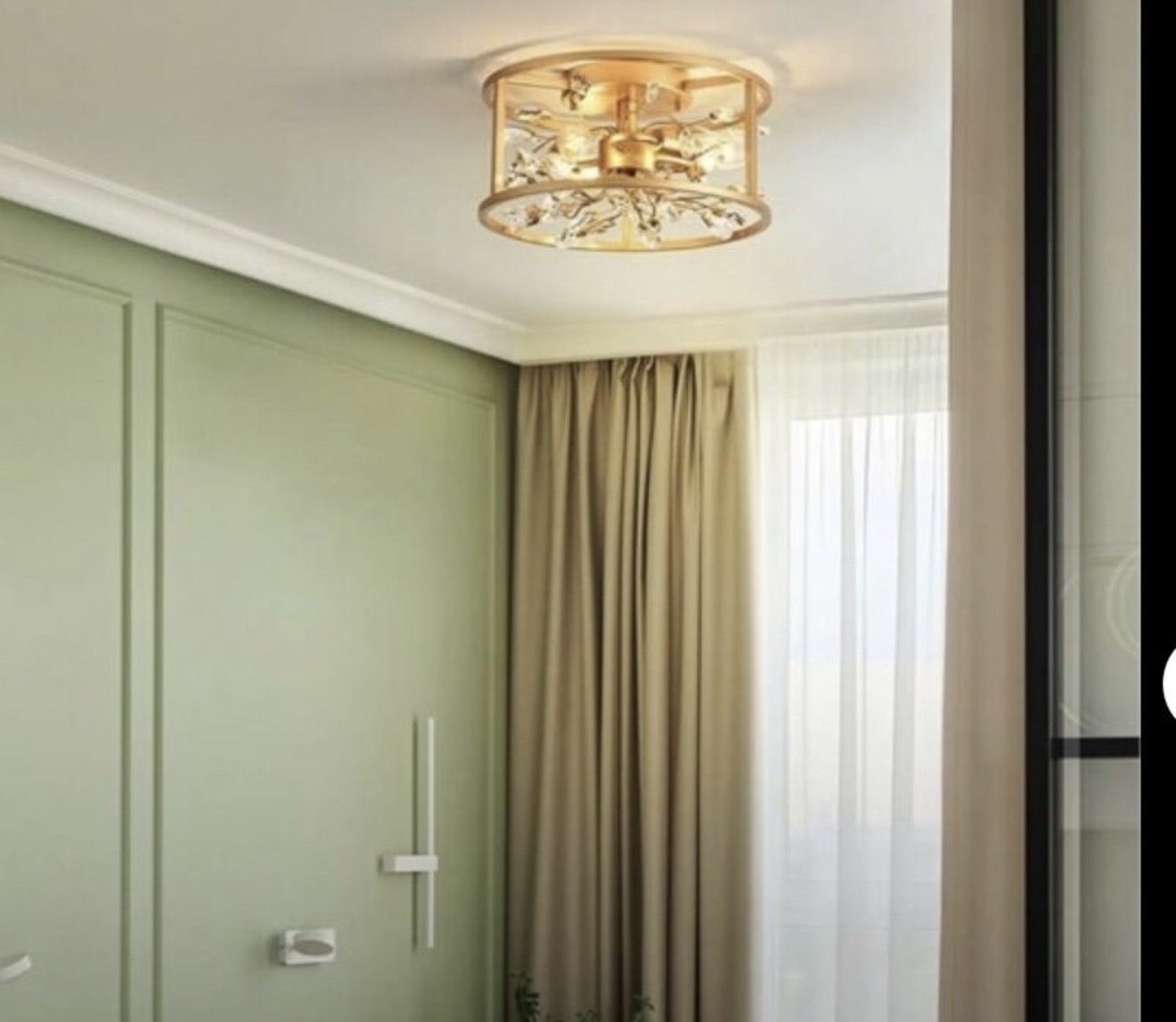 CashAppNew in box. Worth $80 FCFS. This flushmount fixture perfect combination of metal frame with crystal. Blending modern and luxury styles. This close to ceiling light is capable to add a luxurious but unassuming touch to your house while meeting your daily lighting need, matches most styles of furnishing and adds a beautiful decor to your home. Dimensions & Easy Installation: Diameter 12-inch, Height 6-inch. Requires 3 x E12 bulbs (Bulb NOT included). Instruction manual inside, all mounting hardware for quick and easy installation. Dimmable: This gold ceiling lights can be dimmable for a different effect when attached to a dimmer switch and dimmable bulb. Wide Application: The crystal flush mount ceiling lamp is designed to blend into any indoor decor, perfect for living room, hallways, bedrooms, foyer, kitchen, etc. See Less