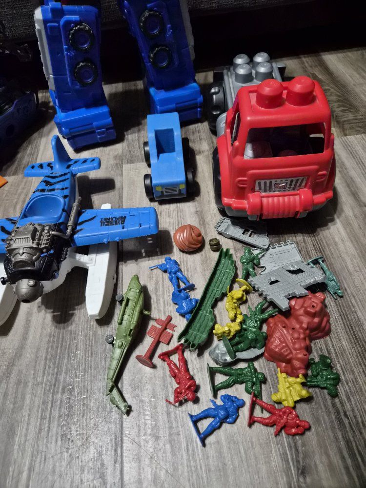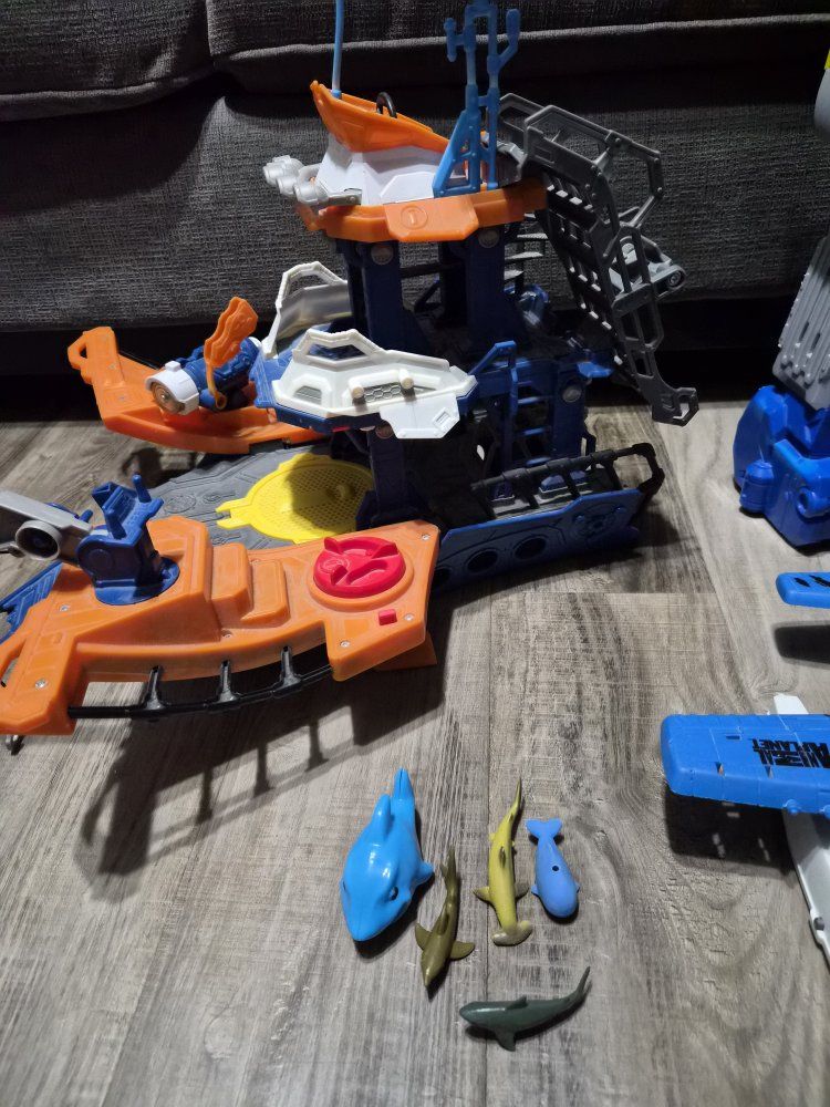 VenmoThe robot and boat are huge. I believe the robot is power rangers. The boat can open and close and comes with sea creatures. Comes with everything shown in Pics, selling all together.