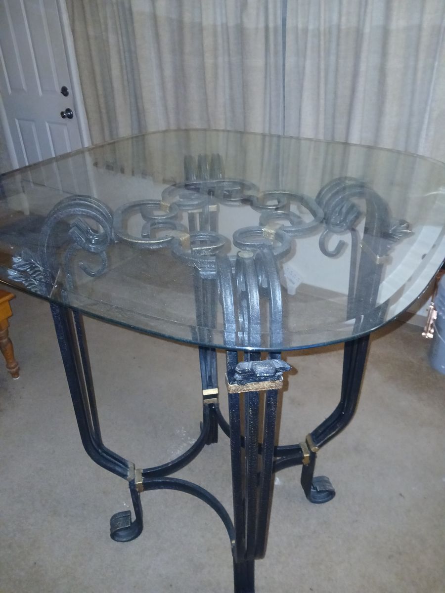 Ornamental iron and glass dining table.