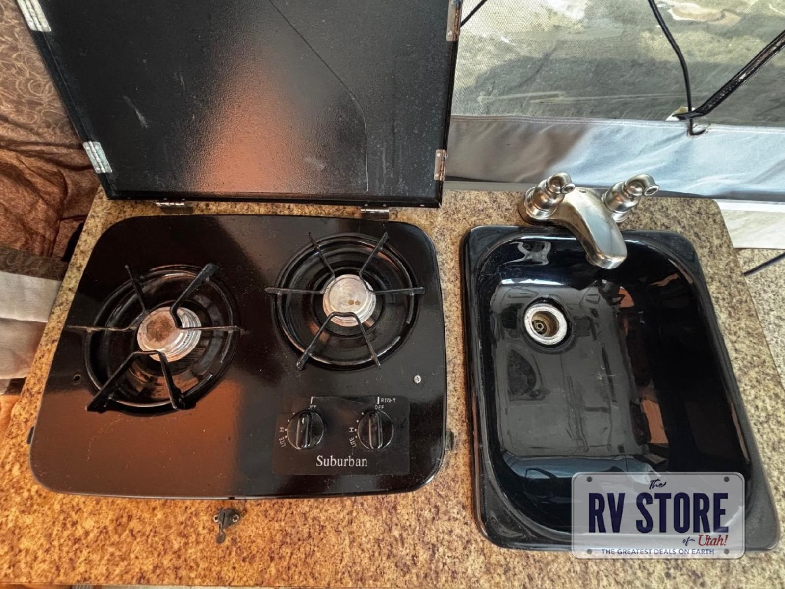 With two large insulated tent-end beds, the 106 Sport comfortably sleeps your family or small group. The main cabin features a convertible dinette that doubles as additional sleeping space, making efficient use of the floorplan. This layout gives you the essentials without added weight, making it an ideal match for many small SUVs, crossovers, and mid-size vehicles with appropriate tow ratings.