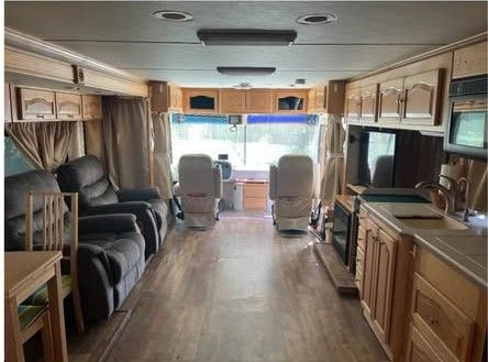 Don't miss out on this 2002 Tiffin Allegro Bus 38TP pusher Class A motorhome 330hp diesel pushing this beast down the road. Sits on a full air-ride Freightliner Chassis with engine brake and air brakes. Large 7500 Onan generator, power jacks, huge awning, basement storage and two air conditioners. Does have some fading here and there but nothing more than you would expect for the year. Inside has no bad smells or soft spots in the floor. For the year this motorhome is very solid.
