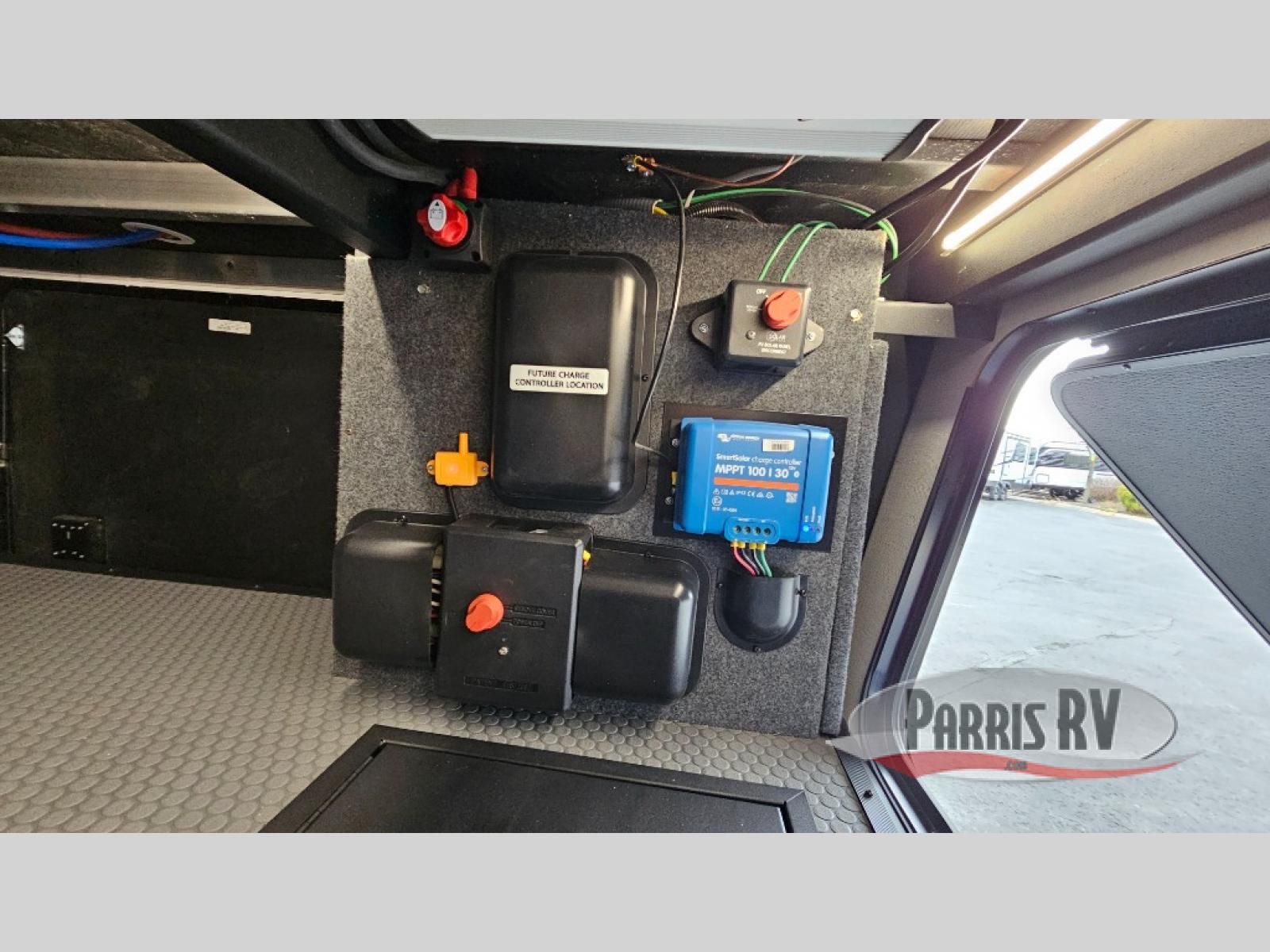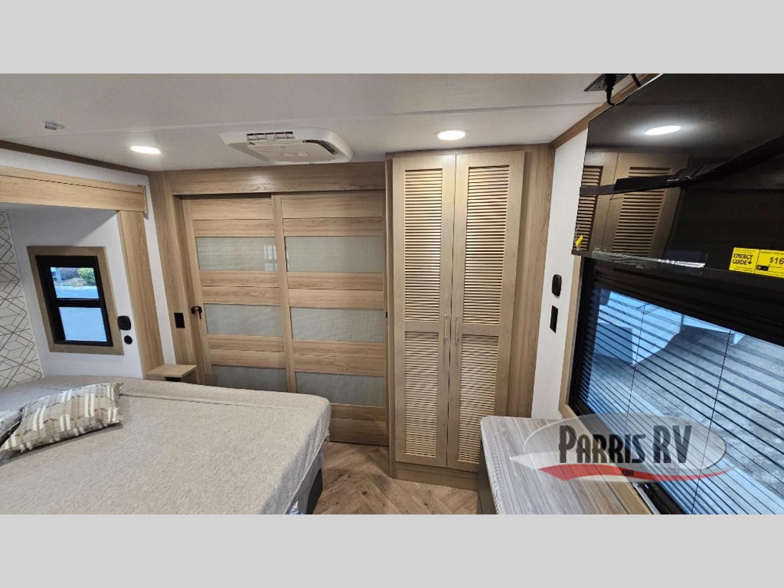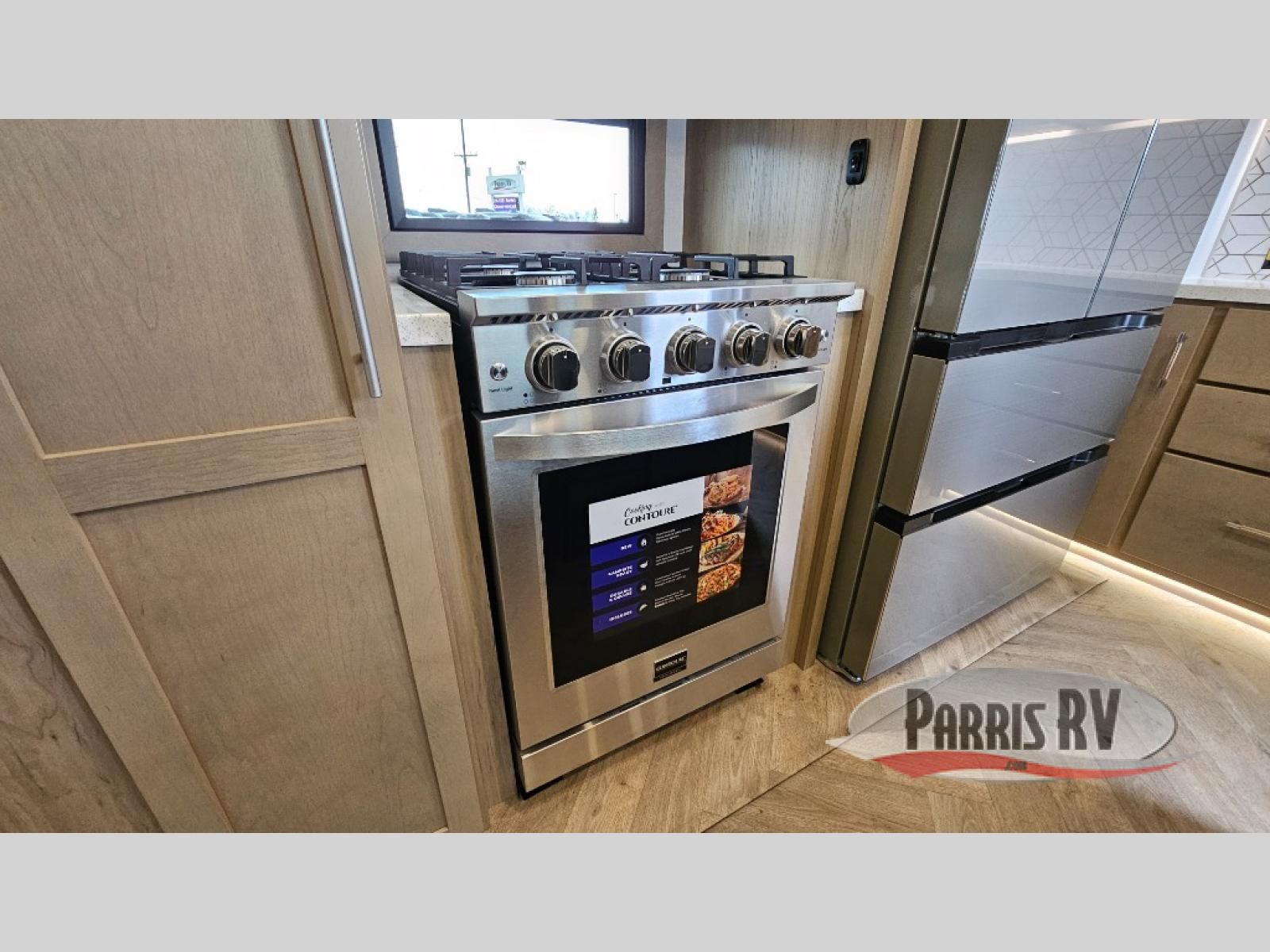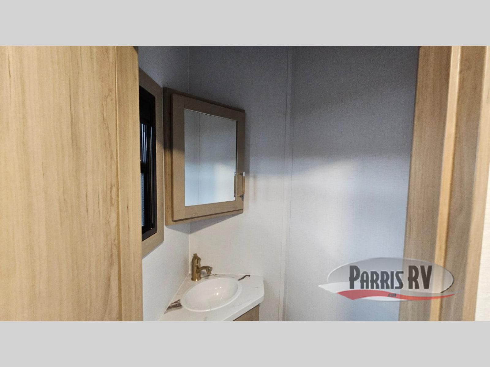 You will have everything you need for a comfortable camping trip and then some with this toy hauler! Load your toys into the 16' garage area with the Lippert Power Play motorized ramp door and secure them with 5,000 lb. frame welded tie-downs. The garage also has an electric bed above dual opposing sofas with a loft with a twin bed and a half bathroom. Create your best meals with the four-burner cooktop and enjoy the company of others sitting at the kitchen island with three bar stools while you prepare it. Relax in true comfort on the 4-seat recliner across from the entertainment center with a fireplace. When you're ready to wind down your nights, take a hot shower in the full bathroom then head directly into the front private bedroom which features a king bed suite with a large front wardrobe for clothing storage, and washer/dryer prep in case you wish to add appliances so you can wash your clothes while you are away!