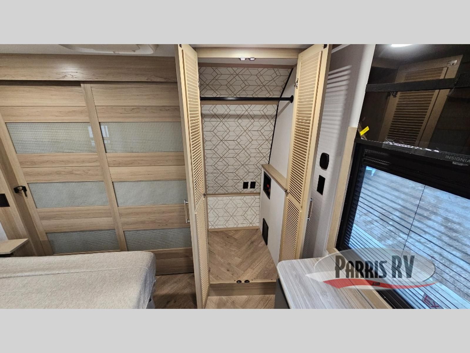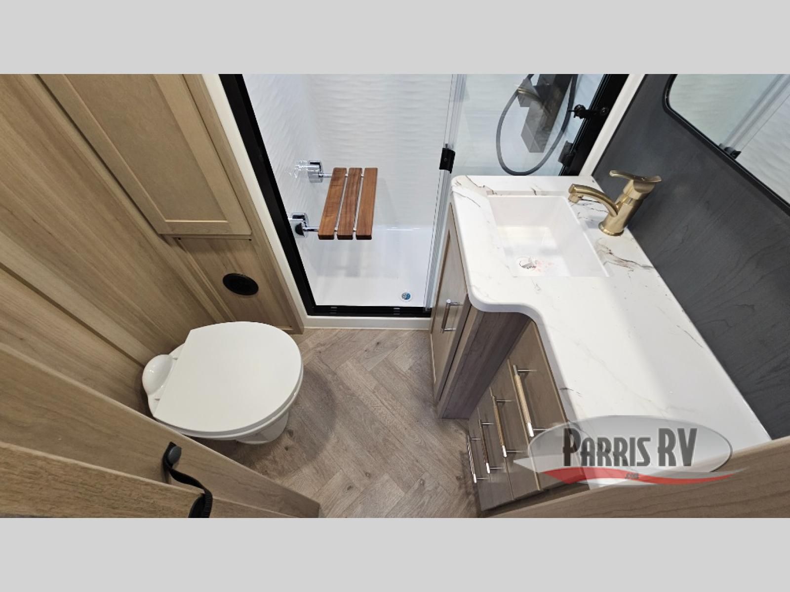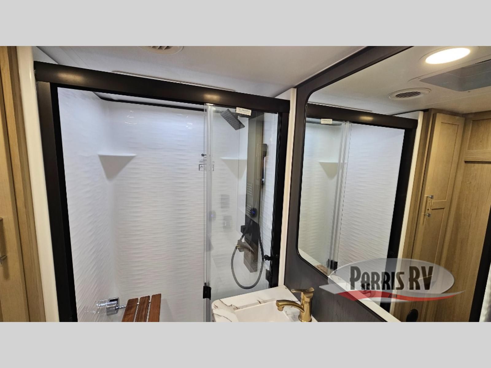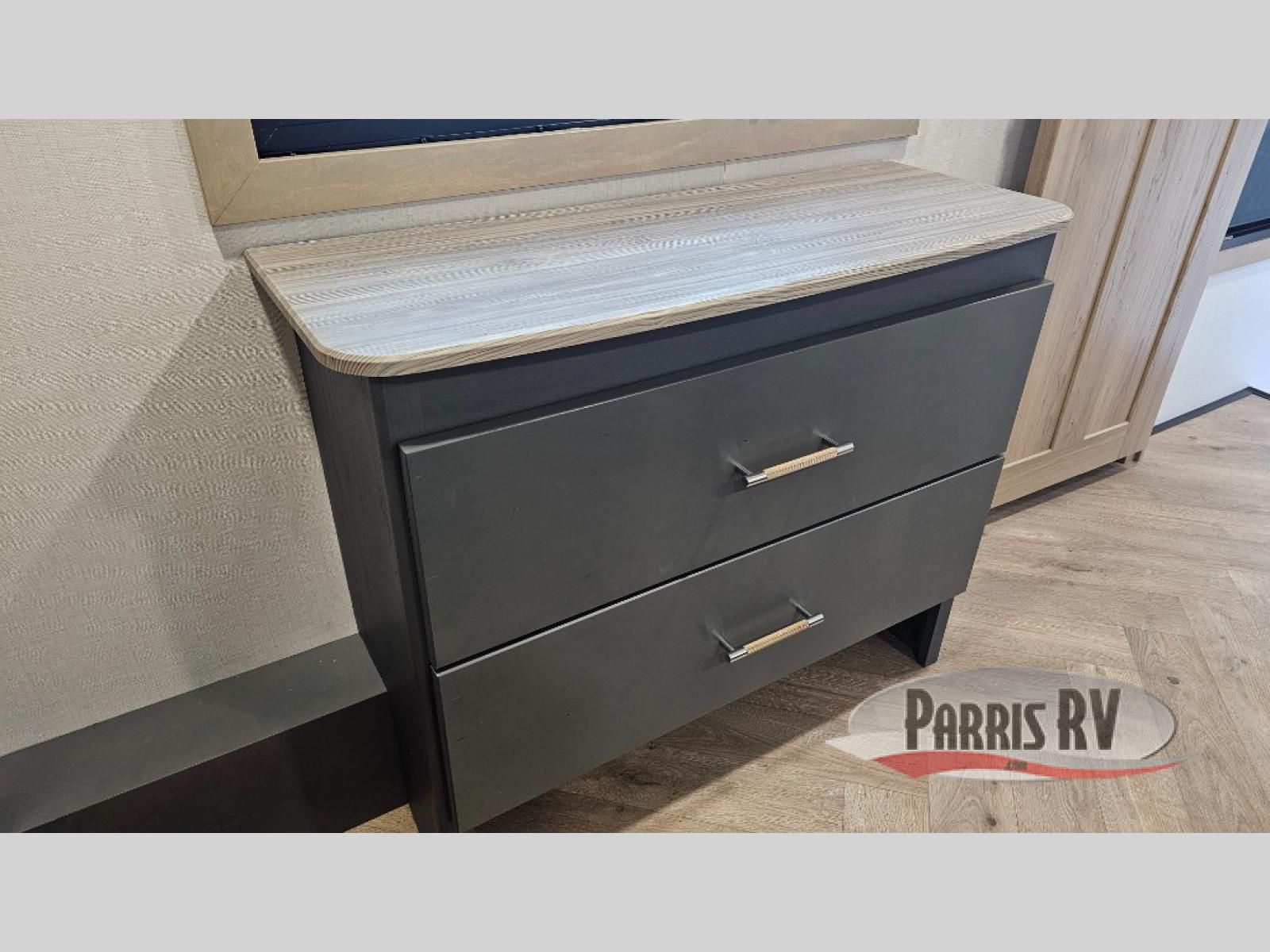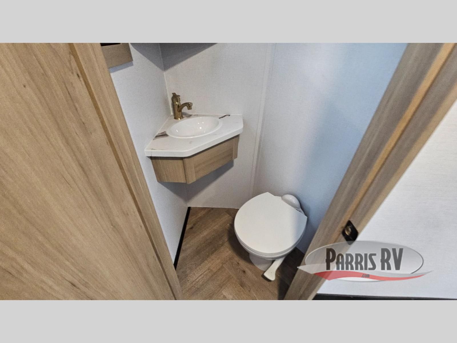 You will have everything you need for a comfortable camping trip and then some with this toy hauler! Load your toys into the 16' garage area with the Lippert Power Play motorized ramp door and secure them with 5,000 lb. frame welded tie-downs. The garage also has an electric bed above dual opposing sofas with a loft with a twin bed and a half bathroom. Create your best meals with the four-burner cooktop and enjoy the company of others sitting at the kitchen island with three bar stools while you prepare it. Relax in true comfort on the 4-seat recliner across from the entertainment center with a fireplace. When you're ready to wind down your nights, take a hot shower in the full bathroom then head directly into the front private bedroom which features a king bed suite with a large front wardrobe for clothing storage, and washer/dryer prep in case you wish to add appliances so you can wash your clothes while you are away!