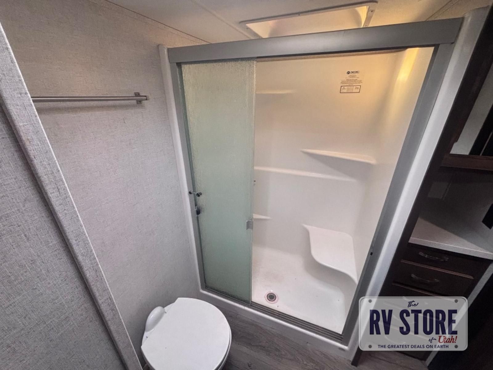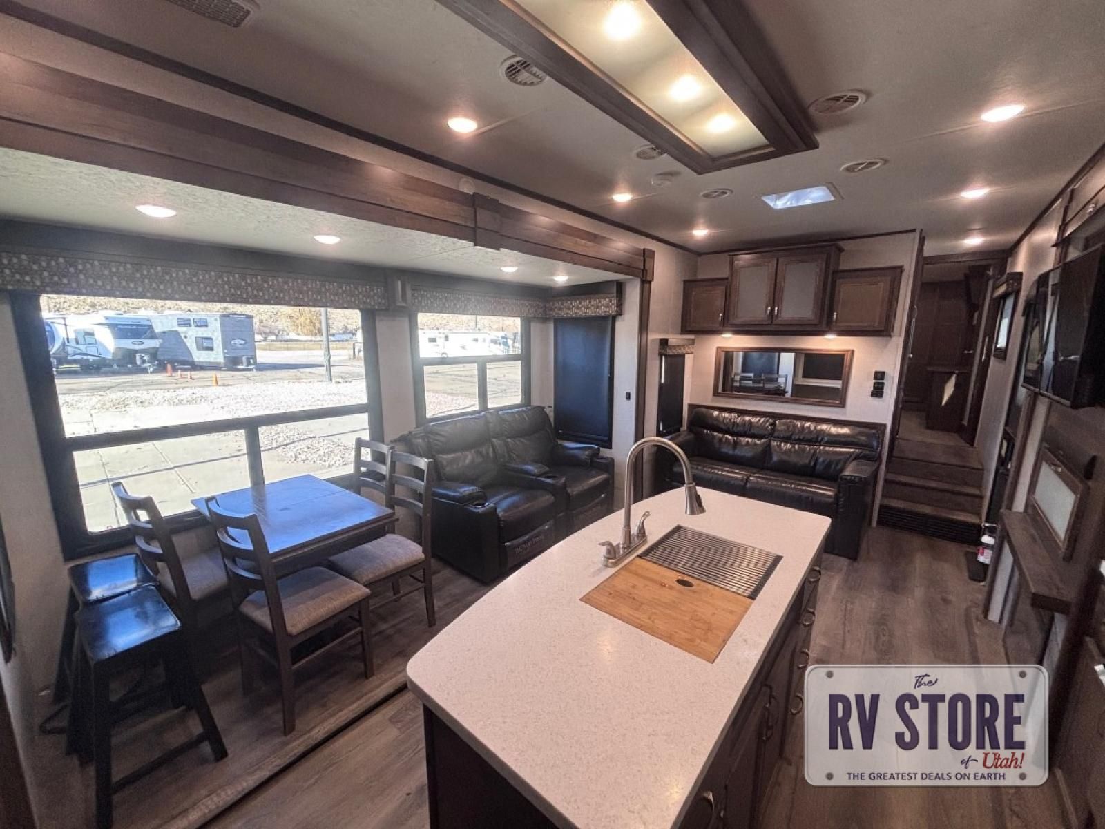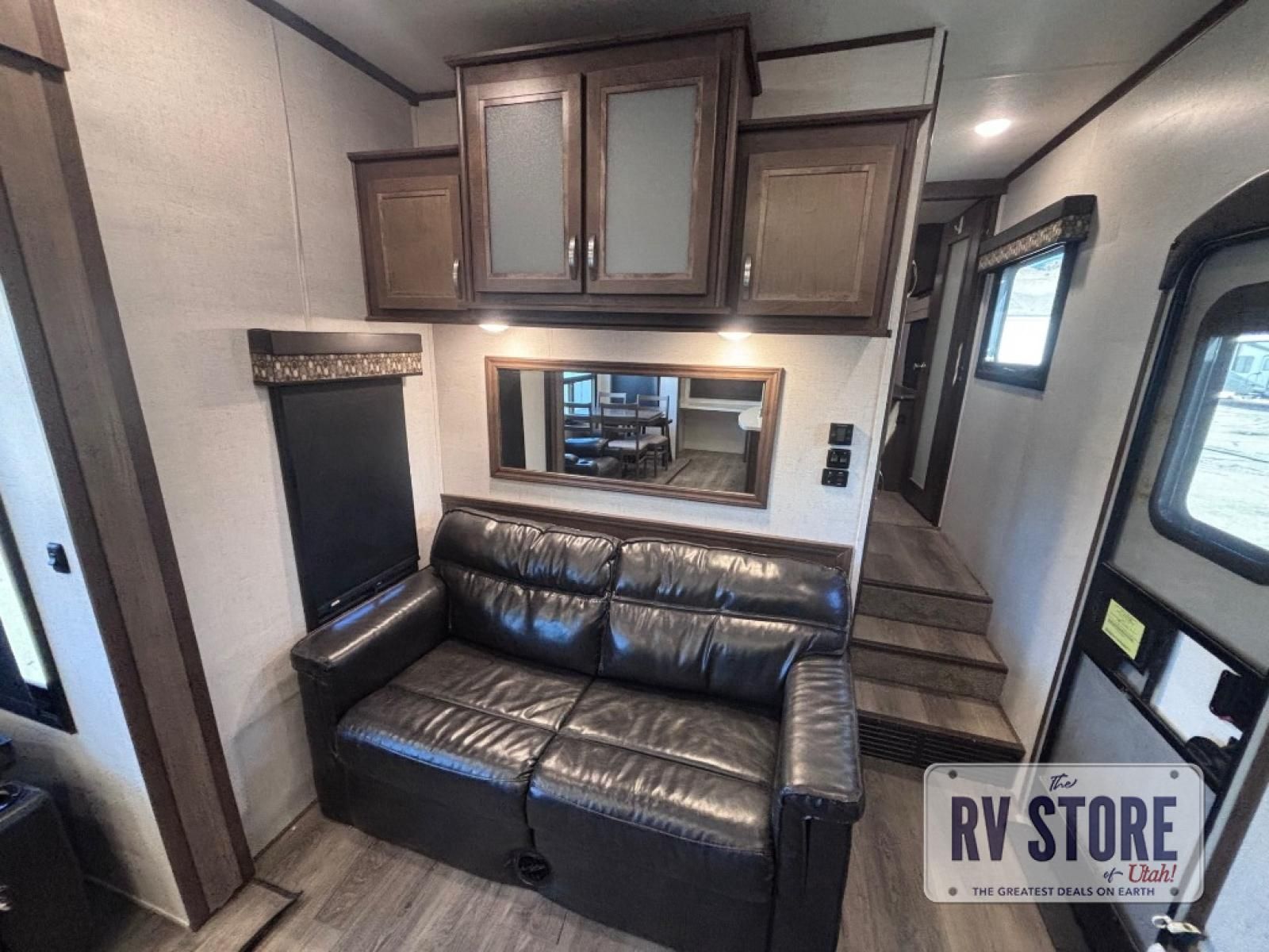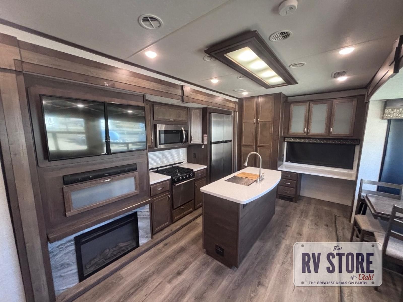Come see what all the "buzz" is about! This fifth wheel is the perfect couple's RV for several reasons. Just imagine working at the desk after you grabbed a snack from the large pantry, and washed off an apple in the stainless steel sink on the center island. The kitchen layout offers a slide with all the appliances you will need to cook any meal, and a second slide with a free standing dinette and theater seats. There is even a sofa, making this area great for hosting your camping friends when the weather outside isn't just right. You will love the easy access to the dual entry bath especially at night, and the mirrored wardrobe when you are getting dressed for your next adventure. This could be the perfect choice!