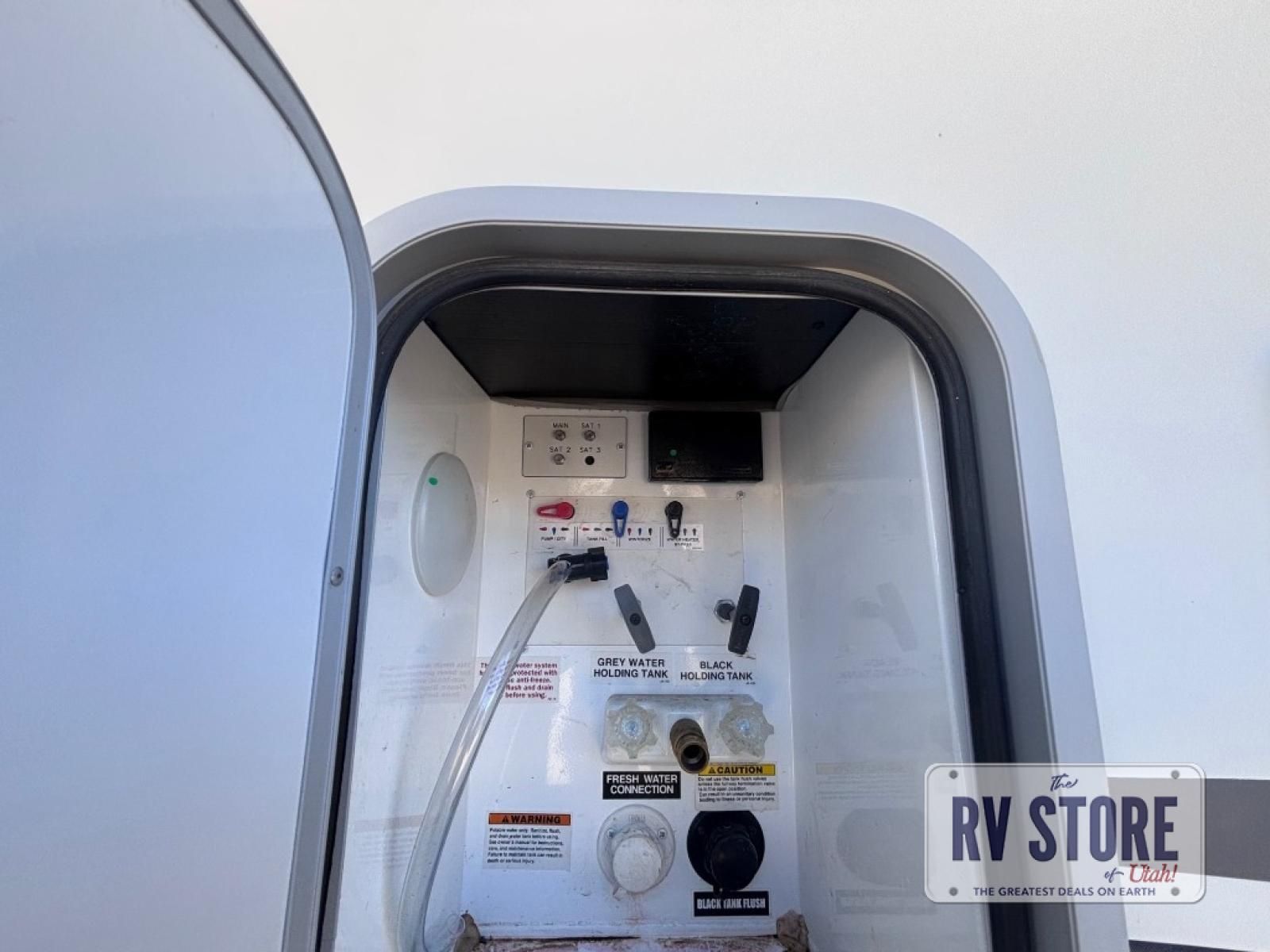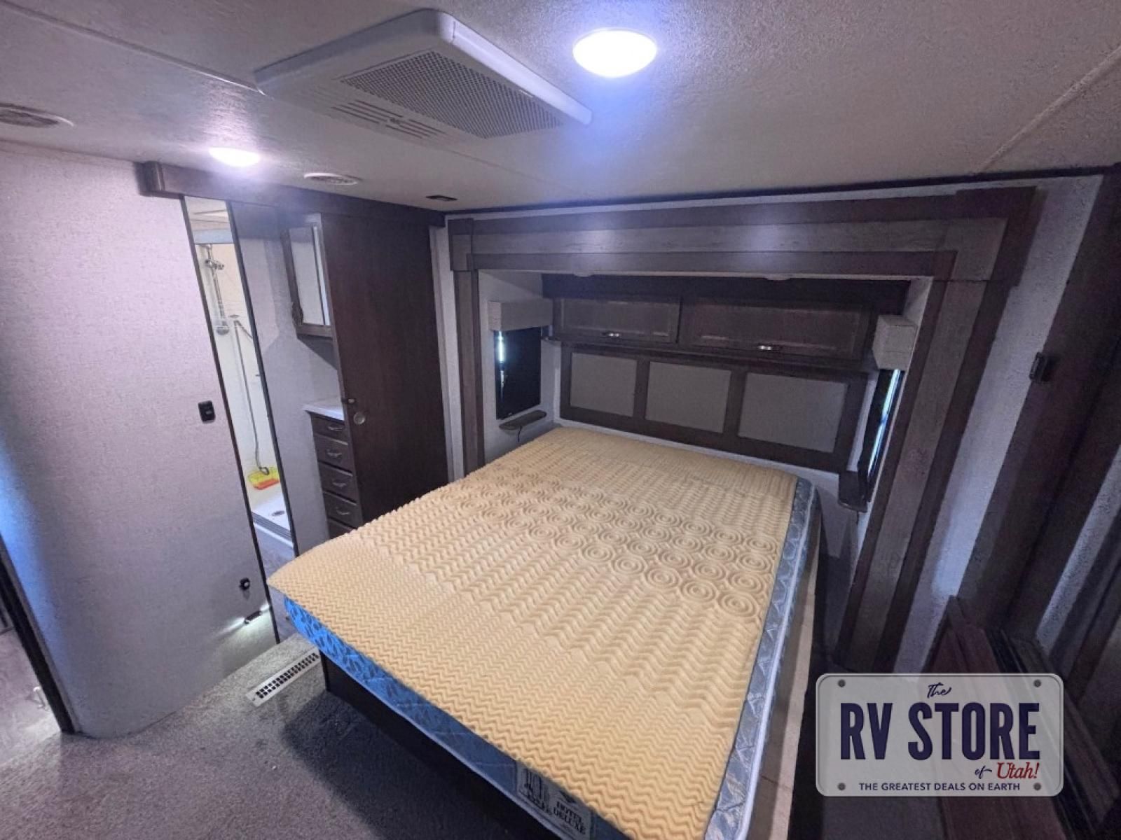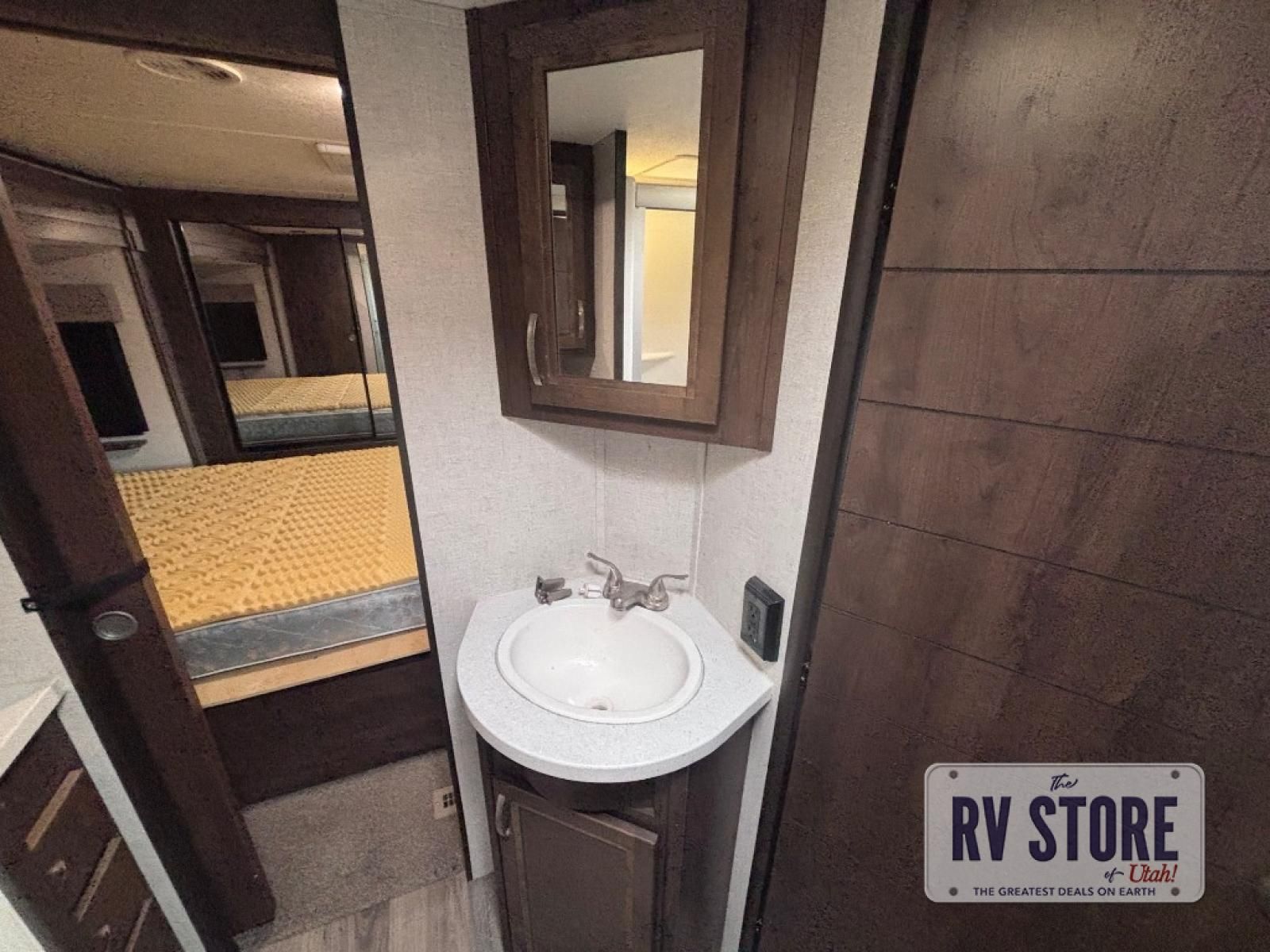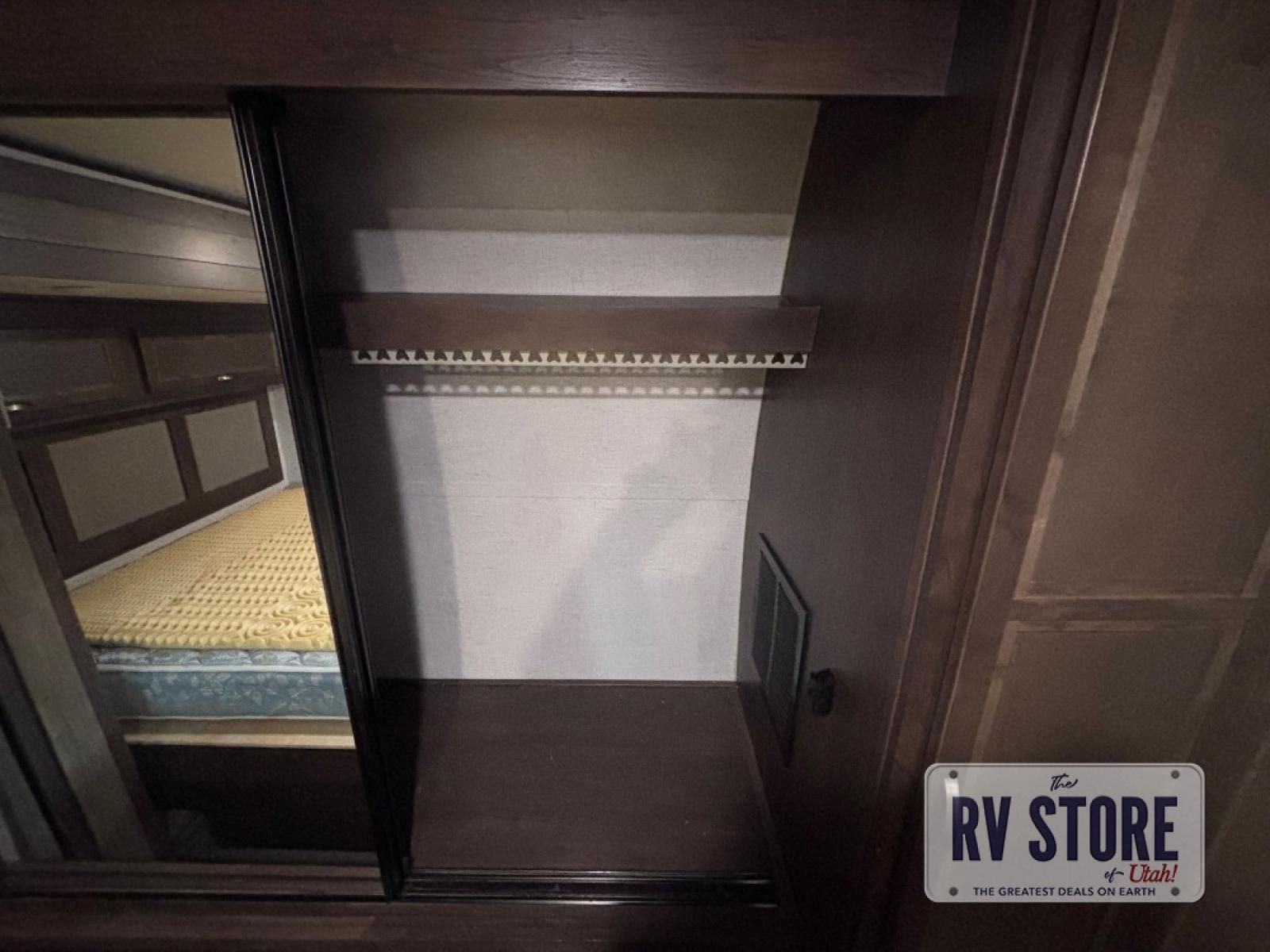 Come see what all the "buzz" is about! This fifth wheel is the perfect couple's RV for several reasons. Just imagine working at the desk after you grabbed a snack from the large pantry, and washed off an apple in the stainless steel sink on the center island. The kitchen layout offers a slide with all the appliances you will need to cook any meal, and a second slide with a free standing dinette and theater seats. There is even a sofa, making this area great for hosting your camping friends when the weather outside isn't just right. You will love the easy access to the dual entry bath especially at night, and the mirrored wardrobe when you are getting dressed for your next adventure. This could be the perfect choice!