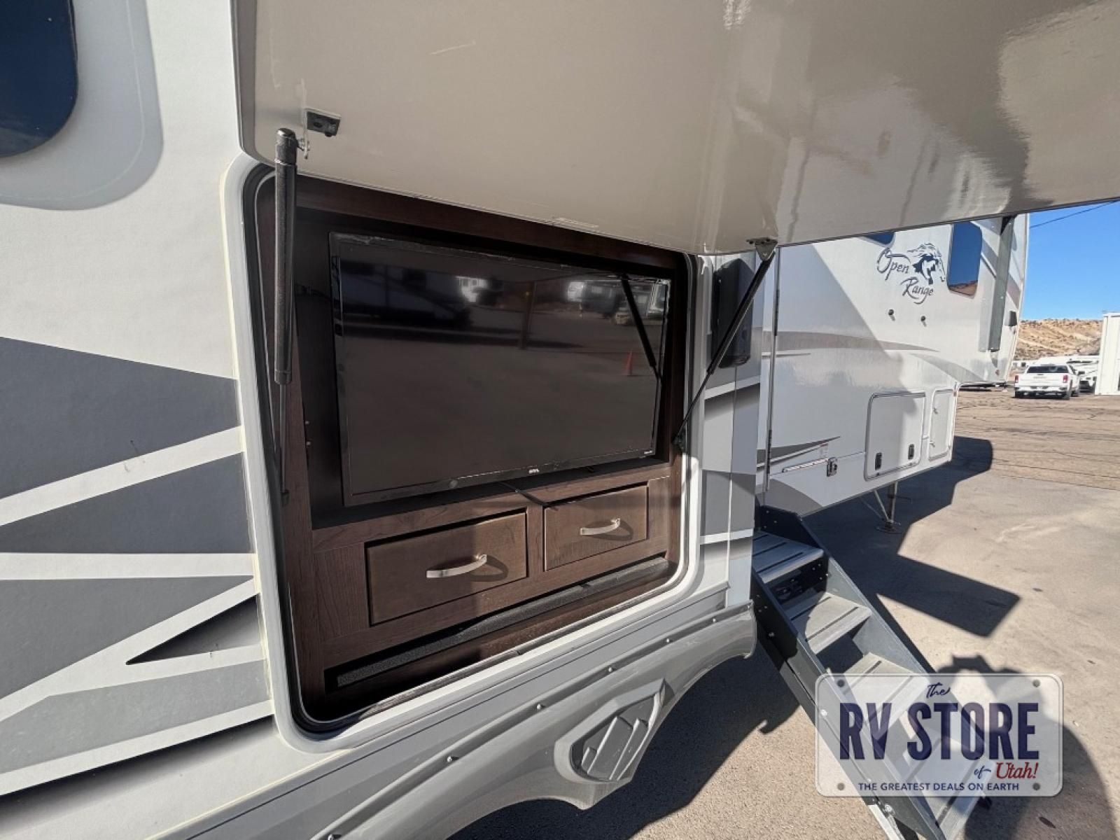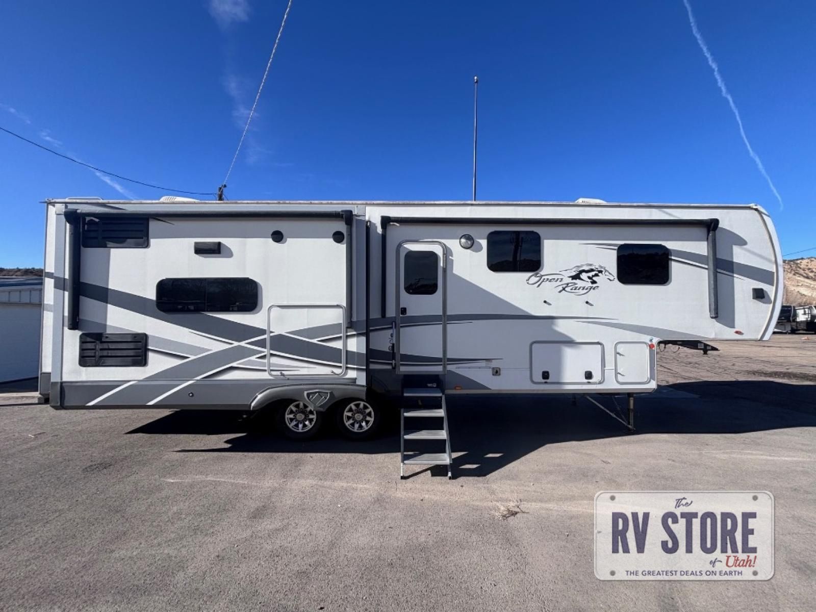 The Highland Ridge RV Open Range is designed for extended use during any season. Each fifth wheel offers inside comforts such as stainless steel appliances, ball bearing full extension drawer guides, a motion sensor light in the bedroom and hallway, as well as a USB/12V charging port that charges your portable electronics even when you are not hooked up to a power source. You will experience a quick and easy way to set up your fifth wheel with the 6-Point automatic leveling system or 4-point leveling system depending on the model you choose, and the JT Strong Arm stabilizers helping to eliminate movement while inside the unit. Choose your favorite Open Range today!