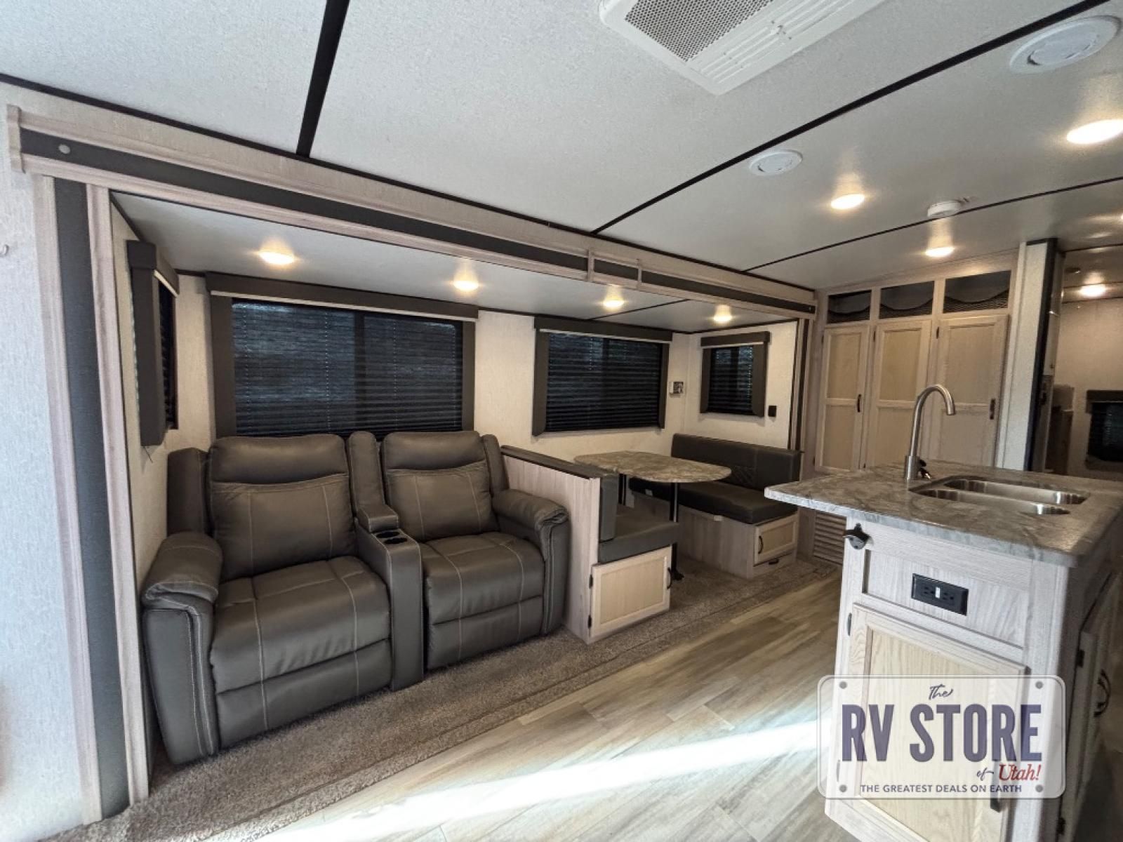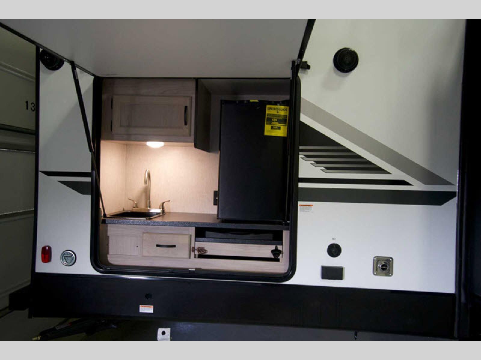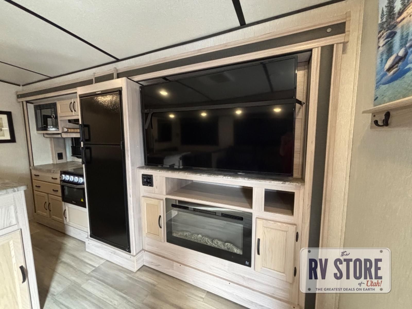Your family might never want to go home after camping in this Spirit Ultra Lite travel trailer! With its rear private bunkhouse and front private bedroom, you will have the perfect trailer for fun with extra sleeping space for guests, and the three slides give you extra floor space so that no one feels crowded. You will love having a shower with seat in the full bathroom after a long hike or run. The fireplace will keep you cozy when traveling in cooler temperatures, and the air conditioner is nice in the summer. The kids can play and sleep in the bunkhouse that has two bunks and a tri-fold sofa. Making your famous meals is easy in the full kitchen, and you can make a few meals on the outside camp kitchen.