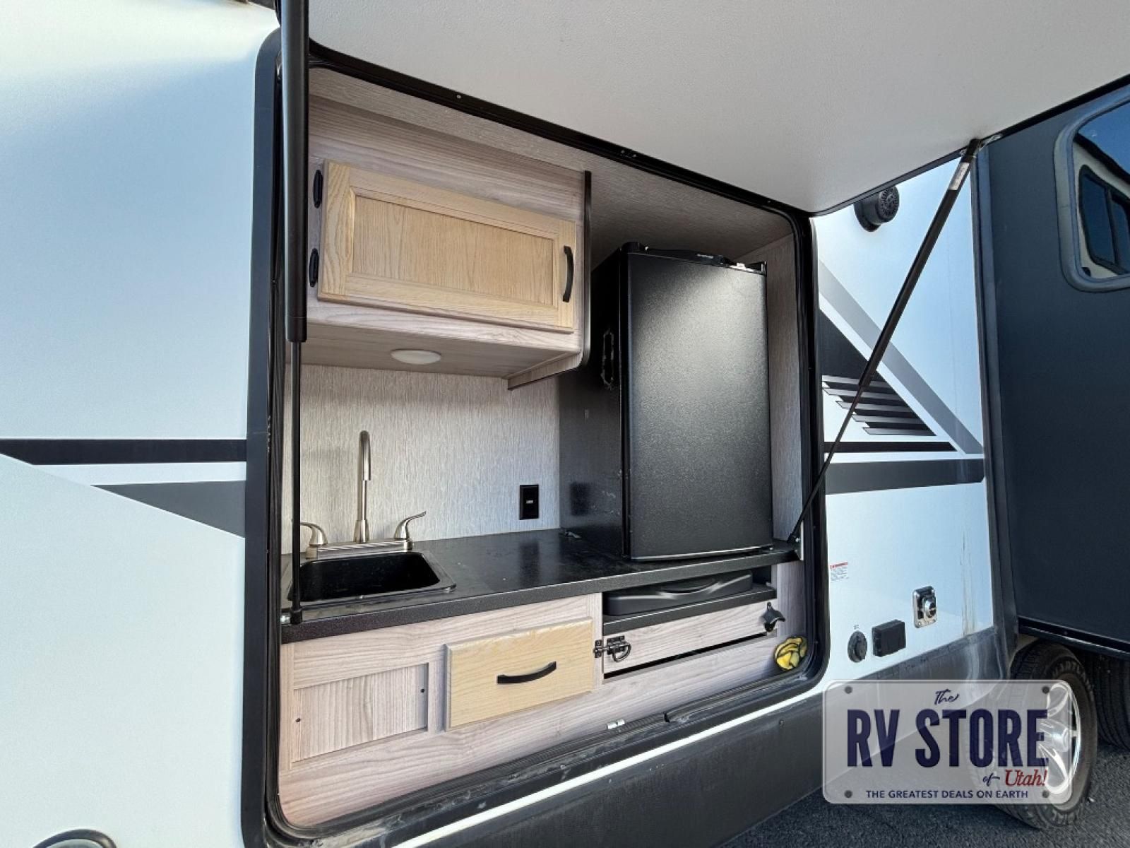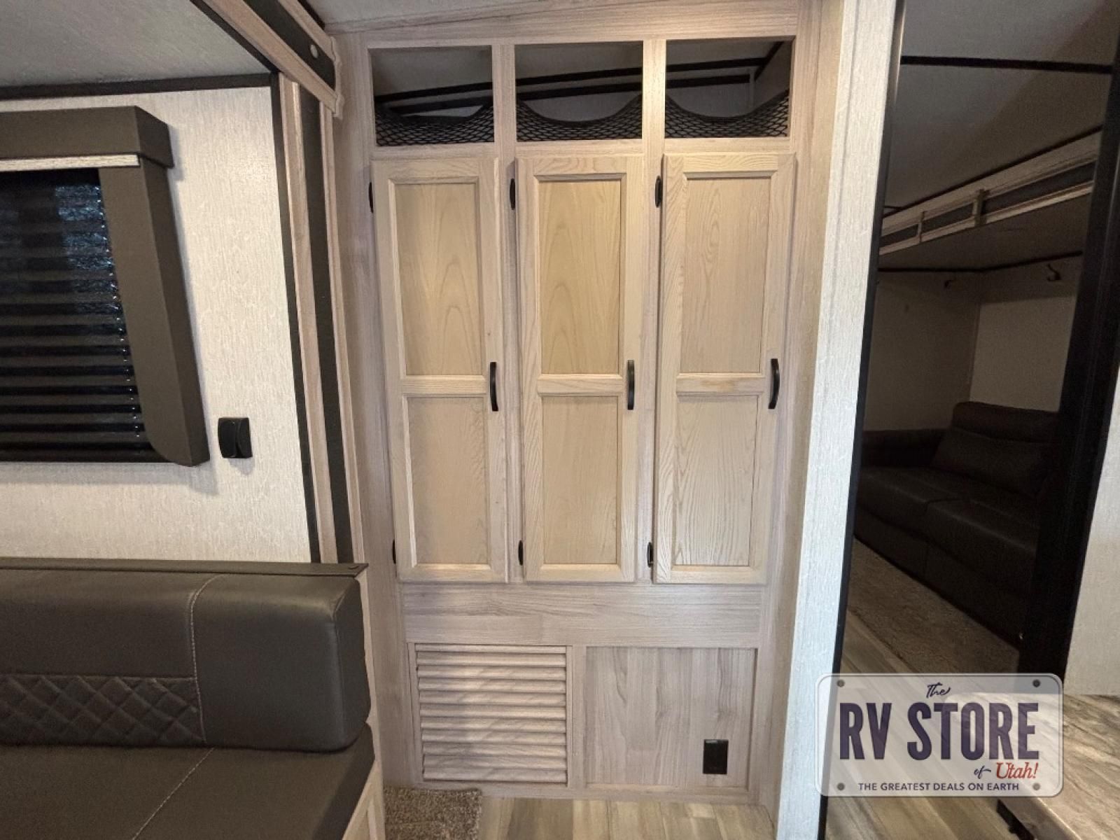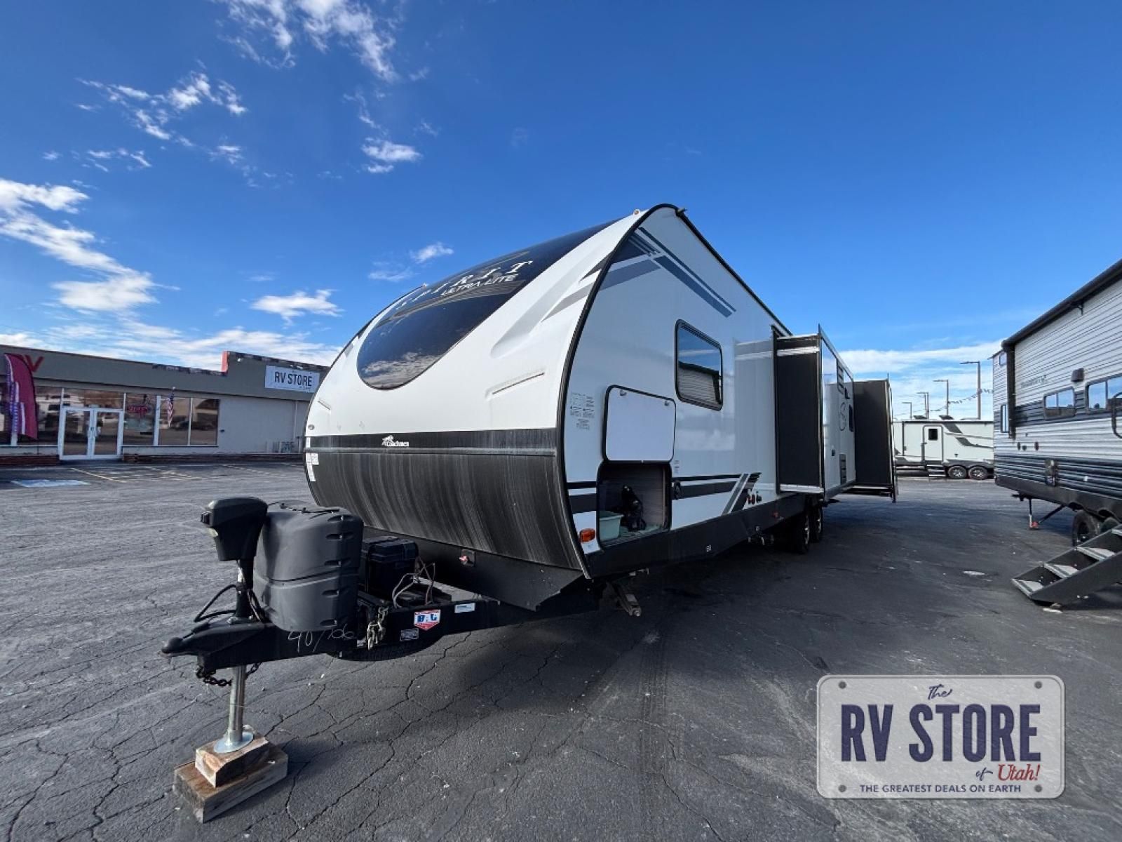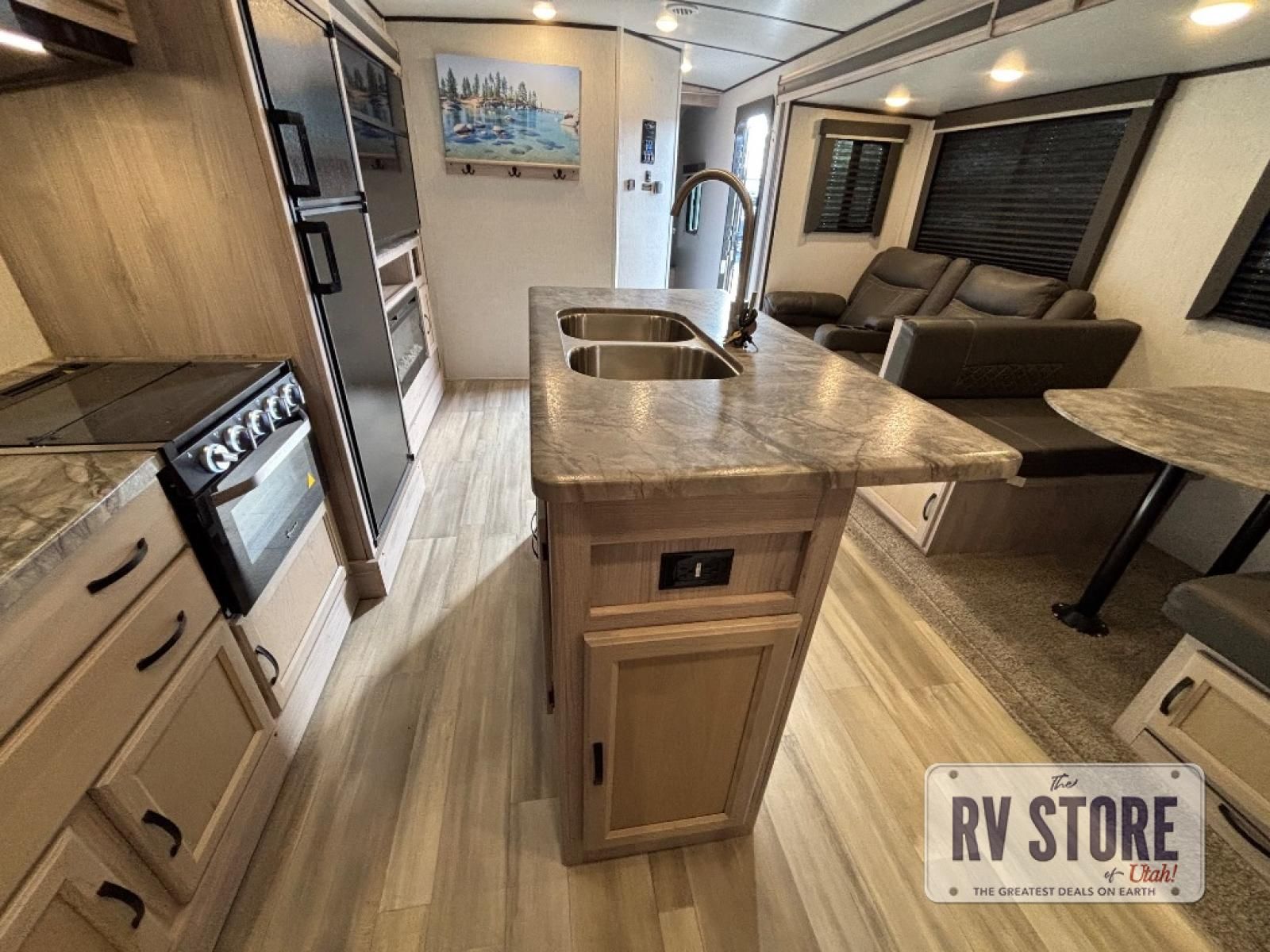 Your family might never want to go home after camping in this Spirit Ultra Lite travel trailer! With its rear private bunkhouse and front private bedroom, you will have the perfect trailer for fun with extra sleeping space for guests, and the three slides give you extra floor space so that no one feels crowded. You will love having a shower with seat in the full bathroom after a long hike or run. The fireplace will keep you cozy when traveling in cooler temperatures, and the air conditioner is nice in the summer. The kids can play and sleep in the bunkhouse that has two bunks and a tri-fold sofa. Making your famous meals is easy in the full kitchen, and you can make a few meals on the outside camp kitchen.