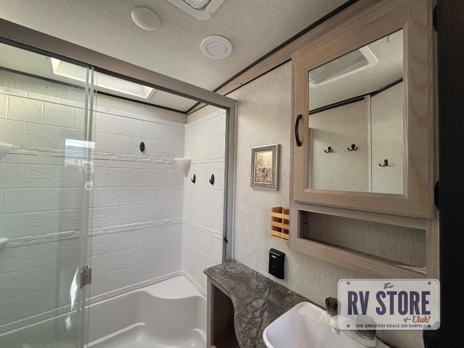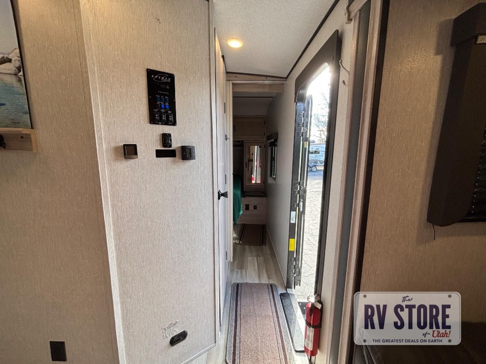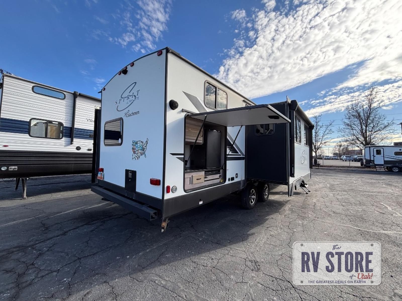 With any Coachmen Spirit Ultra Lite travel trailer, you can simplify your camping without missing any features you would want in your RV! Enjoy years of use during any season with the heated and enclosed underbelly, and feel secure in the lightweight construction of the laminated, aluminum-framed floor and sidewalls, the Azdel composite panels, the Tufflex PVC roof membrane, and the 5" trusses with interior vault. Some other exterior features you will appreciate include the motion-activated light in the pass-through storage, the fishing pole storage, and the dog leash clip. The interior offers lighted USB ports to keep the electronics charged, an AM/FM Bluetooth stereo to listen to tunes, a laundry center to keep everything tidy, and many more storage solutions giving you more relaxation and fun adventures!Â