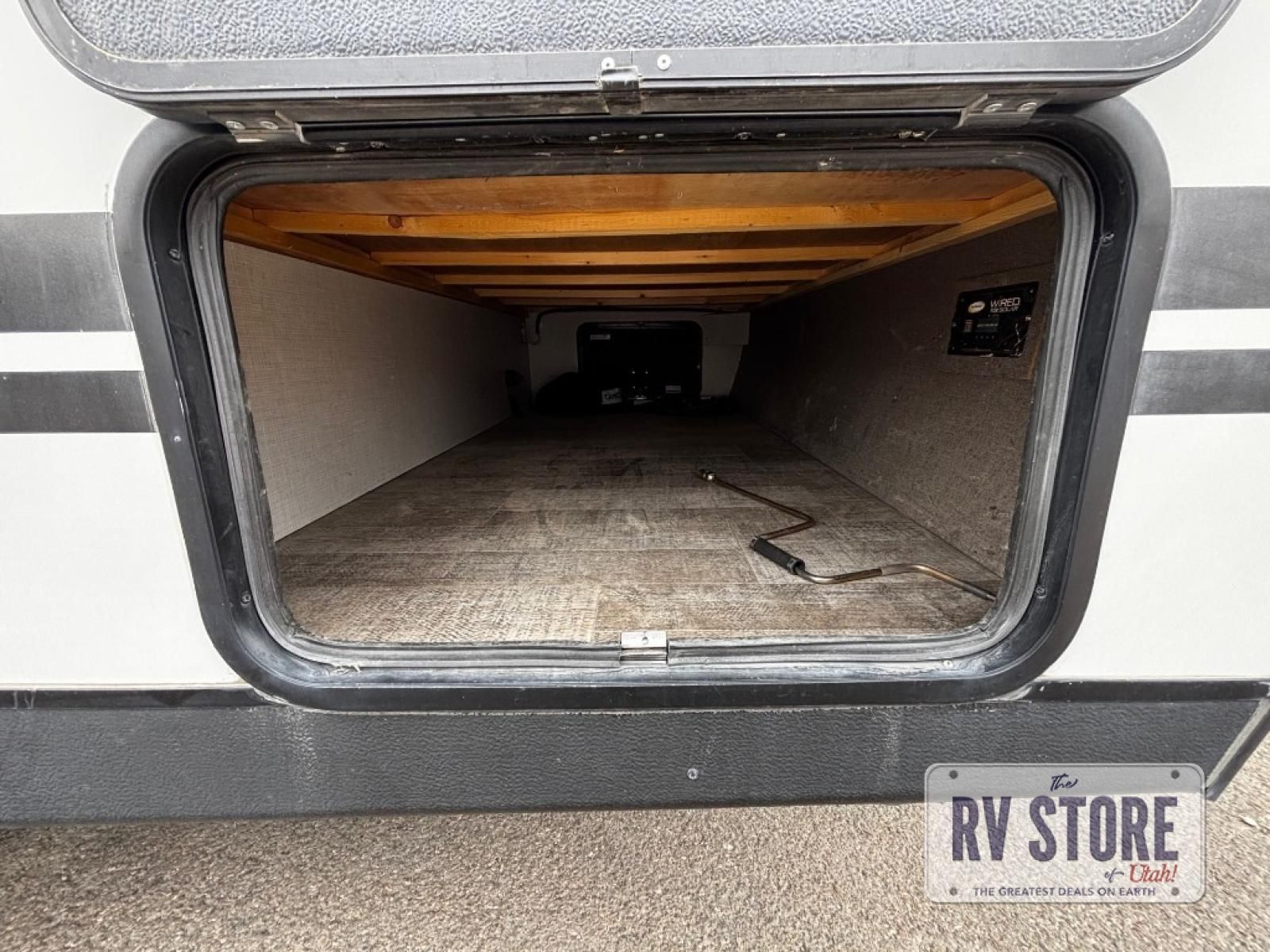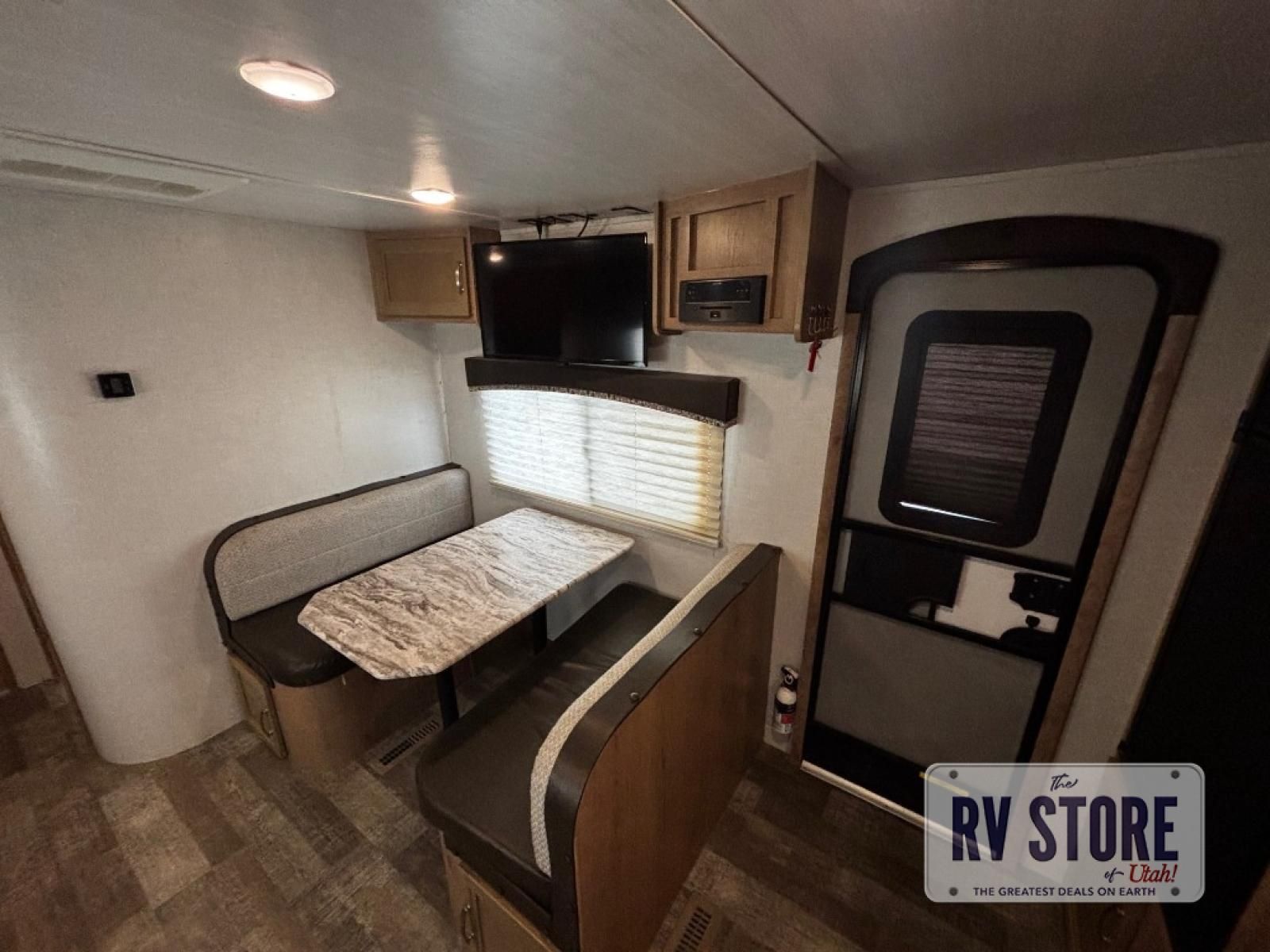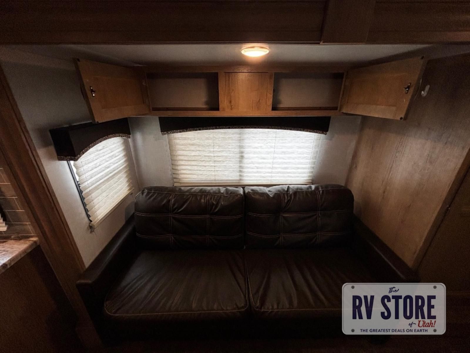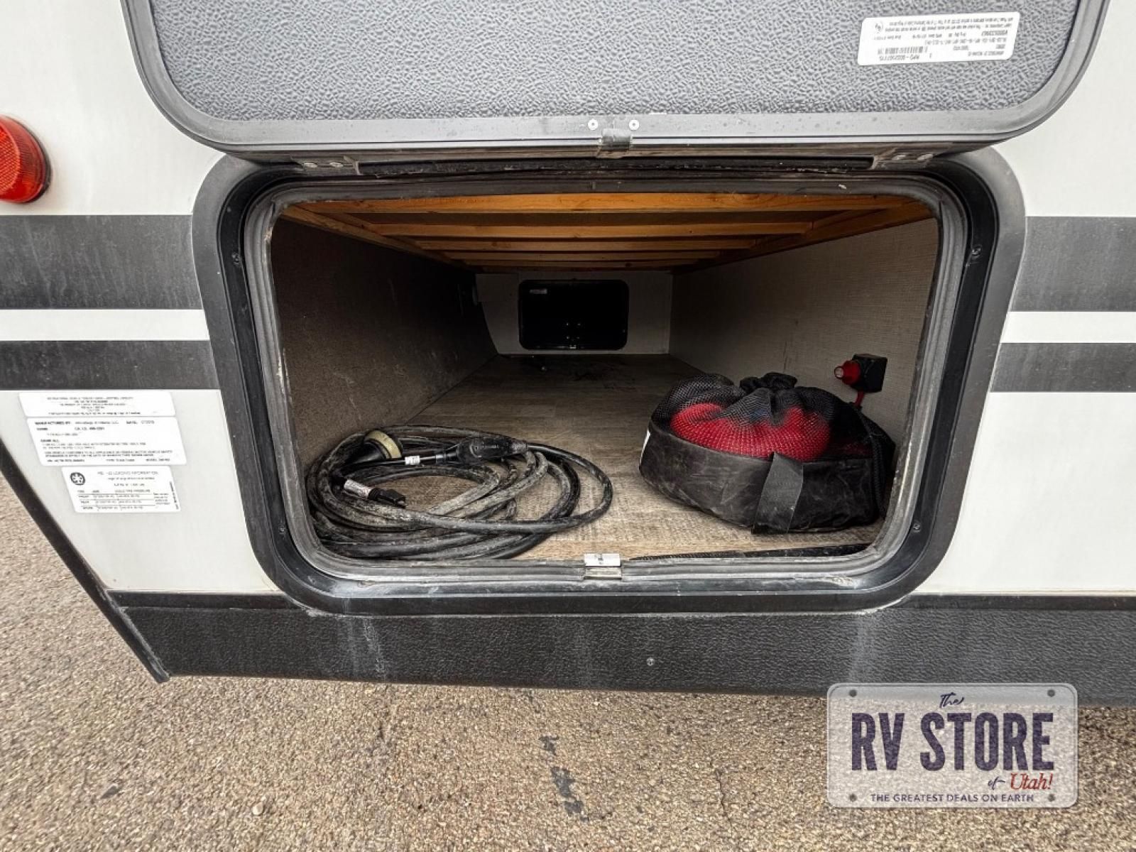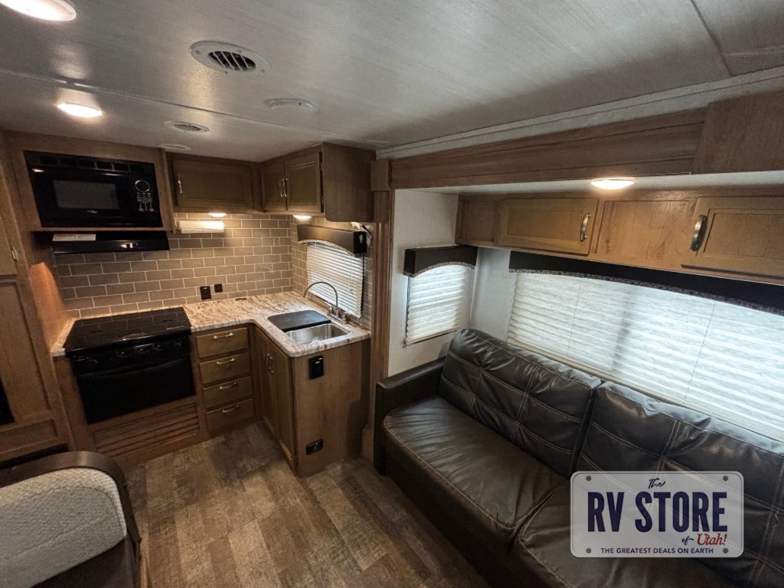 The rear kitchen really makes this Minnie travel trailer unique. You will find it easy and fun to cook while you camp, and dining will be comfortable at the booth dinette inside. You can also choose to take your meals out on a warm, sunny day and enjoy the sites and sounds while you eat at a picnic table or under the 19' power awning in the shade. There is abundant storage throughout with overhead cabinets, wardrobes, and lockable storage spaces on the exterior where you can tuck away outdoor toys, games, and gear. You will also find an outdoor shower which is great for rinsing off before heading inside. The front master suite also features its own private entry door making it convenient to slip outside for a moonlit stroll on a warm, clear night!