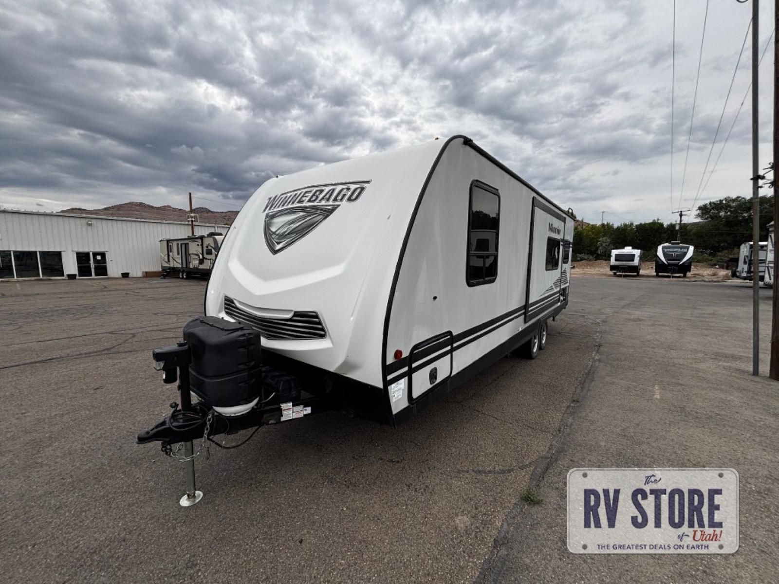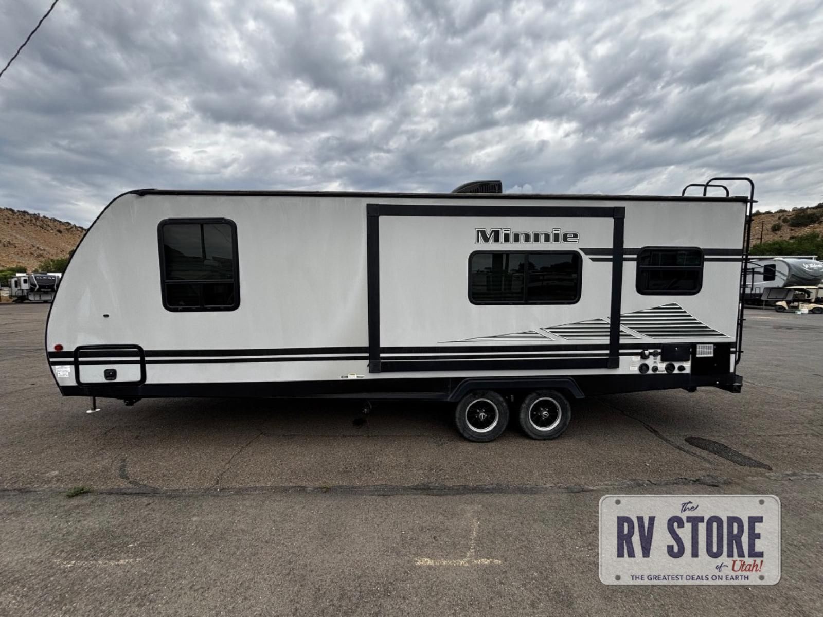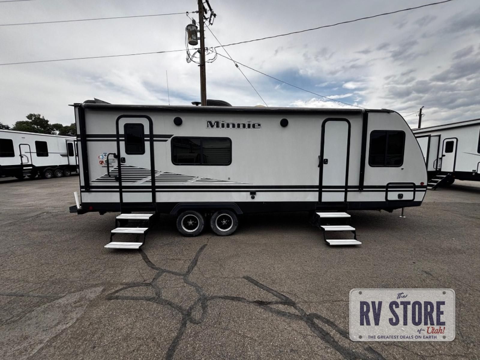 In any Minnie travel trailer by Winnebago Industries Towables, you will find increased living space with a fantastic single slide. On the inside, you will find each Minnie trailer to be full of life with light-colored interiors, easy-to-clean linoleum surfaces along with efficient LED lighting. The best-in-class exterior storage features 44 cu.ft. of space for all your camp gear, and the lockable storage door will help keep everything secure. You will also be the talk of the campground with your Minnie travel trailer because it comes with exterior fiberglass sidewalls.