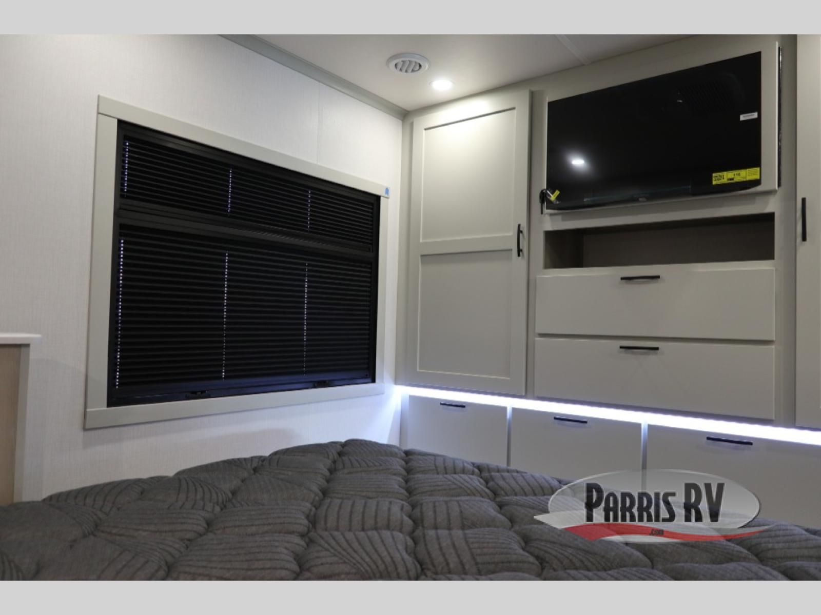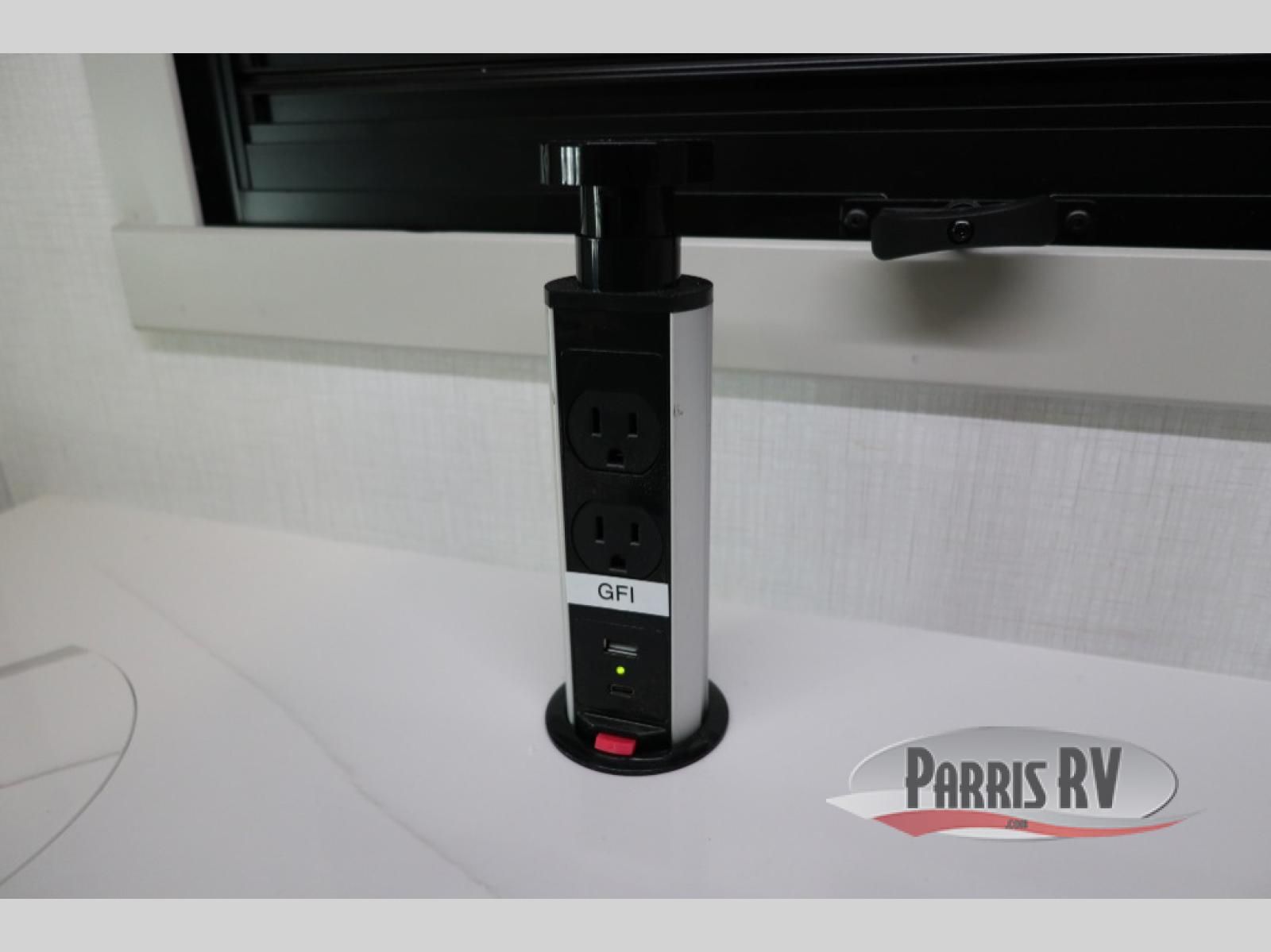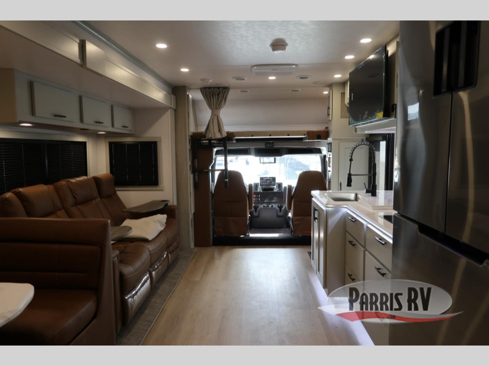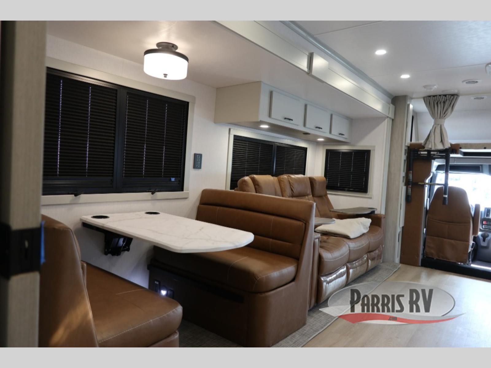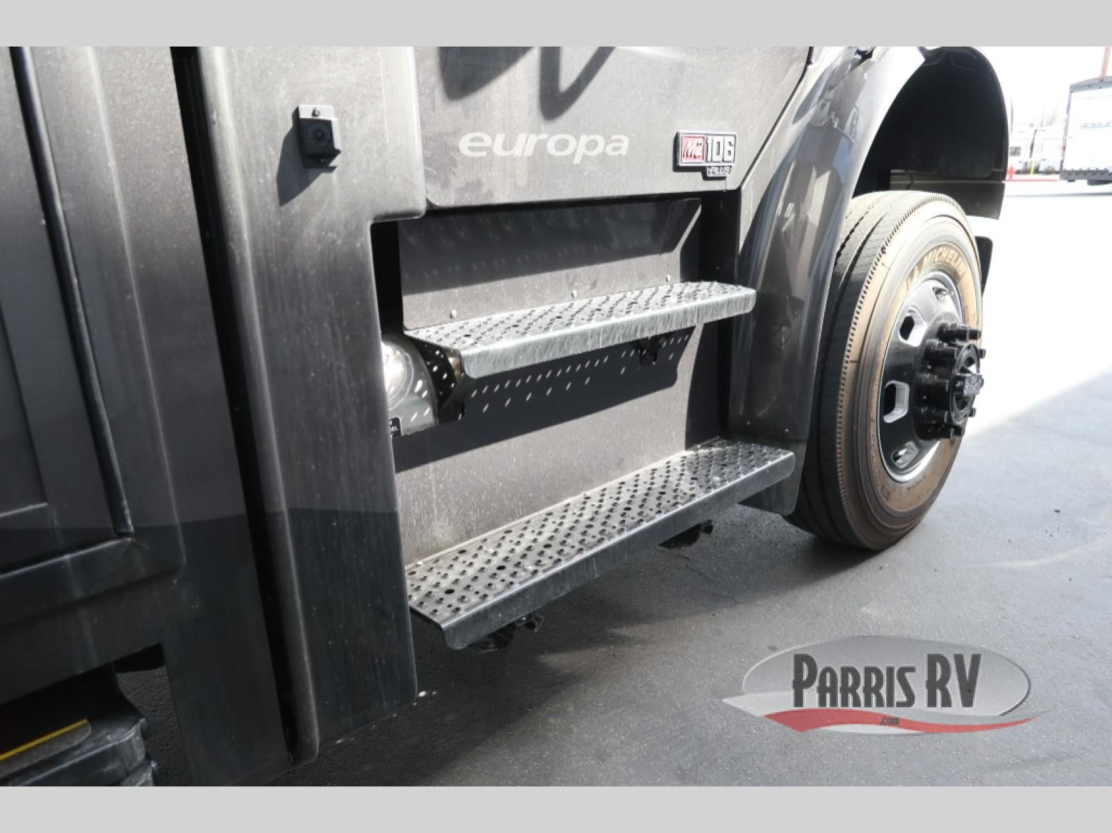 The Europa Super C diesel motorhome by Dynamax is coming to you with all the power, durability, and luxury you need for your adventurous lifestyle. You will love the solid surface countertop with LED edge lighting in the kitchen, the premium vinyl flooring throughout, and the clean, contemporary styling. The on-demand water heater is a luxury you won't want to travel without, and the multiplex wiring with a touch screen command center includes switch panels, and Bluetooth Smart Phone app control for ease of use. There are dual 12V 8D AGM deep-cycle maintenance-free house batteries and a single 200-watt solar panel to go off-grid if you choose, and the 15,000 lb. trailer hitch will allow you to bring along the off-road toys. Some of the exterior features that make this coach great are the armless patio awning with LED lighting, the automatic four-point hydraulic leveling jacks, and the eye-catching custom full-body paint package!