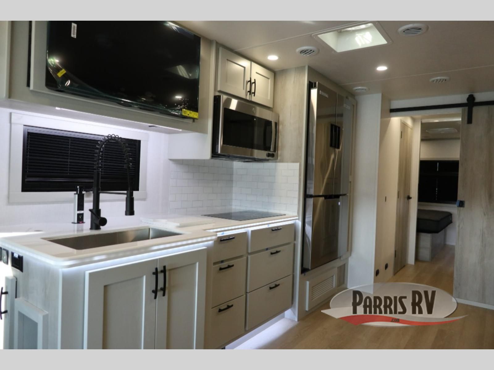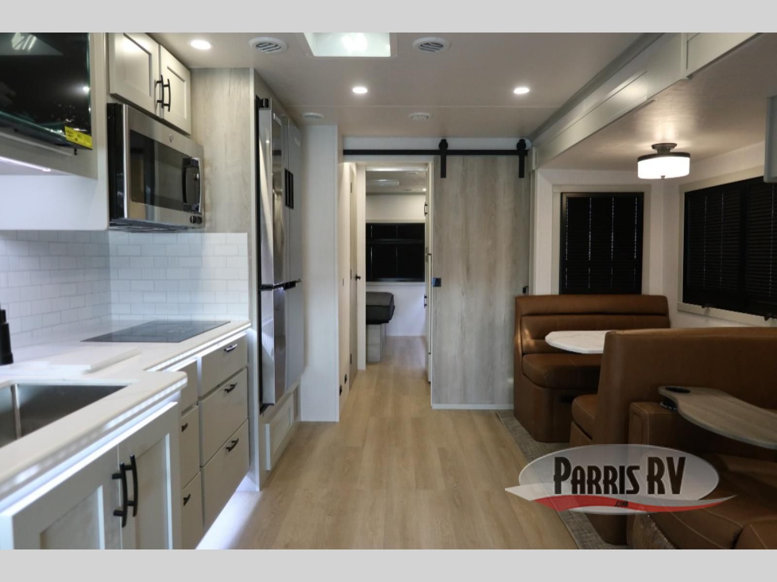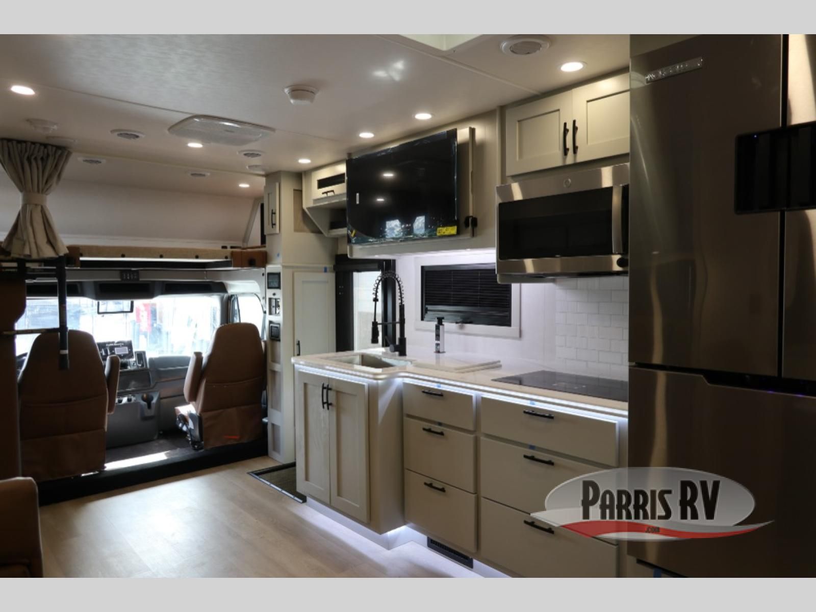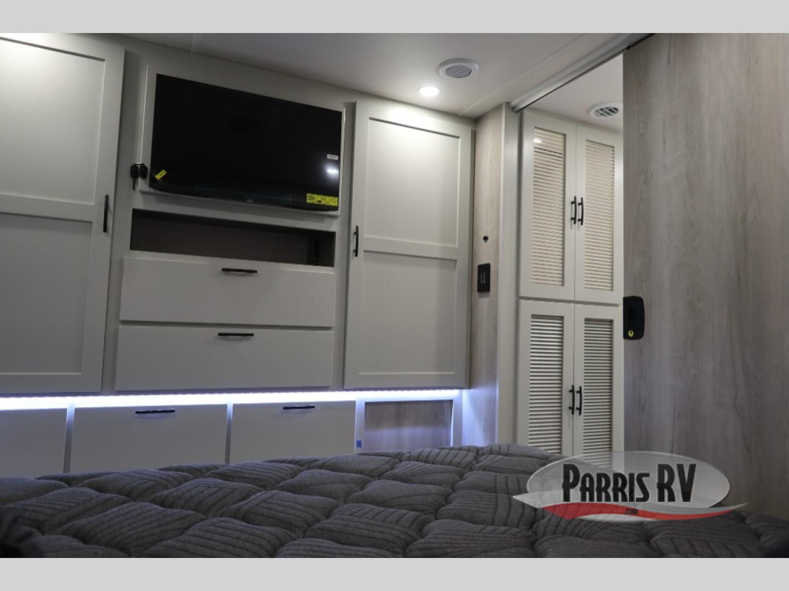 This double slide out coach is perfect for any vacation. Once you arrive at your destination, you can relax on the tri-fold sleeper sofa or play a game at the dream dinette. There is also a 39" LED Smart TV across from the sofa for easy viewing. You will enjoy cooking in the kitchen on the three-burner range or in the convection microwave, plus there is a 15 cu. ft. 12V 3-door compressor-driven refrigerator for perishables. This Europa also features a rear master suite with a king bed slide out, a 32" LED Smart TV, and dual bedroom wardrobes. The full bath includes washer/dryer prep and a hallway sink for additional convenience. If you need more space, consider the cab-over bunk option to sleep more guests!