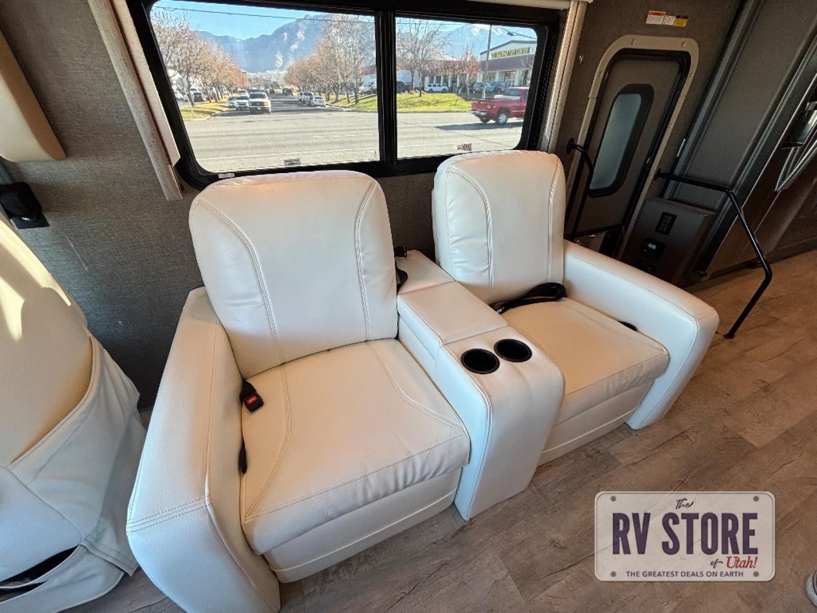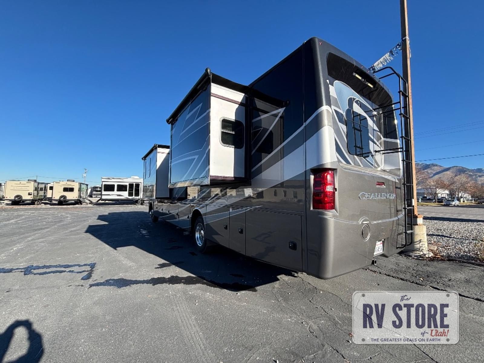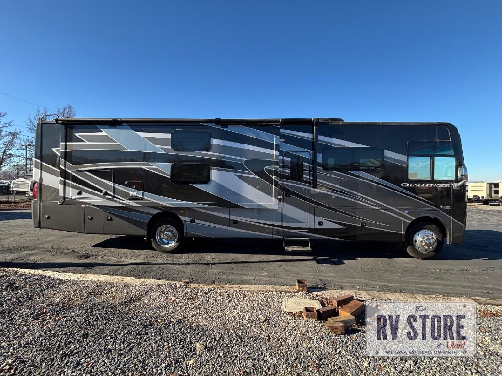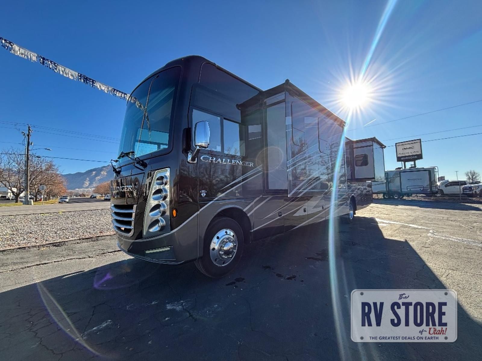 Search for that perfect mountaintop view or lakeside retreat with your powerful and luxurious Thor Motor Coach Challenger Class A gas motorhome! The Challenger is pet friendly with its Pet-Link multi-purpose tie-down, and it is also equipped with a 100W solar charging system that can be used to distance yourself from crowds and surround yourself with nature. You're going to absolutely love the exterior entertainment center because you can use it to play a movie while you sit back in your camp chairs and take in the night sky. Having Wi-Fi while on the road gives you the ultimate freedom, and the Winegard ConnecT Wi-Fi extender + 4G makes that possible. Some other top-notch amenities are the tankless water heater, whole-coach water filtration system, Onan RV QG 5,500 gas generator, and sound bar in the living room.Â