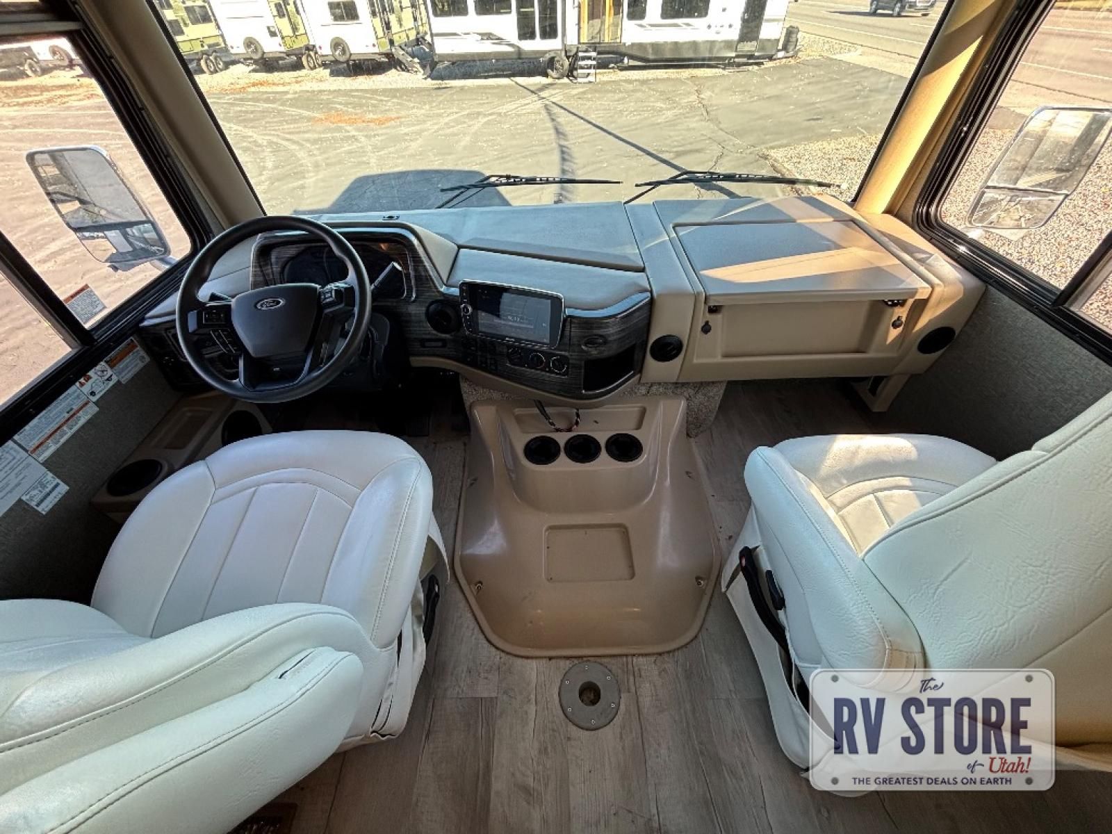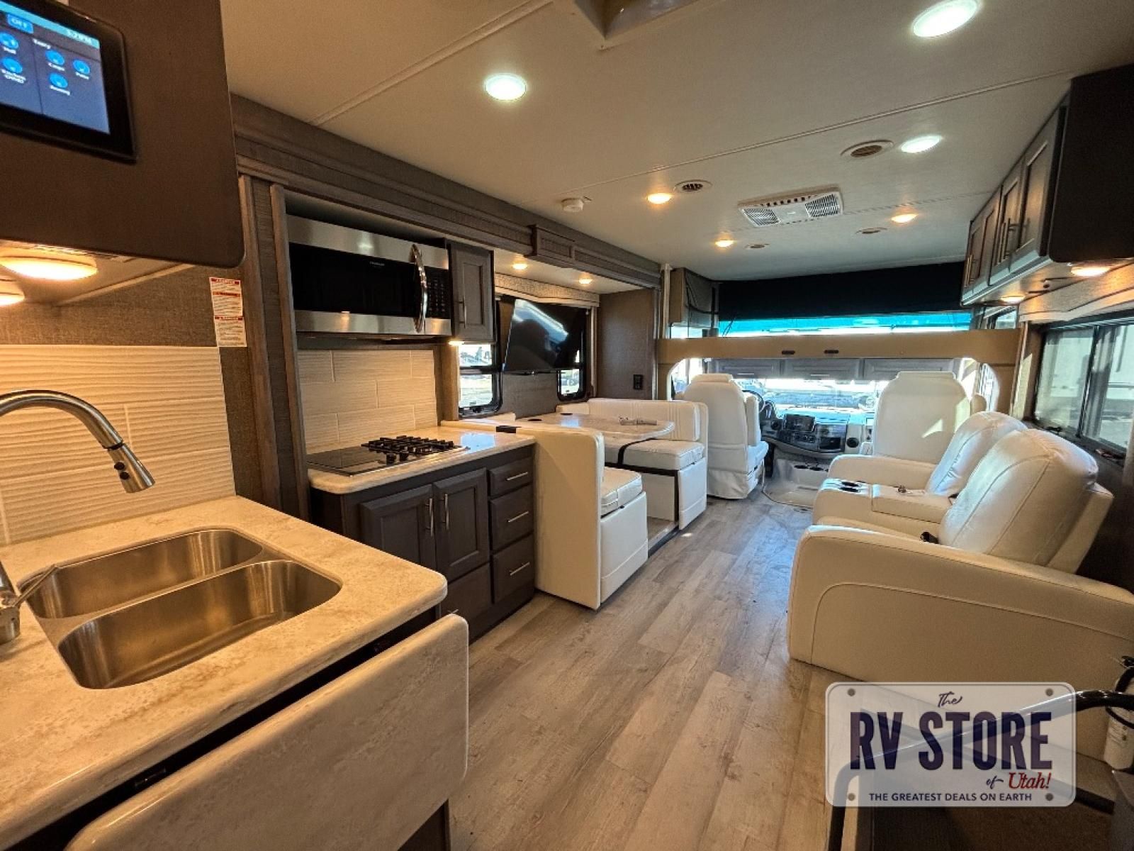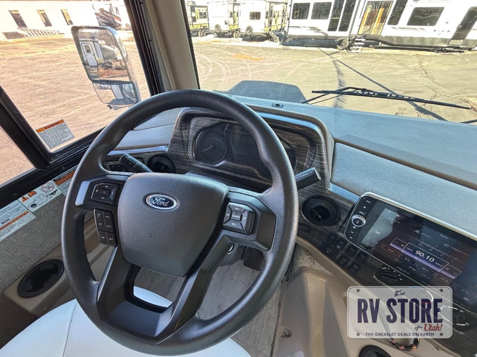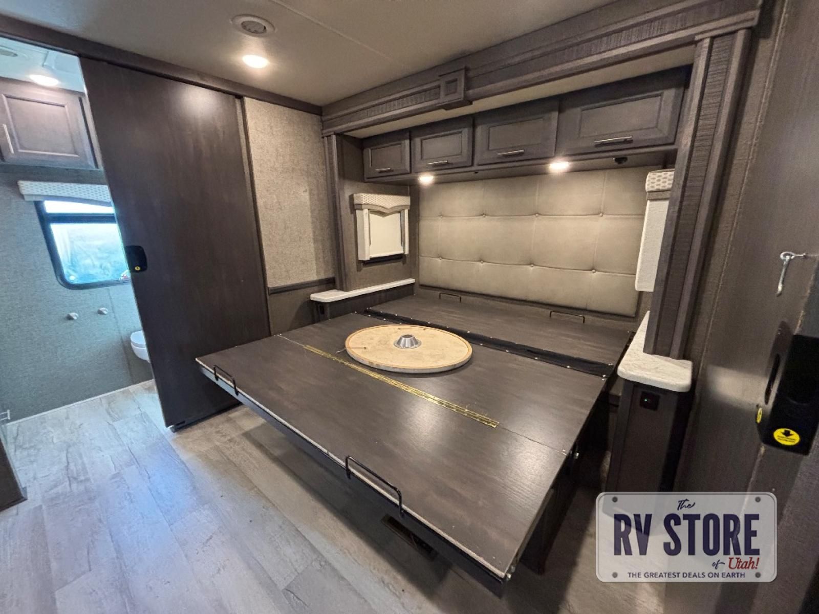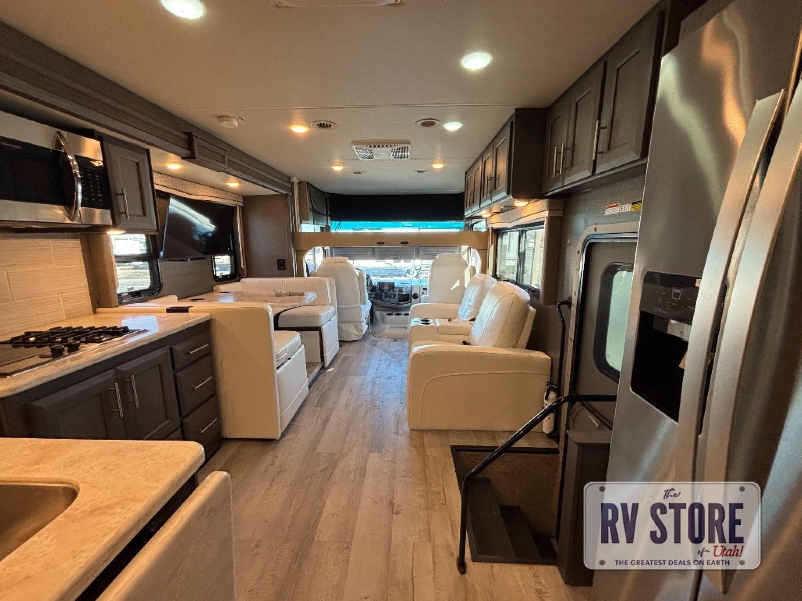 Search for that perfect mountaintop view or lakeside retreat with your powerful and luxurious Thor Motor Coach Challenger Class A gas motorhome! The Challenger is pet friendly with its Pet-Link multi-purpose tie-down, and it is also equipped with a 100W solar charging system that can be used to distance yourself from crowds and surround yourself with nature. You're going to absolutely love the exterior entertainment center because you can use it to play a movie while you sit back in your camp chairs and take in the night sky. Having Wi-Fi while on the road gives you the ultimate freedom, and the Winegard ConnecT Wi-Fi extender + 4G makes that possible. Some other top-notch amenities are the tankless water heater, whole-coach water filtration system, Onan RV QG 5,500 gas generator, and sound bar in the living room.Â