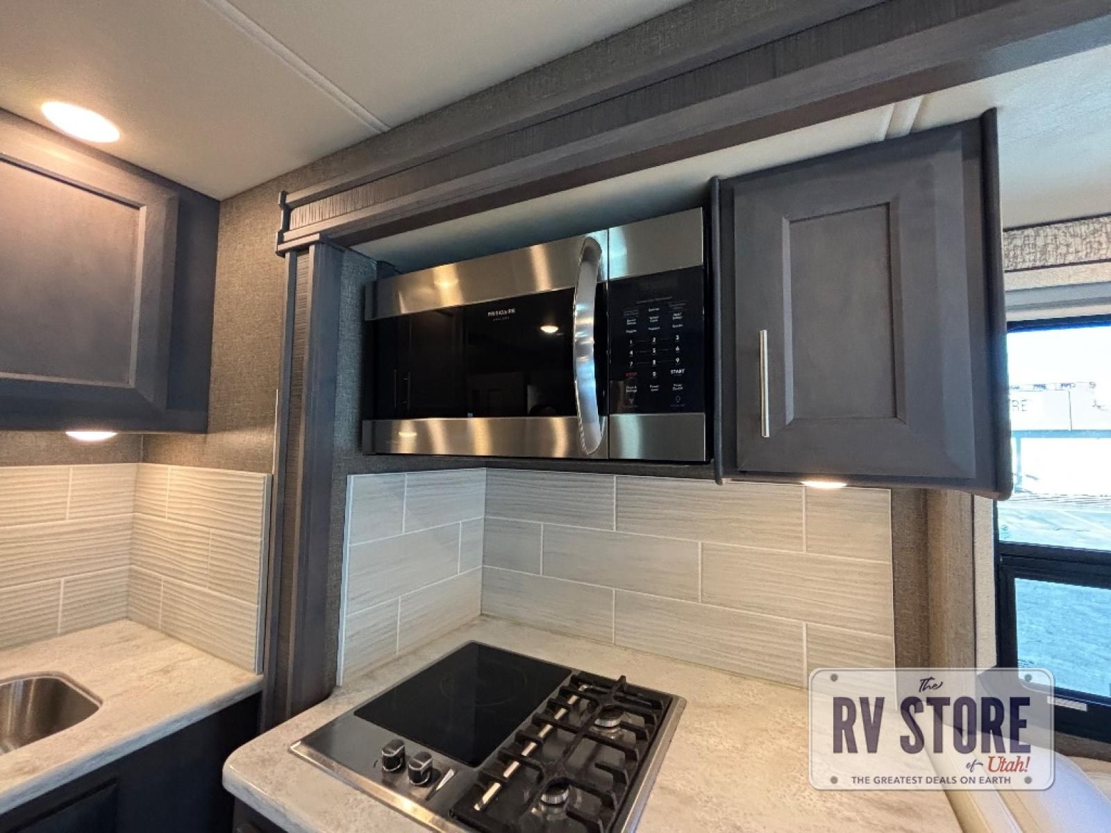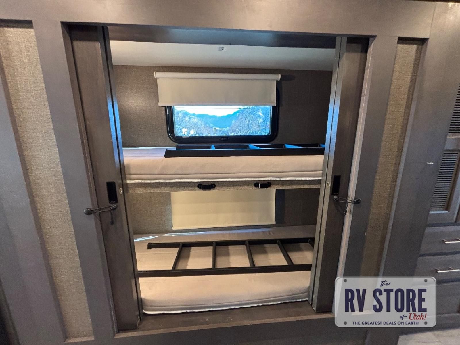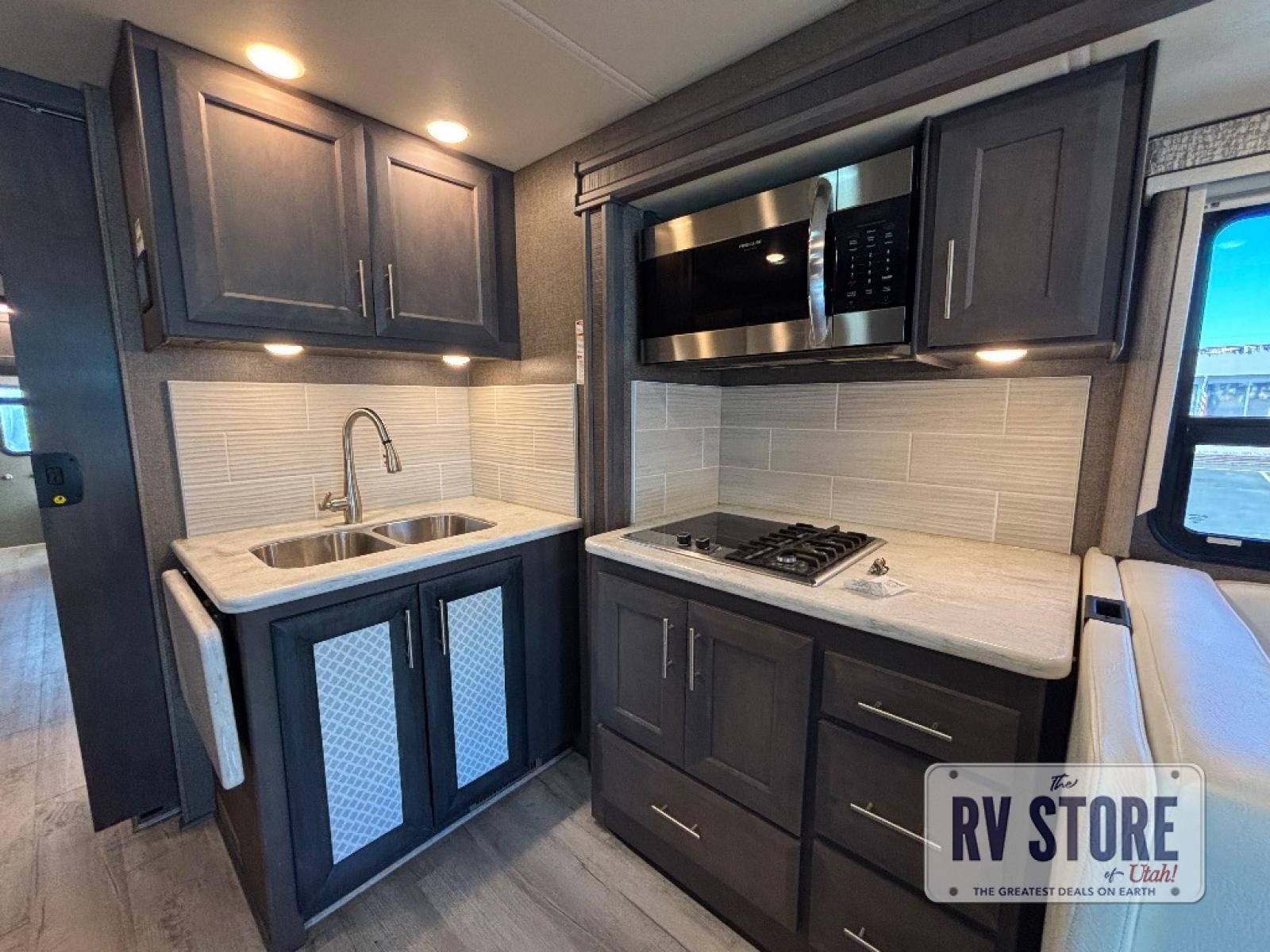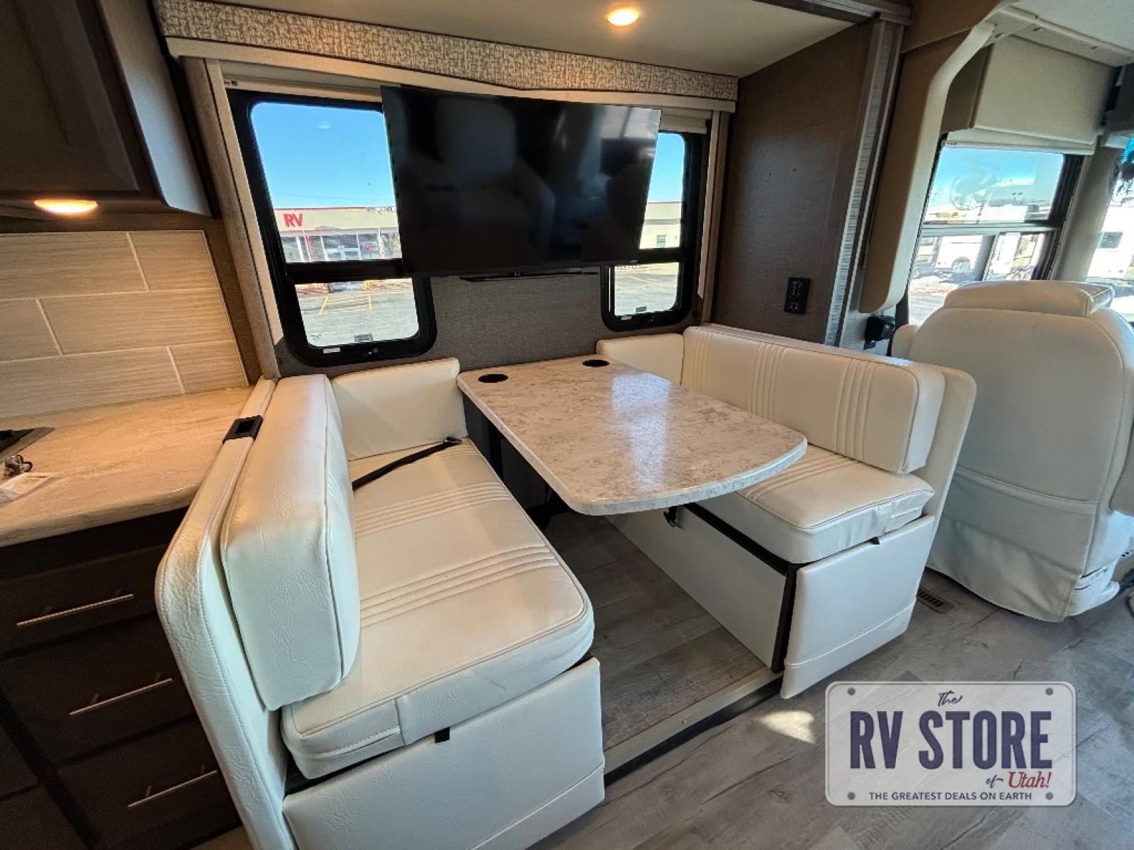 Search for that perfect mountaintop view or lakeside retreat with your powerful and luxurious Thor Motor Coach Challenger Class A gas motorhome! The Challenger is pet friendly with its Pet-Link multi-purpose tie-down, and it is also equipped with a 100W solar charging system that can be used to distance yourself from crowds and surround yourself with nature. You're going to absolutely love the exterior entertainment center because you can use it to play a movie while you sit back in your camp chairs and take in the night sky. Having Wi-Fi while on the road gives you the ultimate freedom, and the Winegard ConnecT Wi-Fi extender + 4G makes that possible. Some other top-notch amenities are the tankless water heater, whole-coach water filtration system, Onan RV QG 5,500 gas generator, and sound bar in the living room.Â