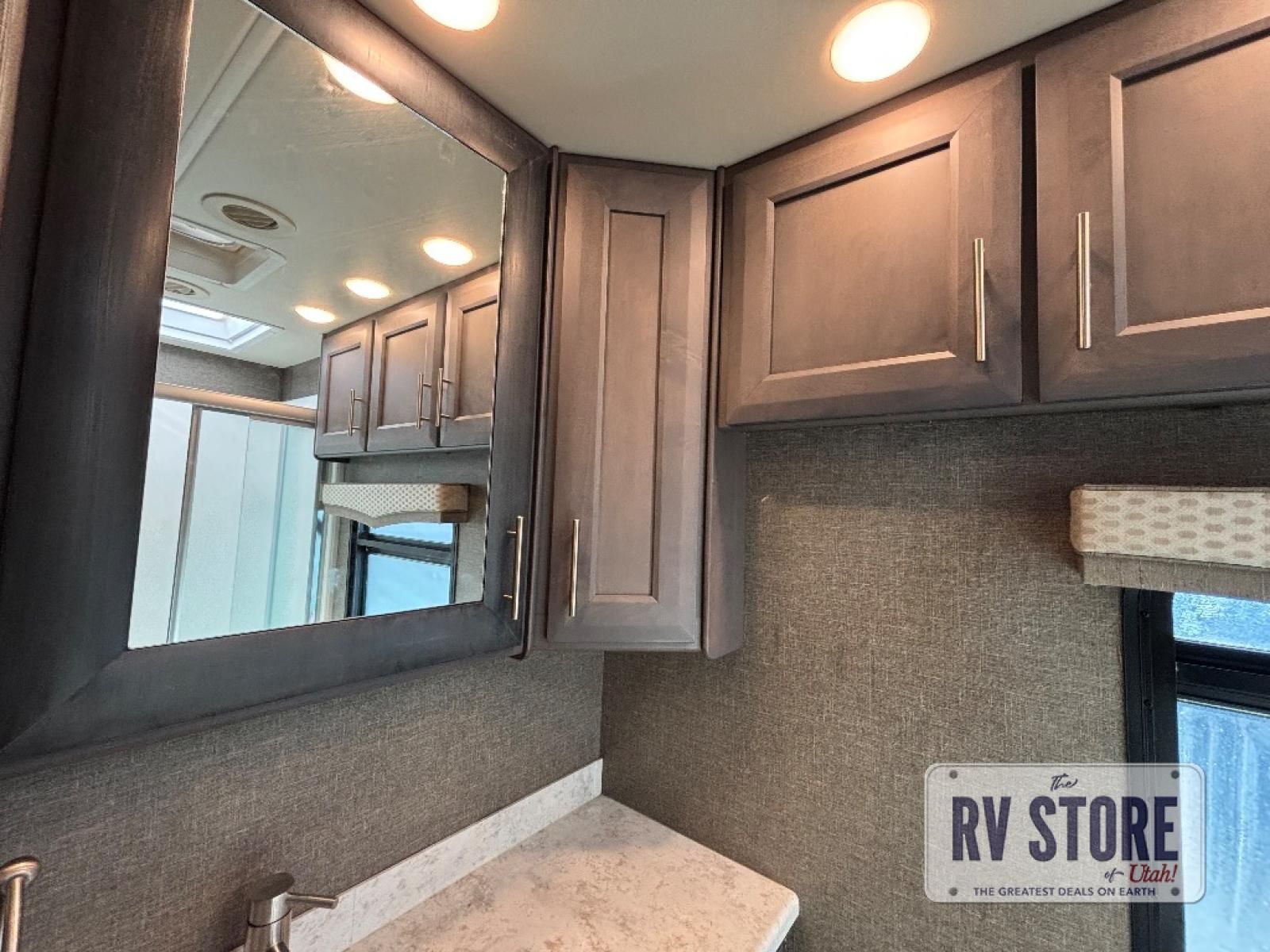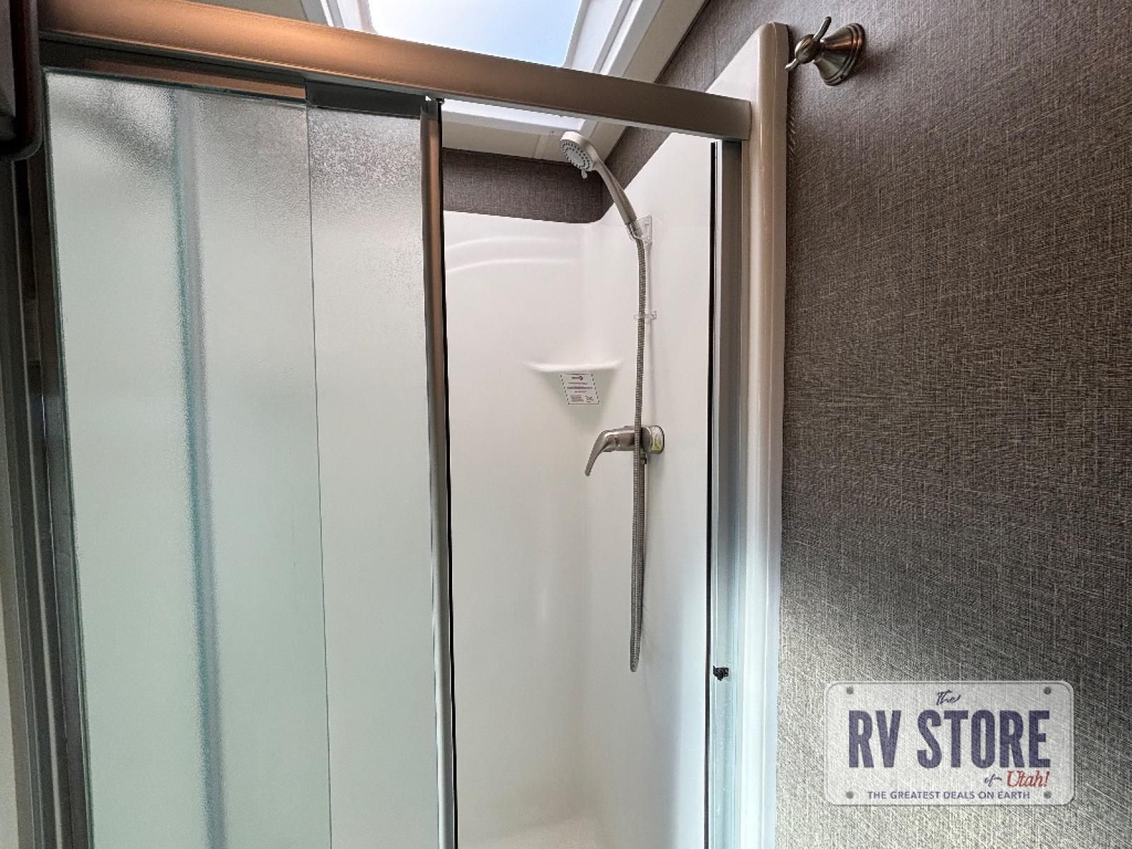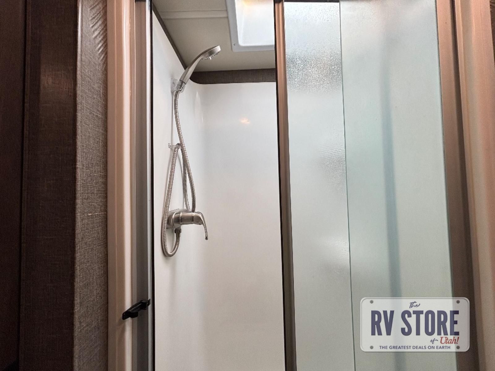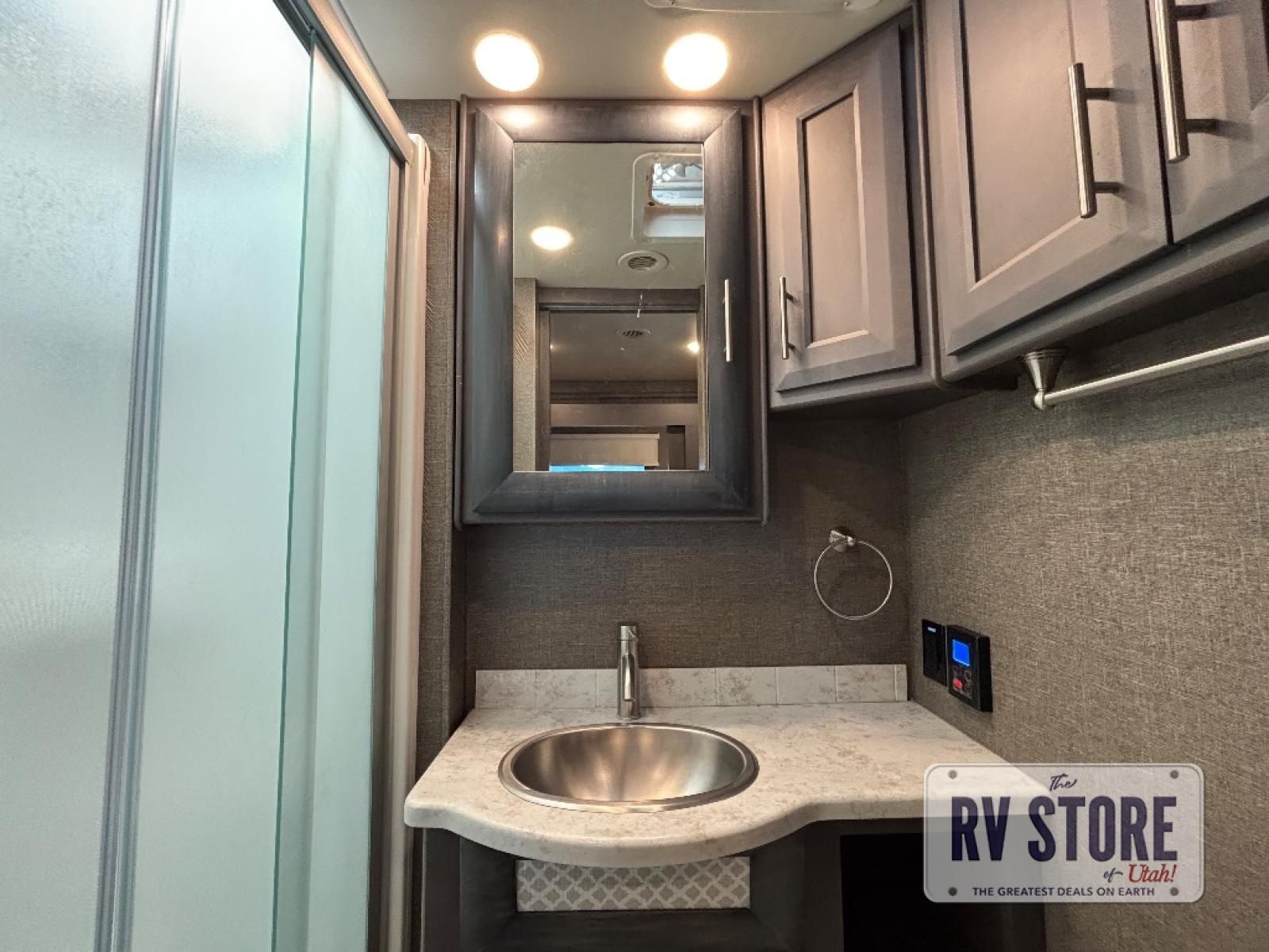 With two full bathrooms, everyone can start their mornings off clean and fresh in this Challenger Class A gas motorhome! You won't have to worry about where everyone will sleep either thanks to the set of bunk beds, the drop-down overhead cab bunk, the 68" sofa, and the RV king Tilt-A-View inclining bed, plus the 72" Dream Dinette can also transform into an extra sleeping space when you aren't enjoying a meal at it. Inside the master suite, there is a large wardrobe for you to keep your clothes neat, a 32" LED TV for a show in bed, and an area prepped for the optional washer/dryer to be added. You even have your very own private bathroom which will come in very handy at night!