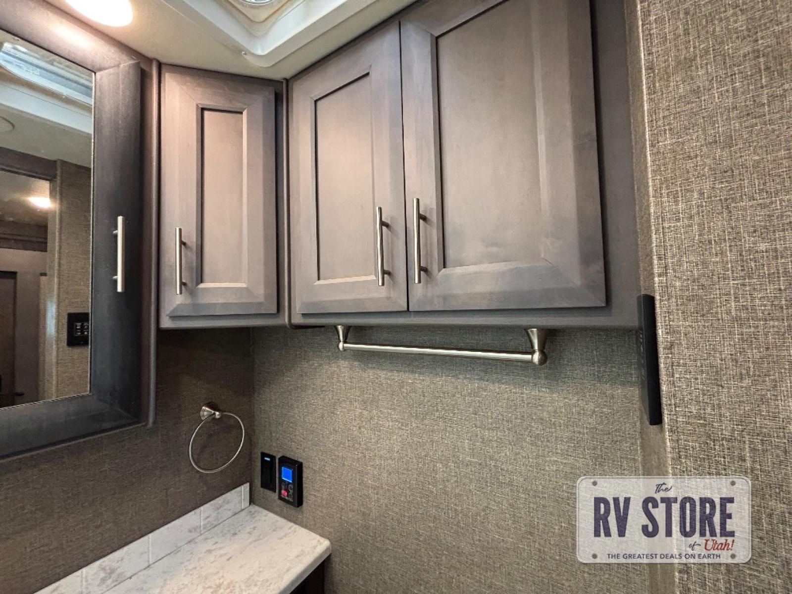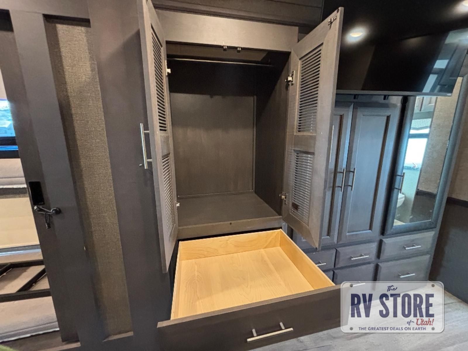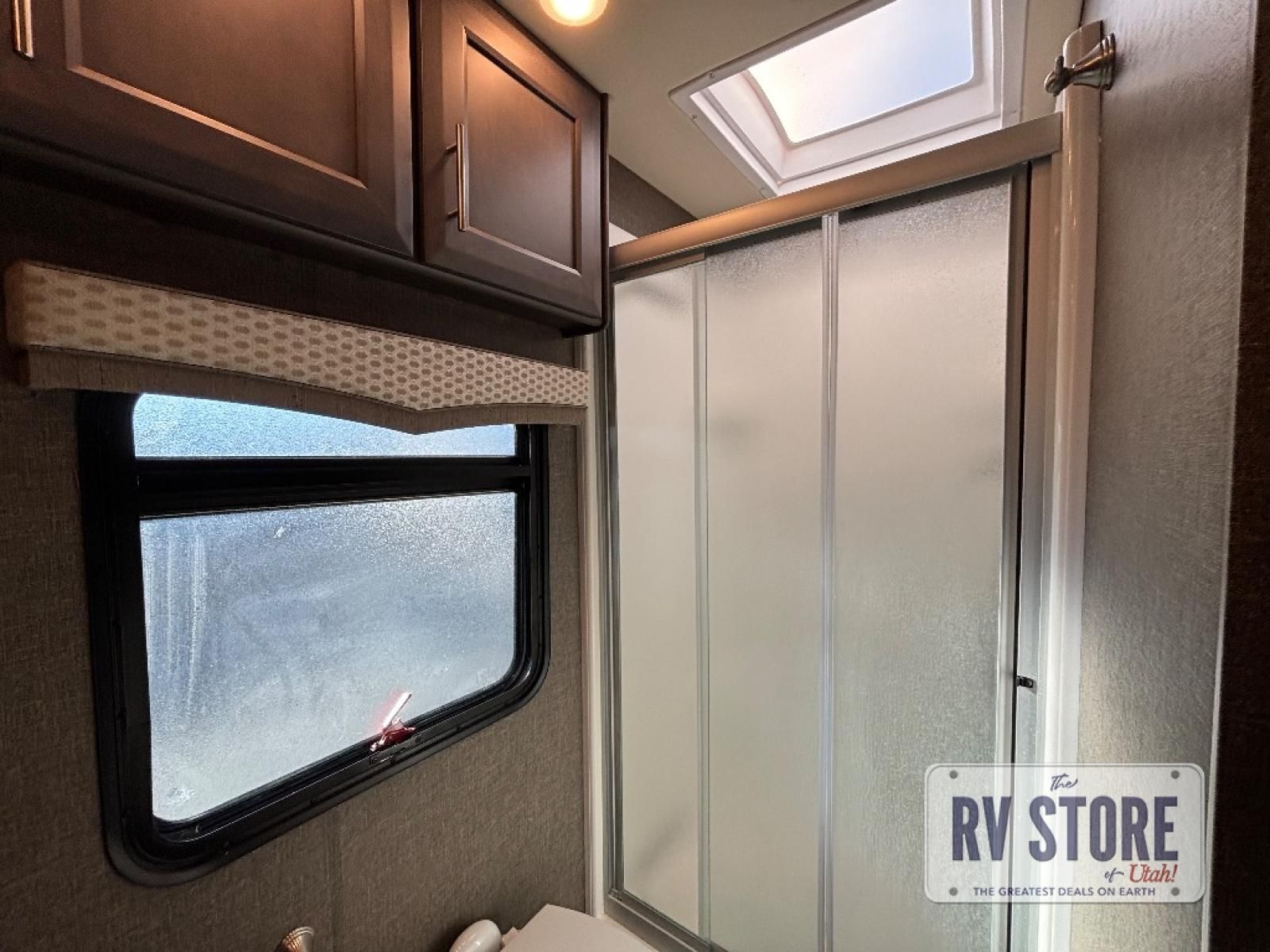 With two full bathrooms, everyone can start their mornings off clean and fresh in this Challenger Class A gas motorhome! You won't have to worry about where everyone will sleep either thanks to the set of bunk beds, the drop-down overhead cab bunk, the 68" sofa, and the RV king Tilt-A-View inclining bed, plus the 72" Dream Dinette can also transform into an extra sleeping space when you aren't enjoying a meal at it. Inside the master suite, there is a large wardrobe for you to keep your clothes neat, a 32" LED TV for a show in bed, and an area prepped for the optional washer/dryer to be added. You even have your very own private bathroom which will come in very handy at night!