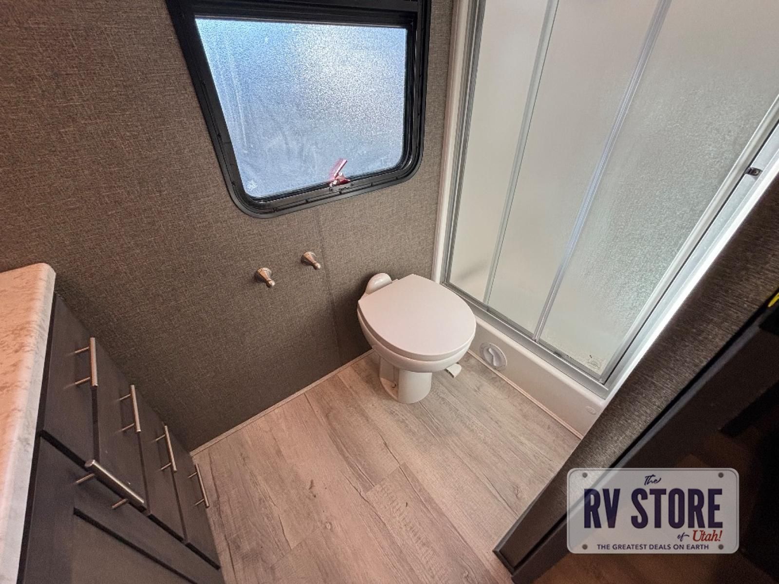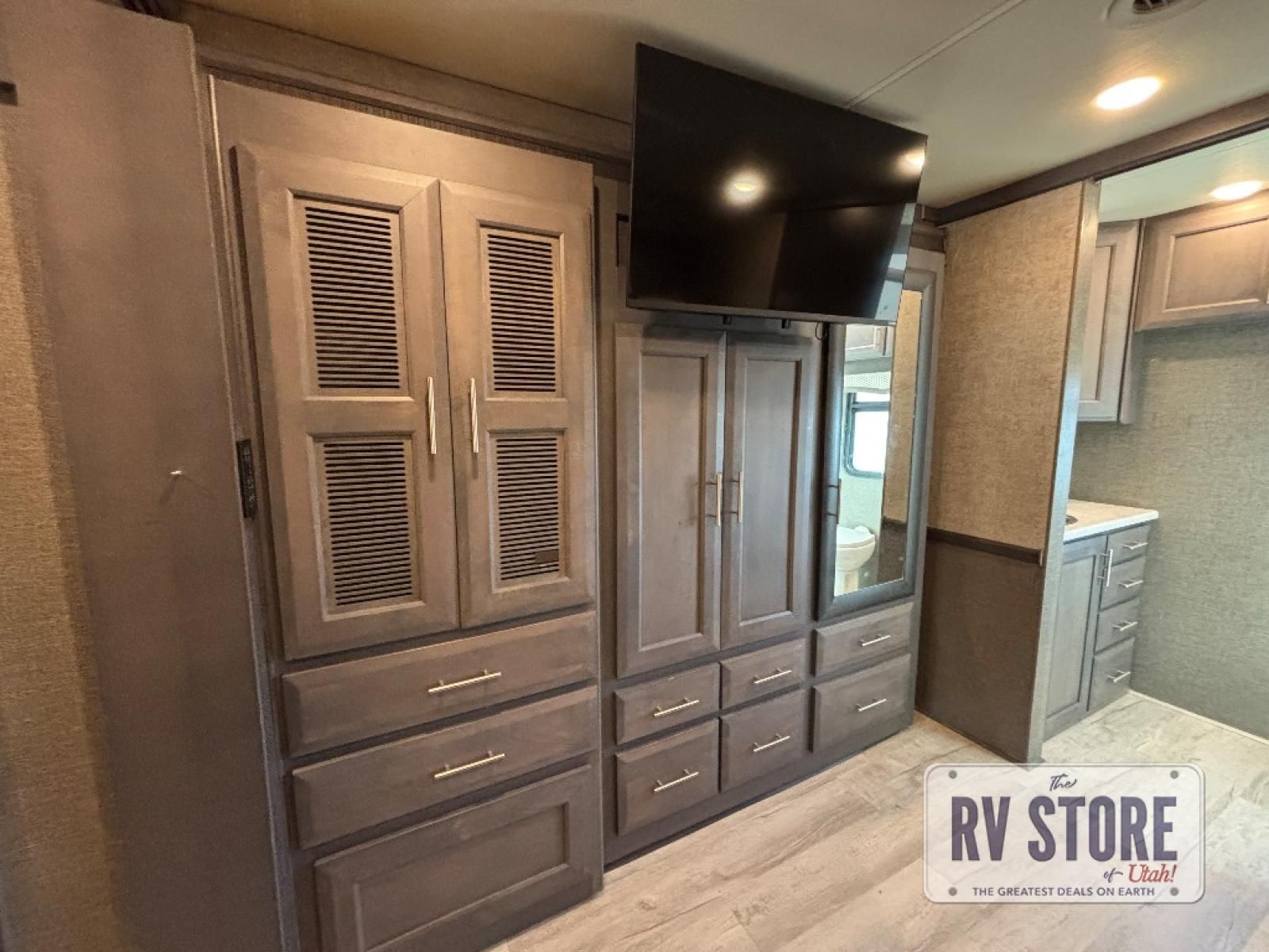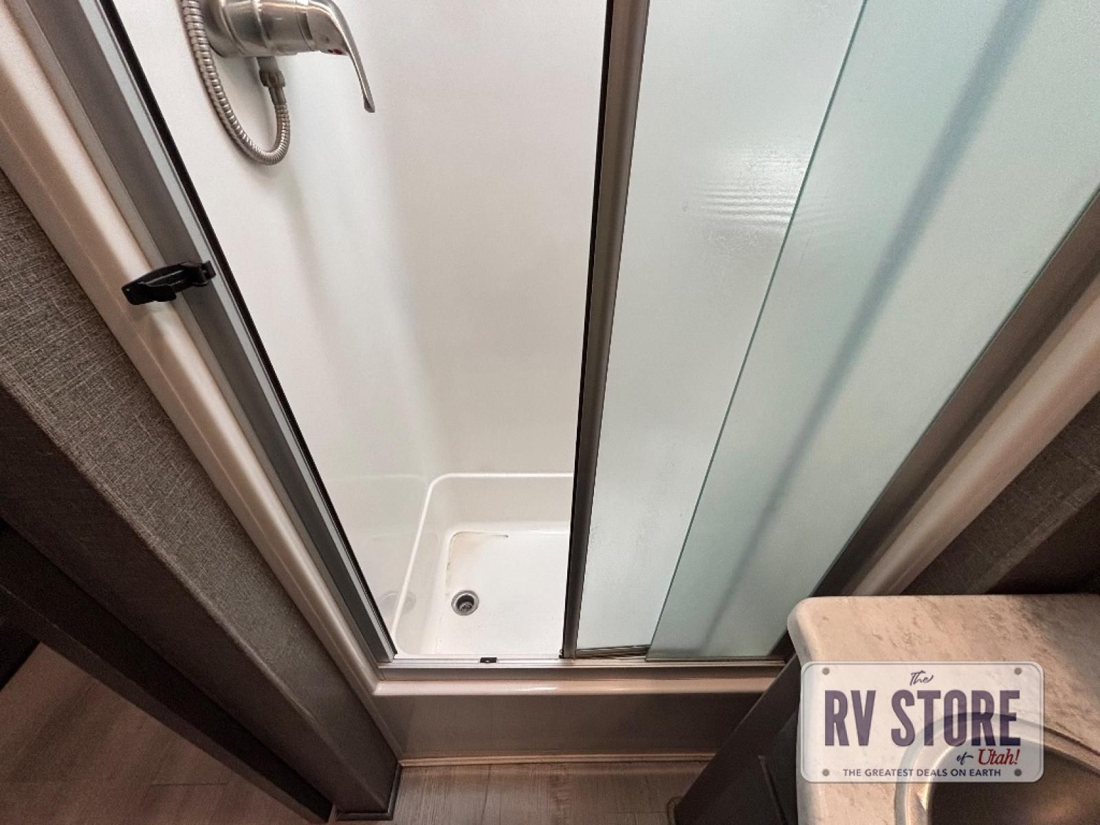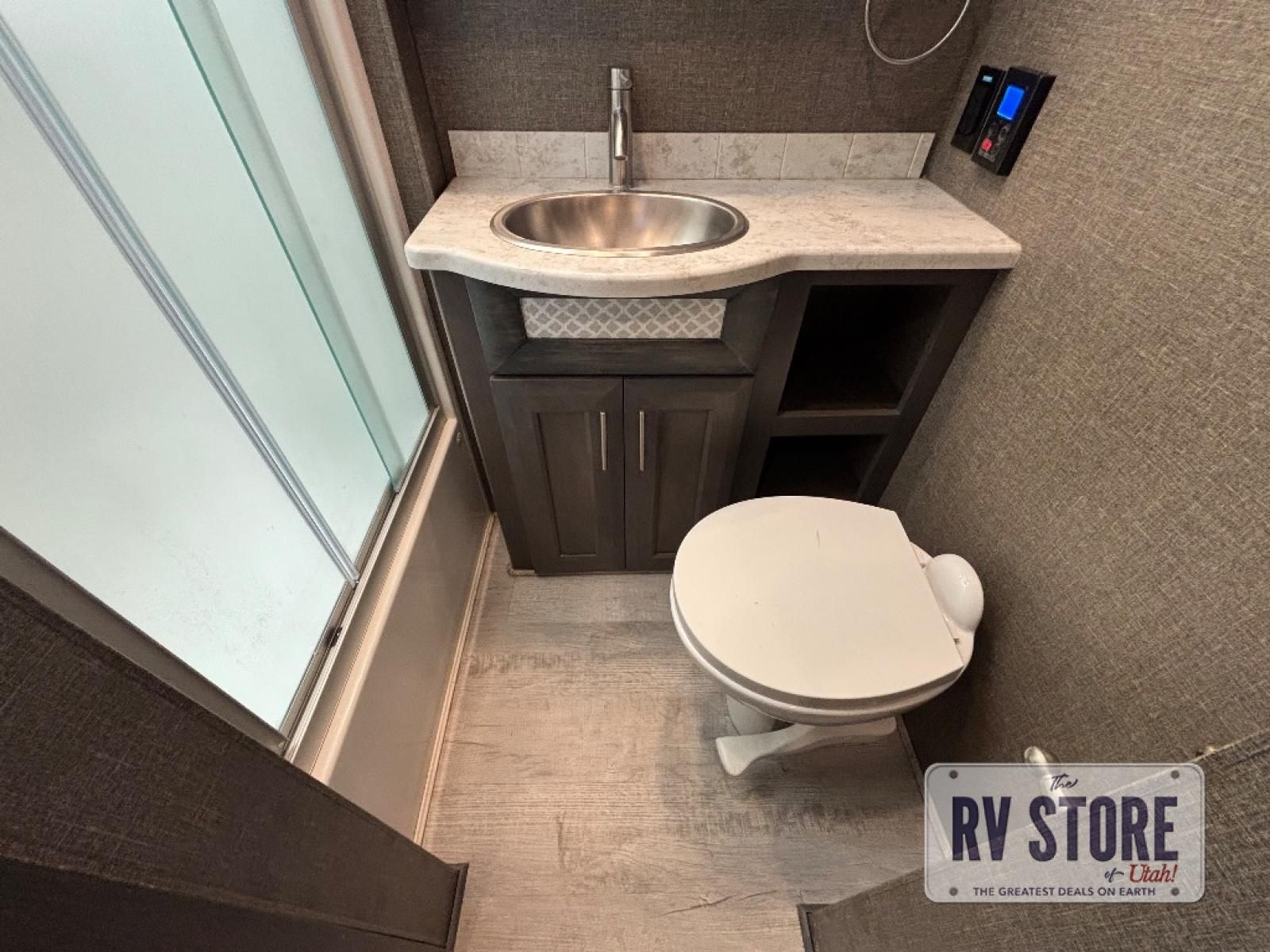 With two full bathrooms, everyone can start their mornings off clean and fresh in this Challenger Class A gas motorhome! You won't have to worry about where everyone will sleep either thanks to the set of bunk beds, the drop-down overhead cab bunk, the 68" sofa, and the RV king Tilt-A-View inclining bed, plus the 72" Dream Dinette can also transform into an extra sleeping space when you aren't enjoying a meal at it. Inside the master suite, there is a large wardrobe for you to keep your clothes neat, a 32" LED TV for a show in bed, and an area prepped for the optional washer/dryer to be added. You even have your very own private bathroom which will come in very handy at night!