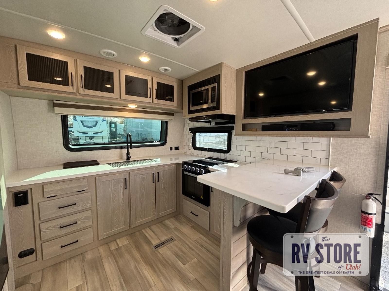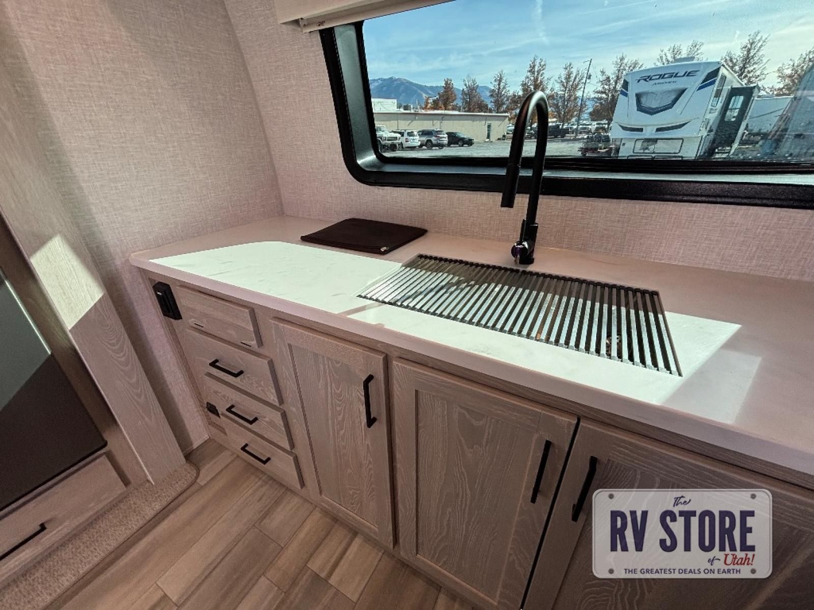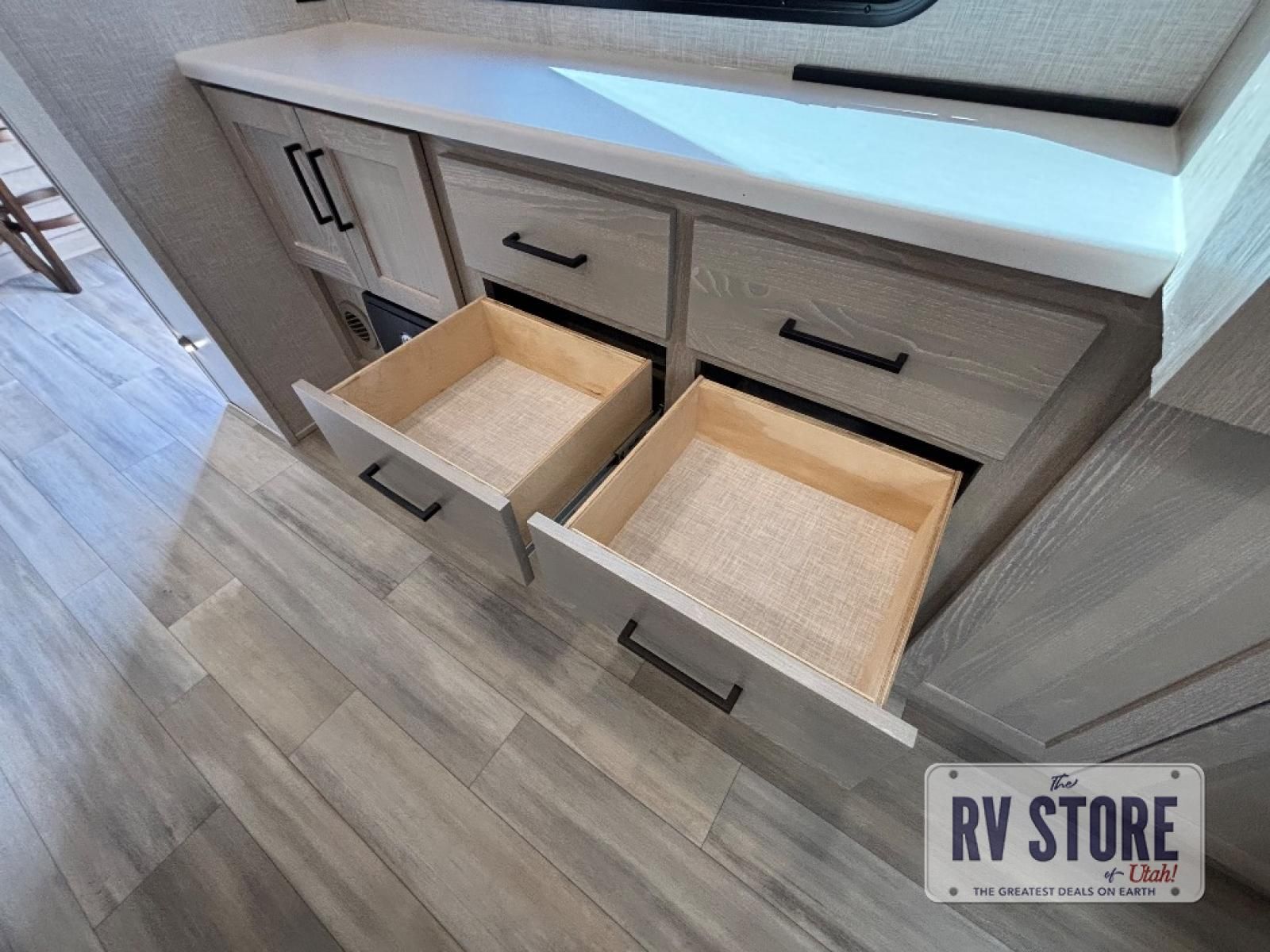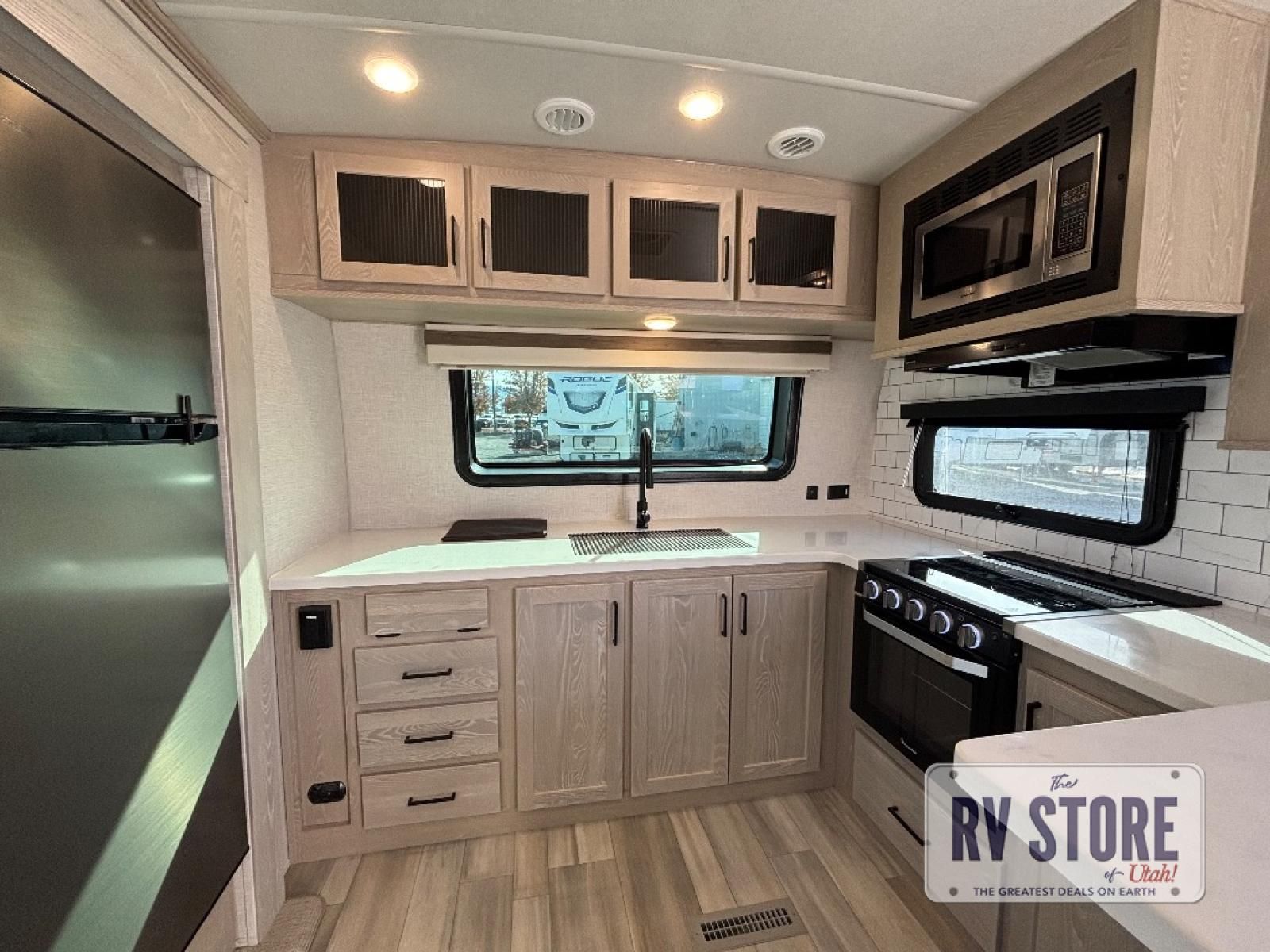With any Rockwood Signature fifth wheel or travel trailer by Forest River RV, the superior construction includes white or champagne fiberglass sidewalls, a one piece seamless roof membrane, 6-sided aluminum framed walls, floors and roof, plus radiant foil insulation and an enclosed underbelly for use in all types of weather. Some safety standards include Dexter torsion axles, MORryde strut assist steps, and the TST tire pressure monitor system. The interior offers a One Touch OneControl panel with WeRV app control, for lights, awning, slides, water heater and more. You will also appreciate the interior vaulted ceilings, residential soft close doors and drawers, plus solid surface kitchen countertops, a designer kitchen backsplash, plus many more features depending on which Rockwood Signature unit you choose!