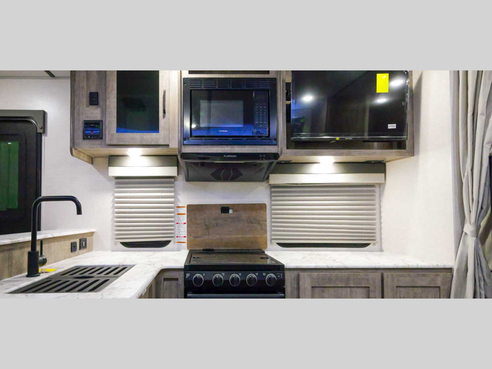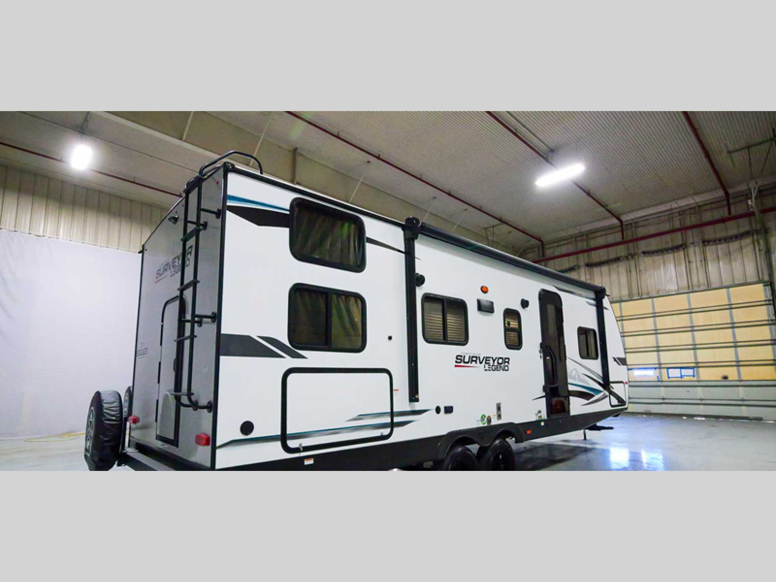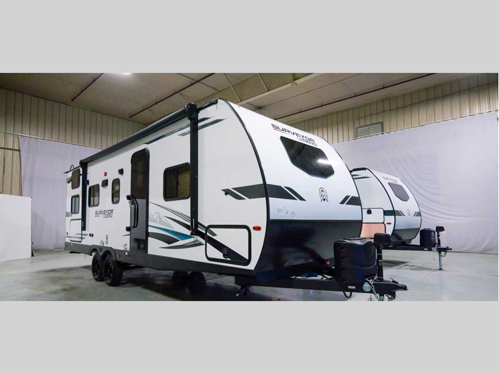 With any Surveyor Legend travel trailer by Forest River you will enjoy quality craftsmanship, convenient amenities, and at-home comforts. The Azdel composite panels provide a longer-lasting trailer, and the power tongue jack will get you back on the road in no-time. Each model includes the Surveyor Legend Package that comes standard with pleated night shades, an automotive style tinted front windshield, a multi-zone Bluetooth stereo, and more. You'll enjoy the one-touch electric awning with LED lights outdoors, plus rooftop solar prep and rear camera prep to make parking easier than ever. The inside will have you feeling right at home with Surf(x) seamless countertops, Congoleum designer carefree linoleum, residential faucets in the bath and kitchen, plus many more essentials you won't want to camp without.Â