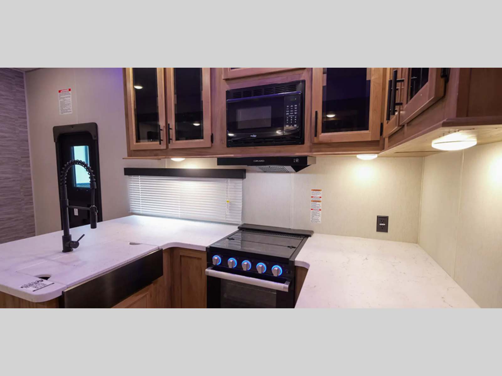 With any Vengeance Rouge SUT toy hauler travel trailer or fifth wheel by Forest River you can bring along your favorite ride-on toys, while still enjoying at-home comforts. Each one is built with a seamless roofing membrane with heat reflectivity and an armored underbelly tank enclosure for added strength and durability, and the 8' 6" wide body construction means you can bring along your favorite ride-on toys. Inside, you'll find a 1000 watt microwave and a three burner cooktop with an oven, seamless countertops, plus zebra shades that filters light and are blackout capable. These toy haulers also include 12V heat pads on all the holding tanks, a 15,000 BTU A/C unit, and many more amenities to make camping easier than ever.