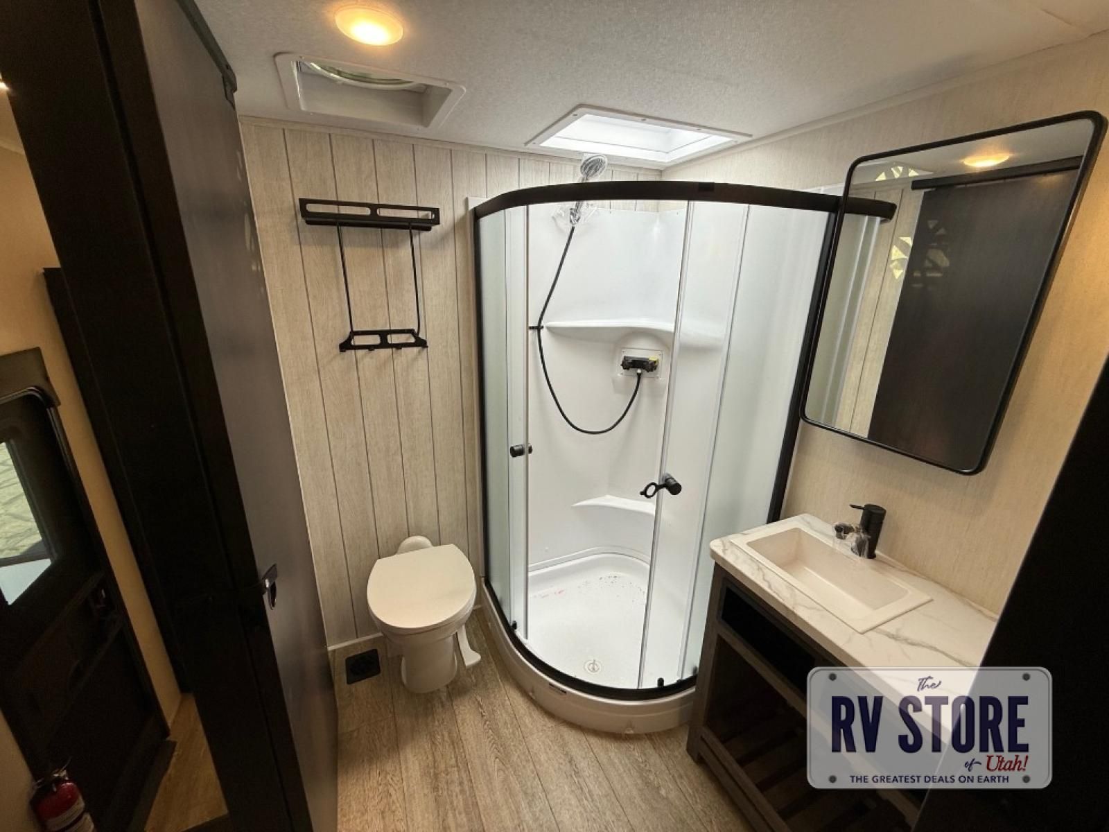 You will have amazing residential comfort in the Forest River Cherokee Arctic Wolf Suite fifth wheels! These units have a “SuperStor” dual-cavern basement storage compartment to allow you to bring more gear, and they have been constructed with a “ToughBend” rigid skirt metal design, a 1x engineered wood “SuperTruss” roof structure with 3/8" decking, and a 5/8” tongue-and-groove plywood floor decking. Each model includes Leash Latch pet safety technology, an outside shower with hot/cold water, preparations for an exterior TV, and motion-sensing lighting. The supersized central air conditioning unit (15,000 BTU) with quick cool and second oversized 15,000 BTU ducted A/C will cool your unit down in a snap when you camp in the hot summer months.