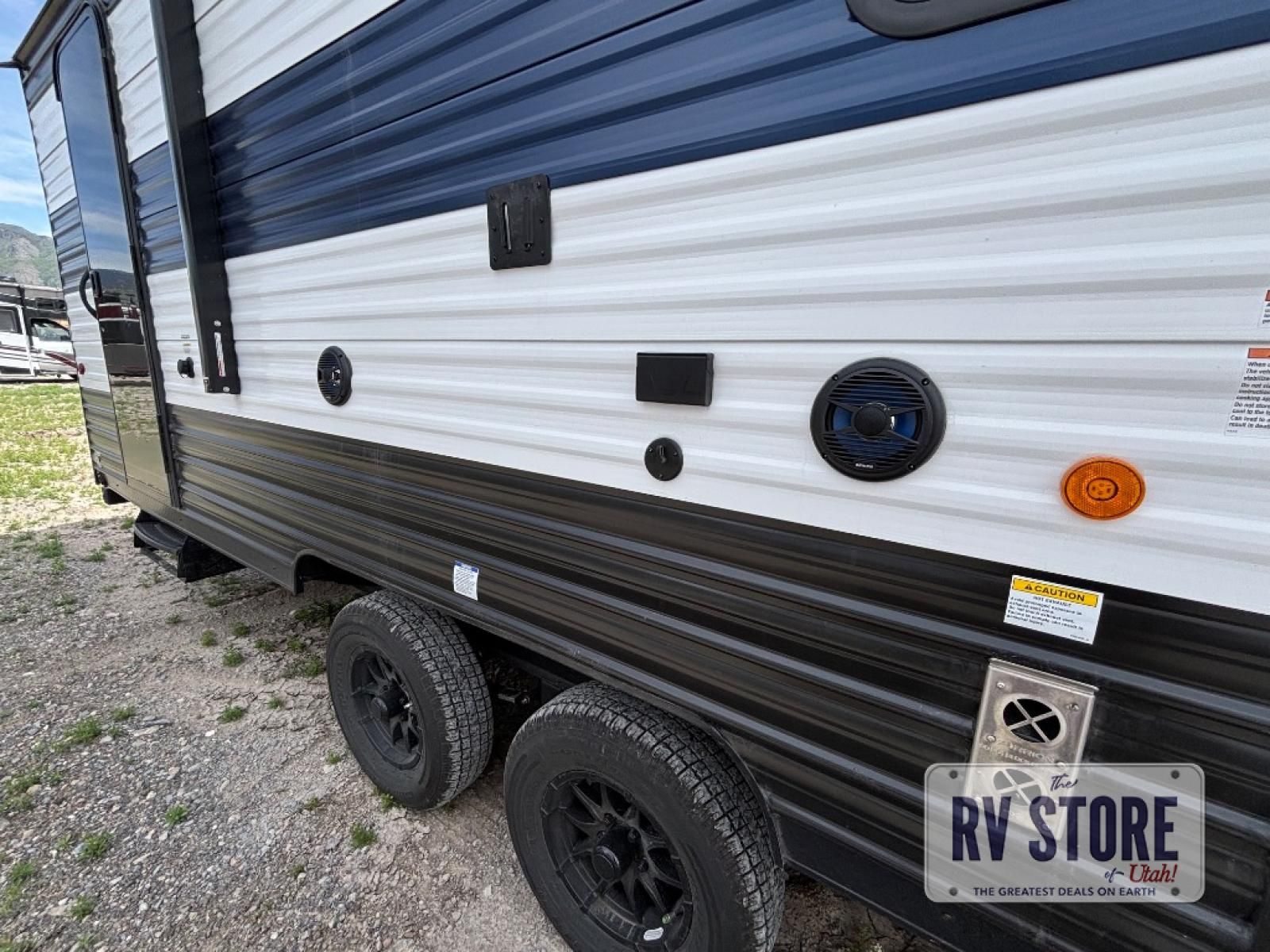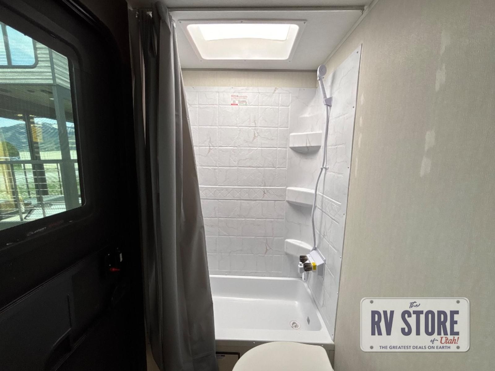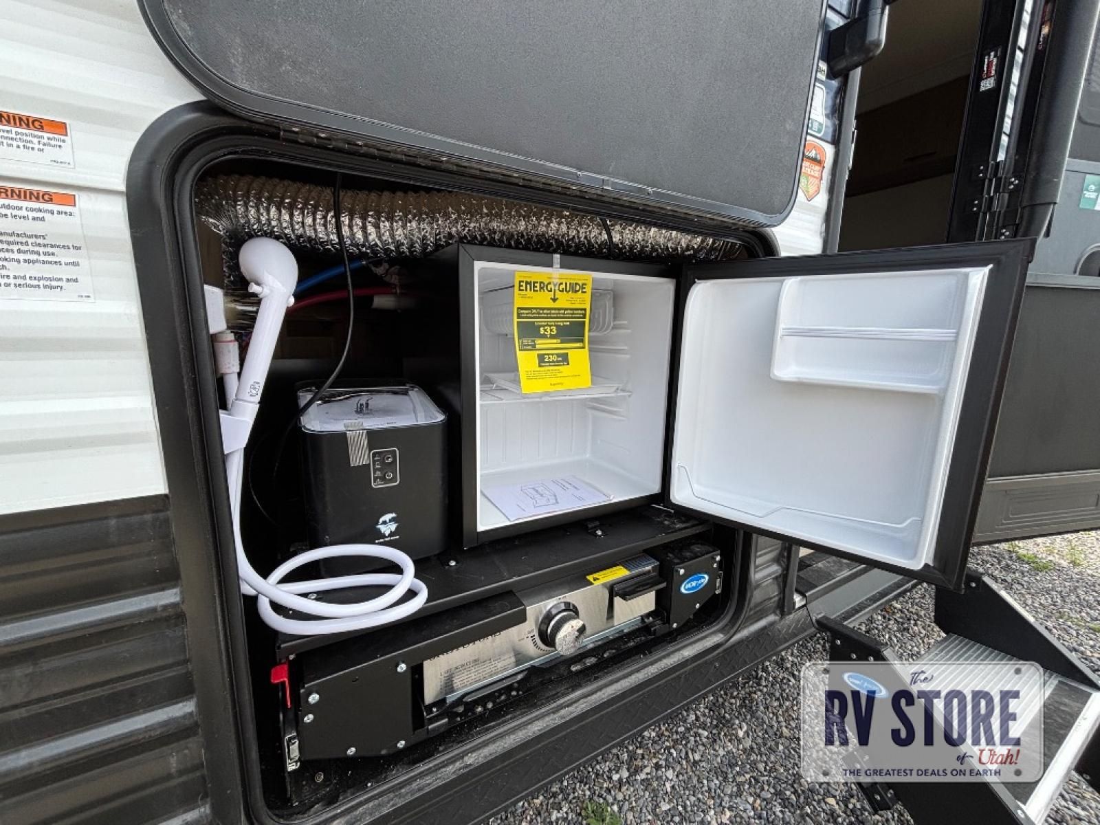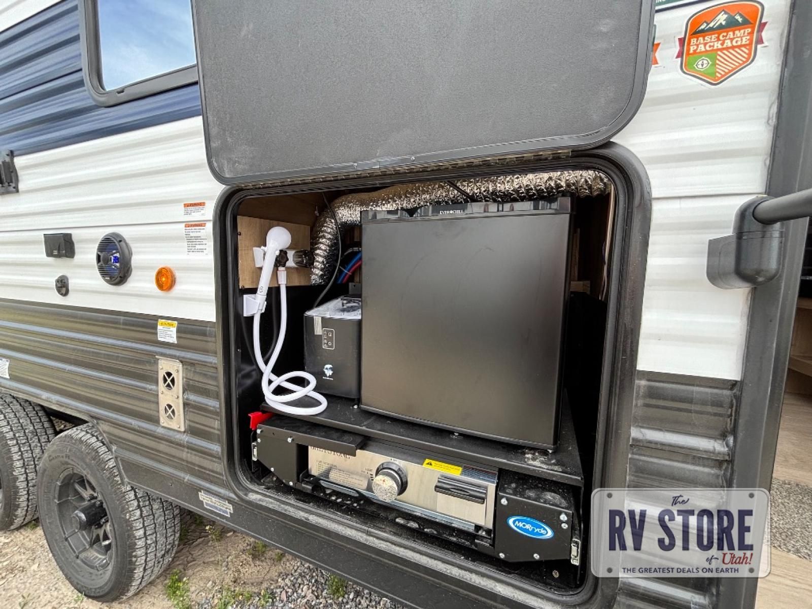 Come on inside this Cherokee Grey Wolf travel trailer and experience the convenience of a smooth flow of traffic in and out with two entry doors. The rear door leads into a full bath which is great for accessibility. Once inside, you will notice the large U-shaped dinette and the sofa which sit on the slide and create a spacious footprint for moving about, as well as great places to play games and socialize with your friends and family. A walk-in pantry provides plenty of storage allowing you to stock up on your favorite snacks and dry goods for your family adventure. At night, there is sleeping space for everyone between the double-size bunks and the RV king bed, plus the furniture.